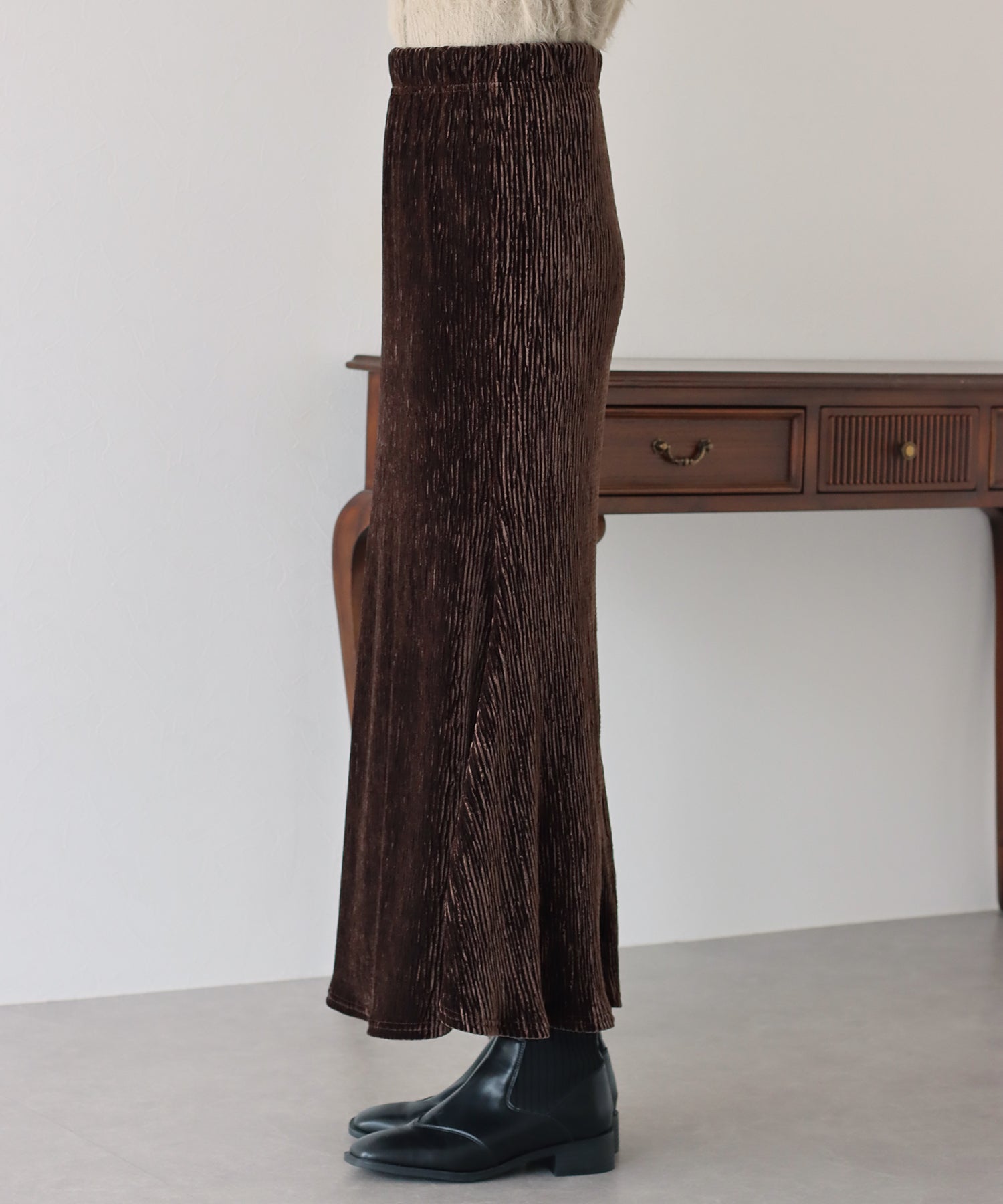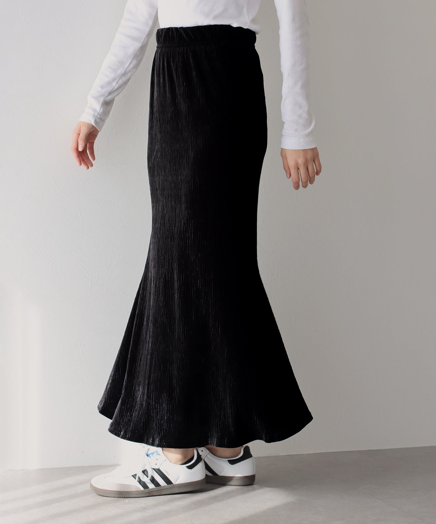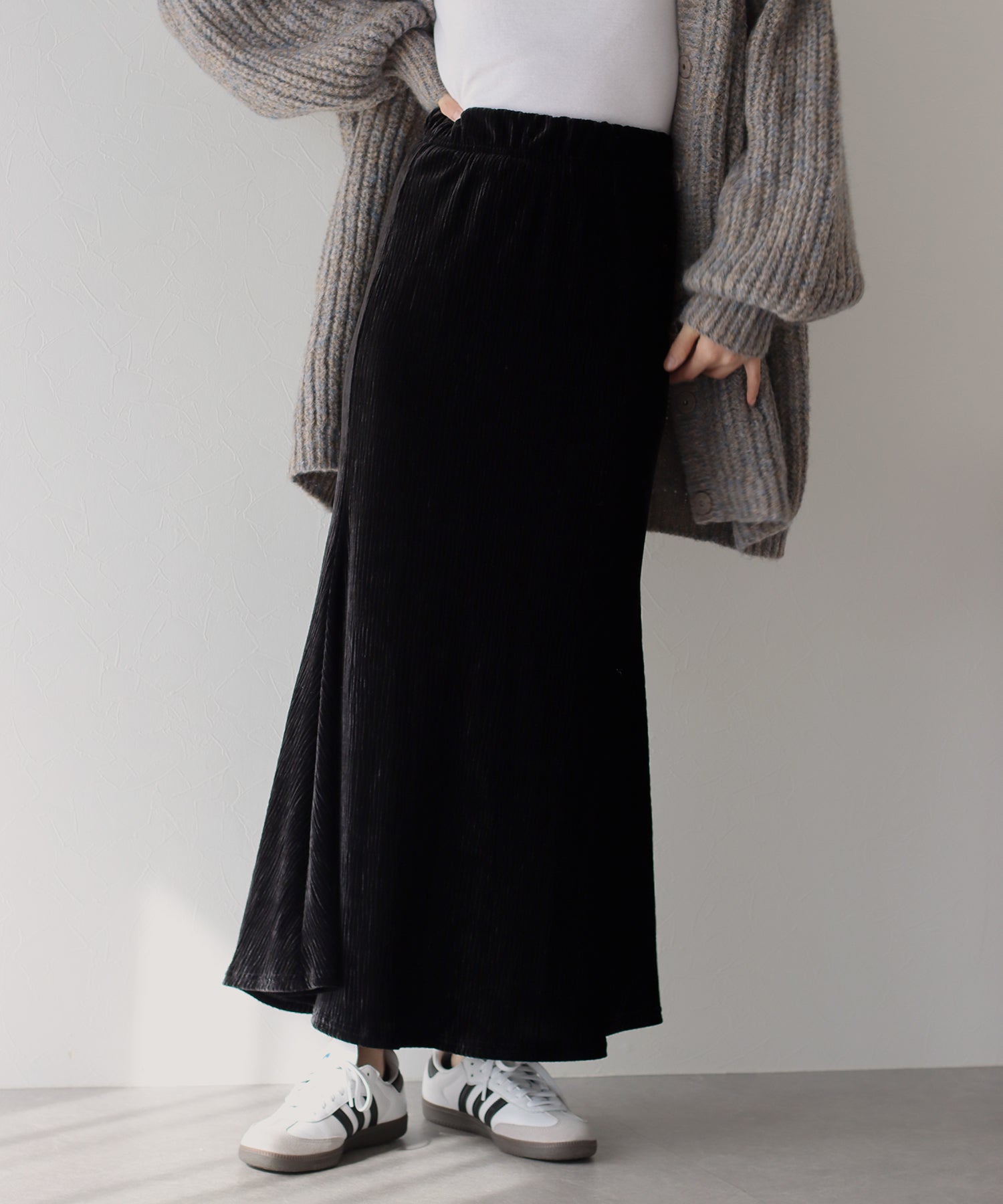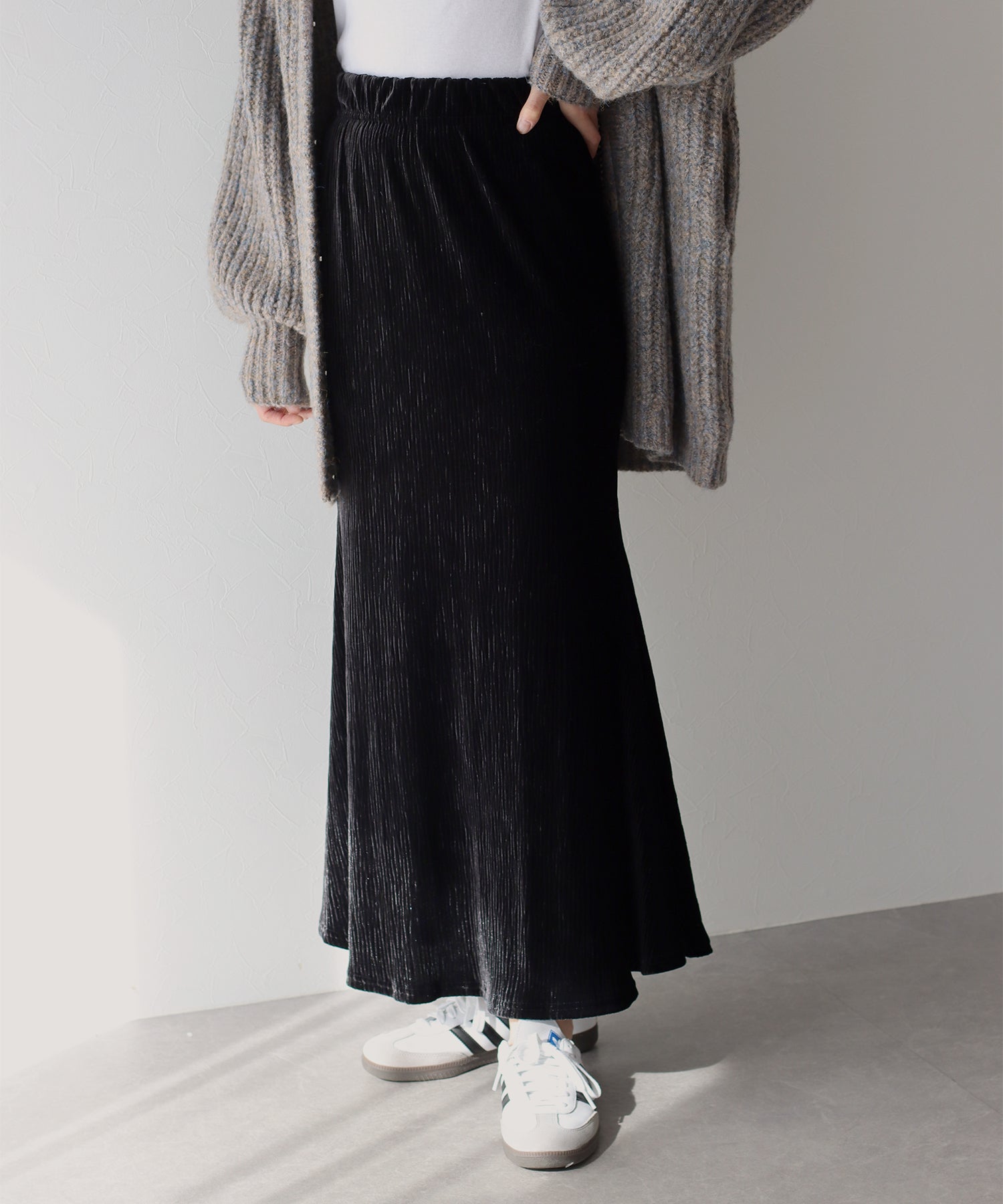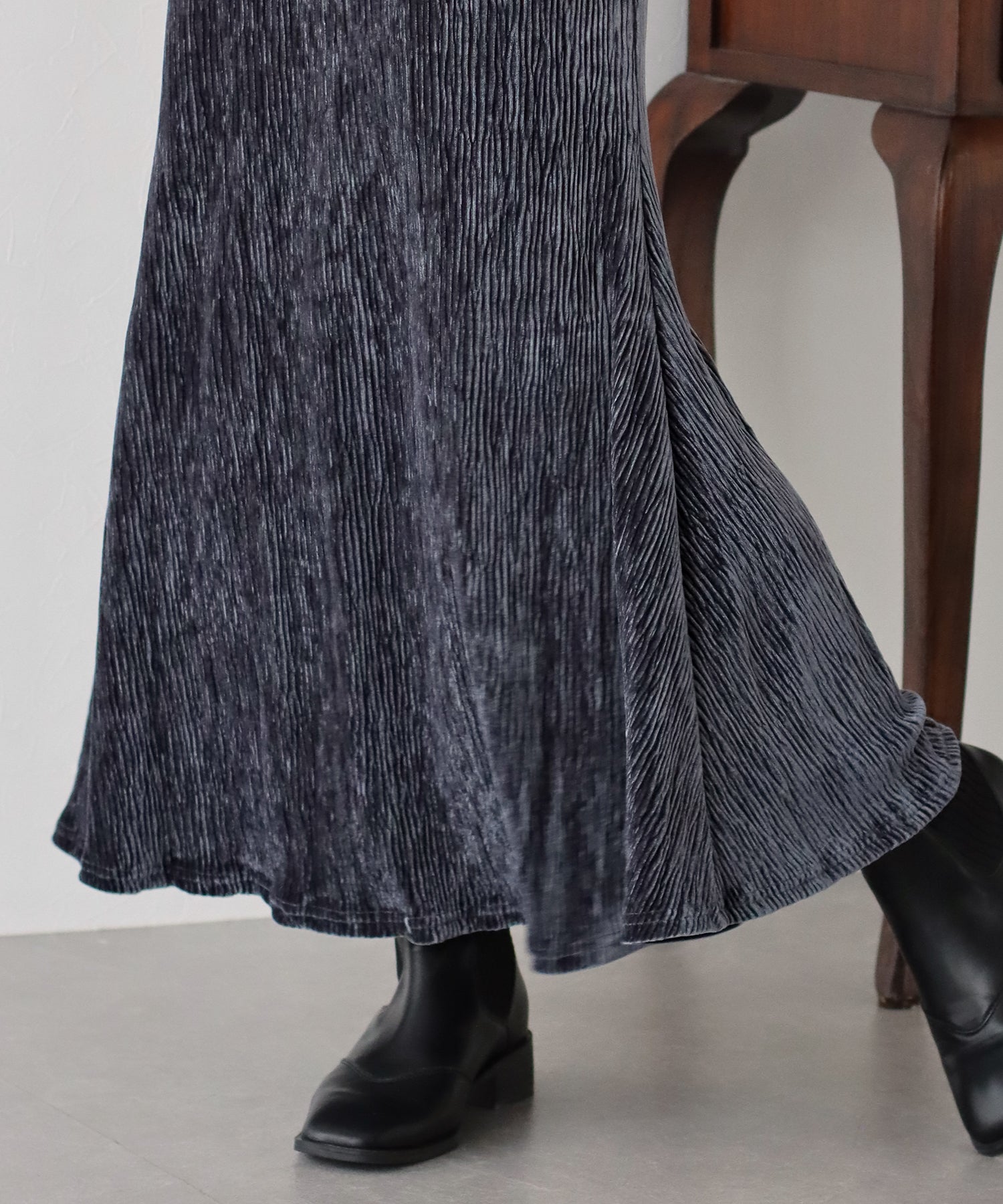 プリーツベロア素材のマーメイドスカート