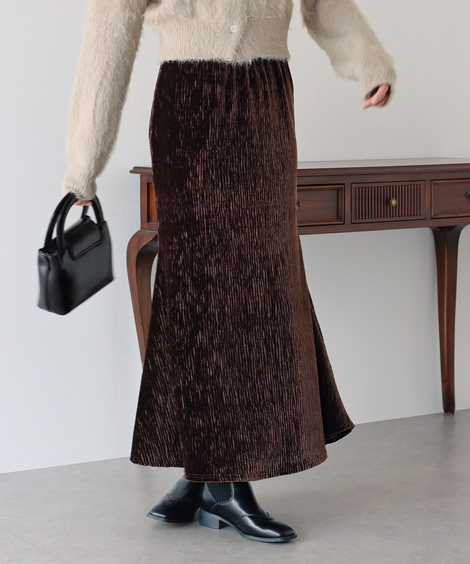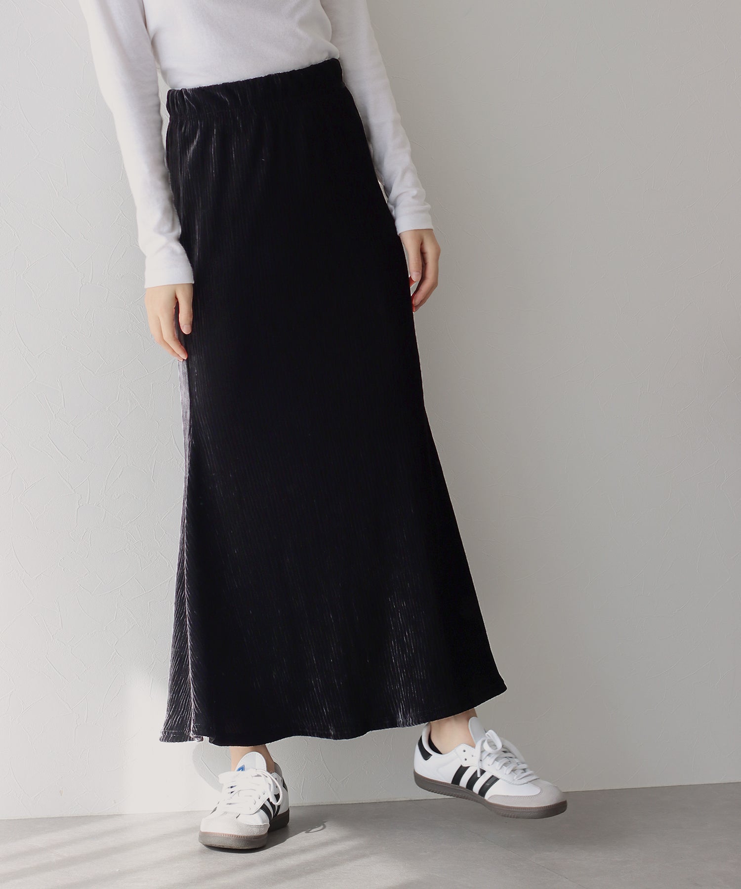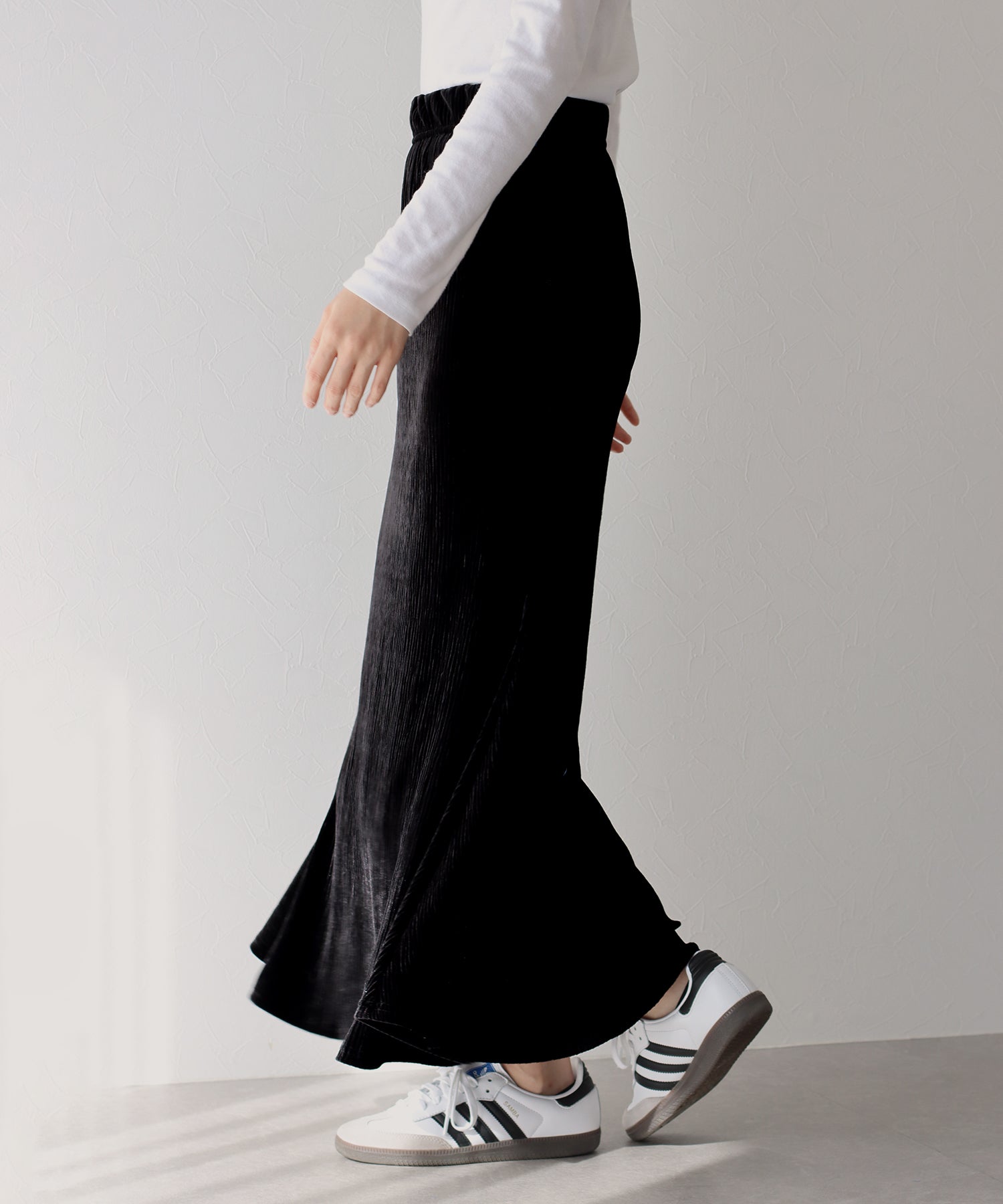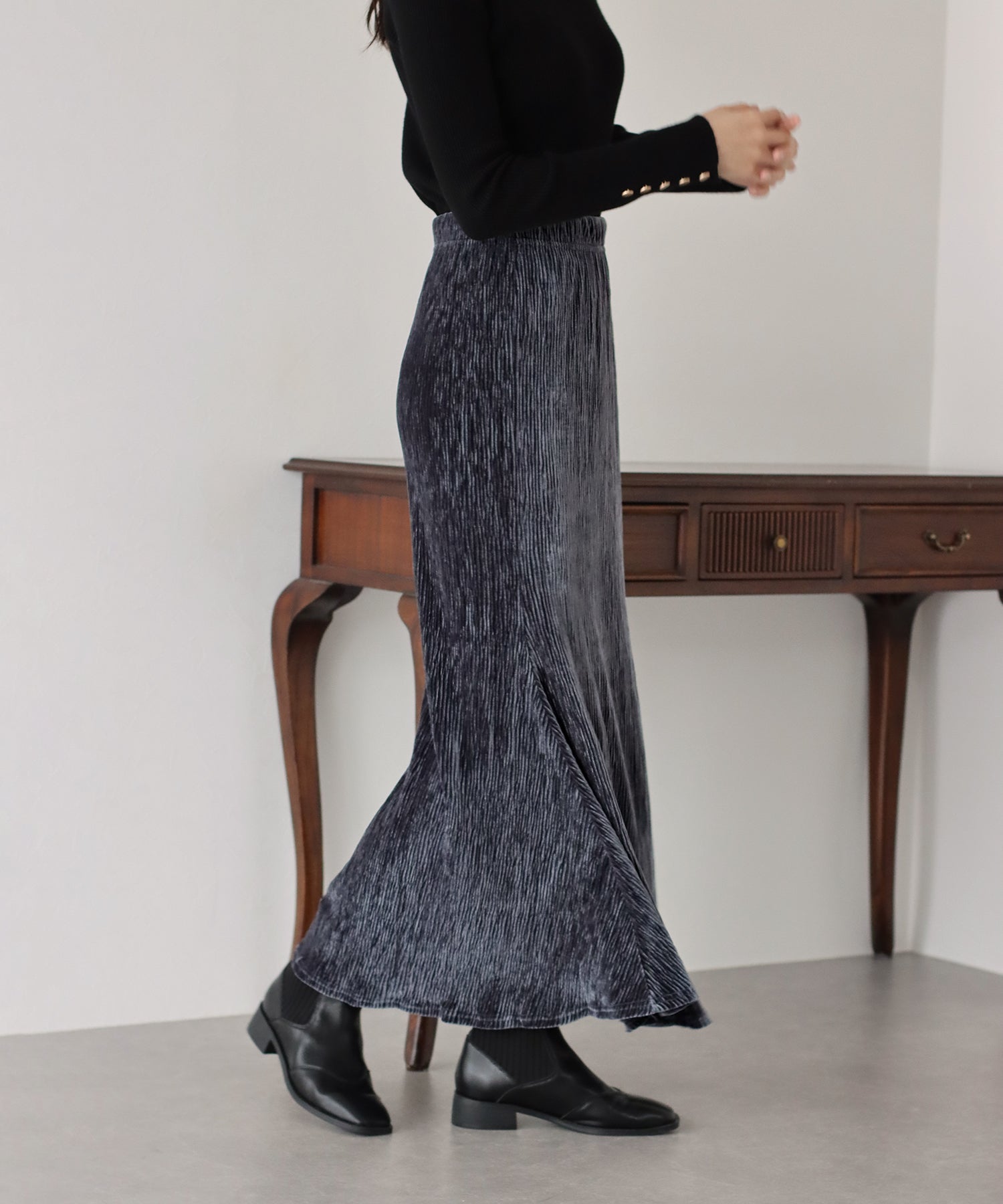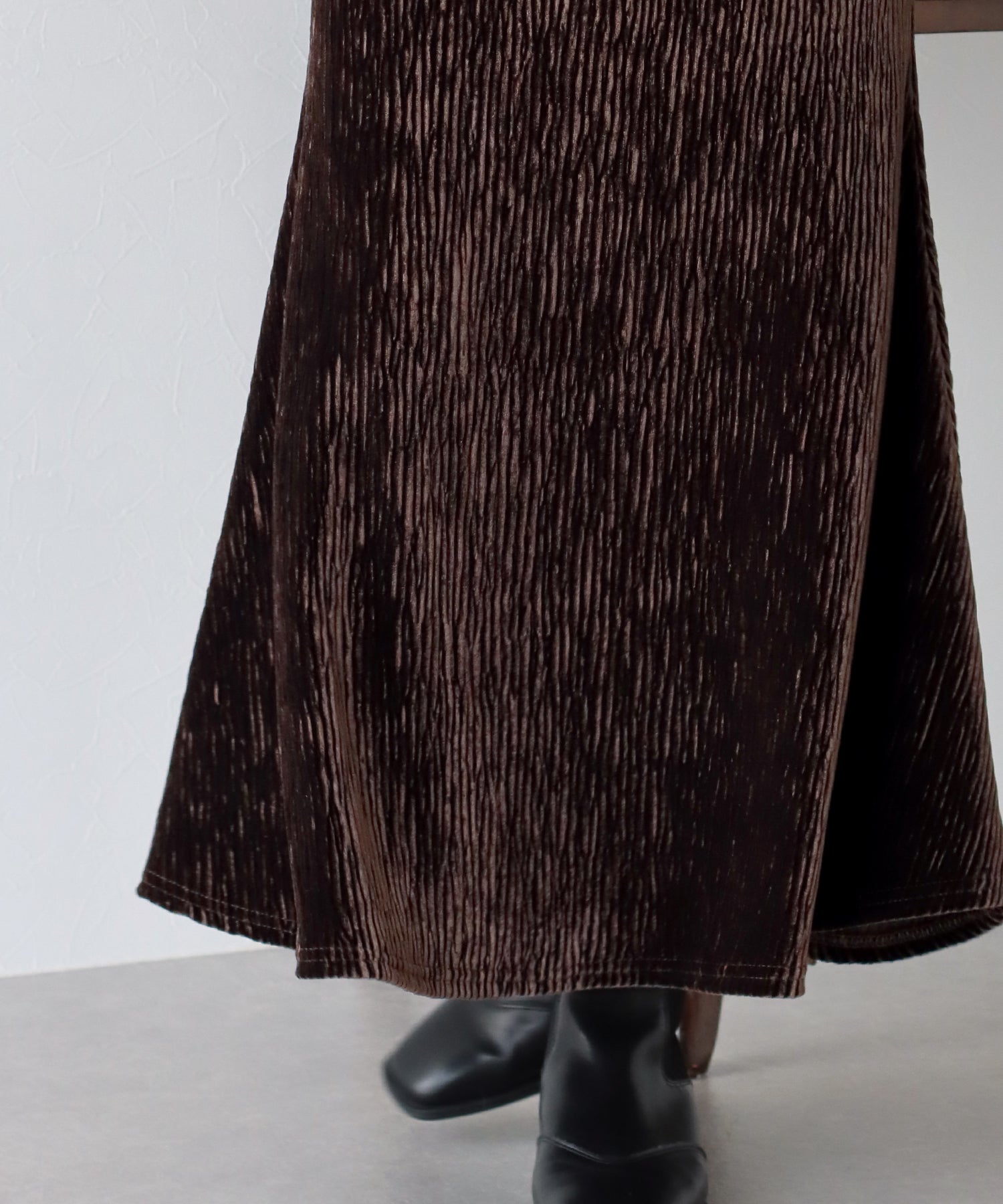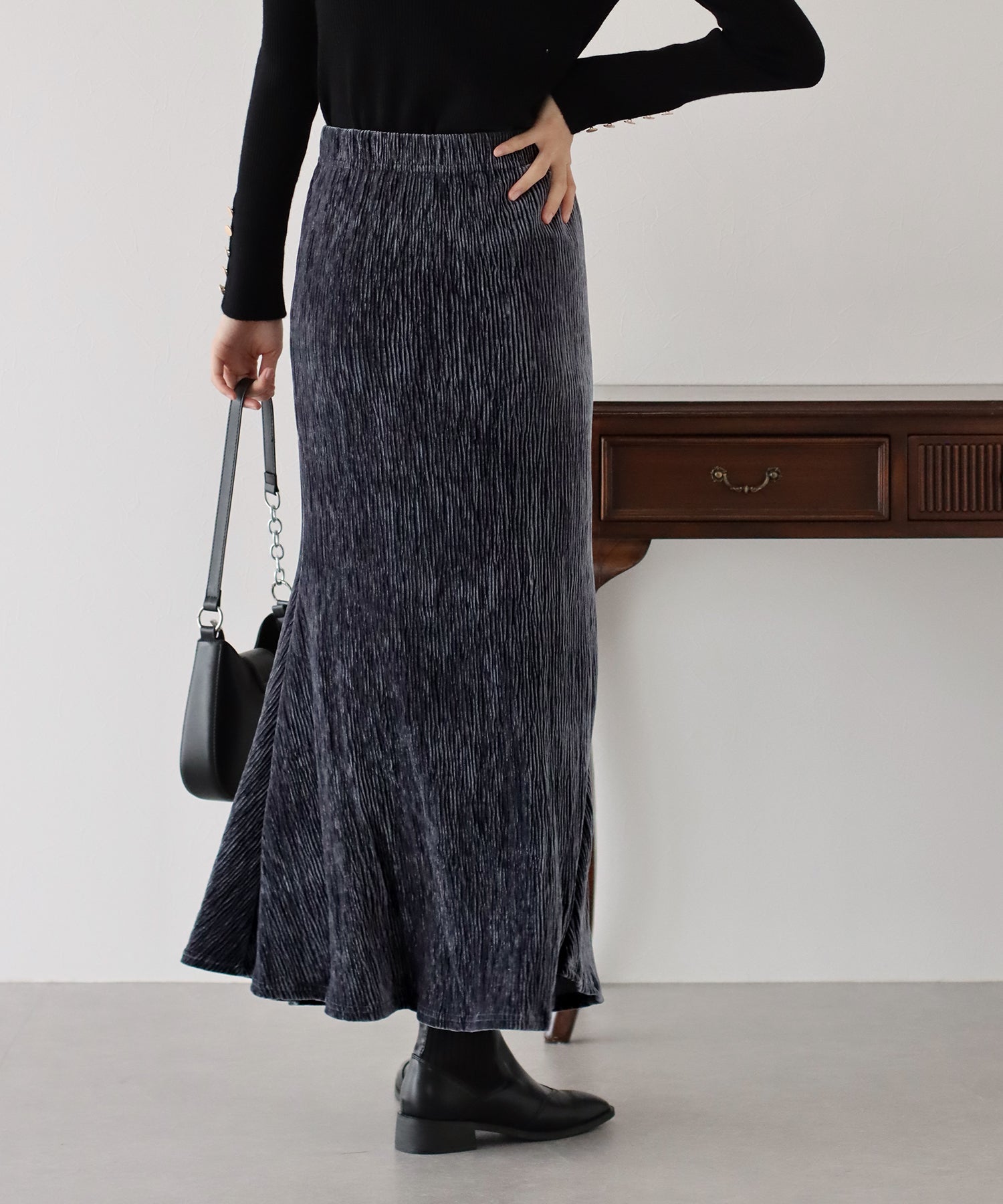 プリーツベロア素材のマーメイドスカート