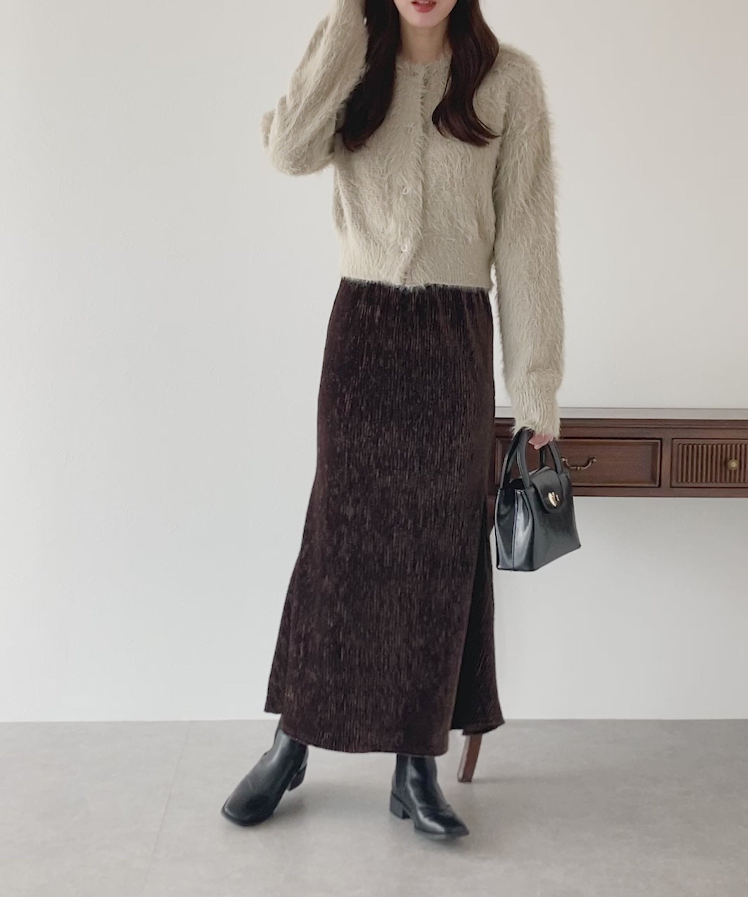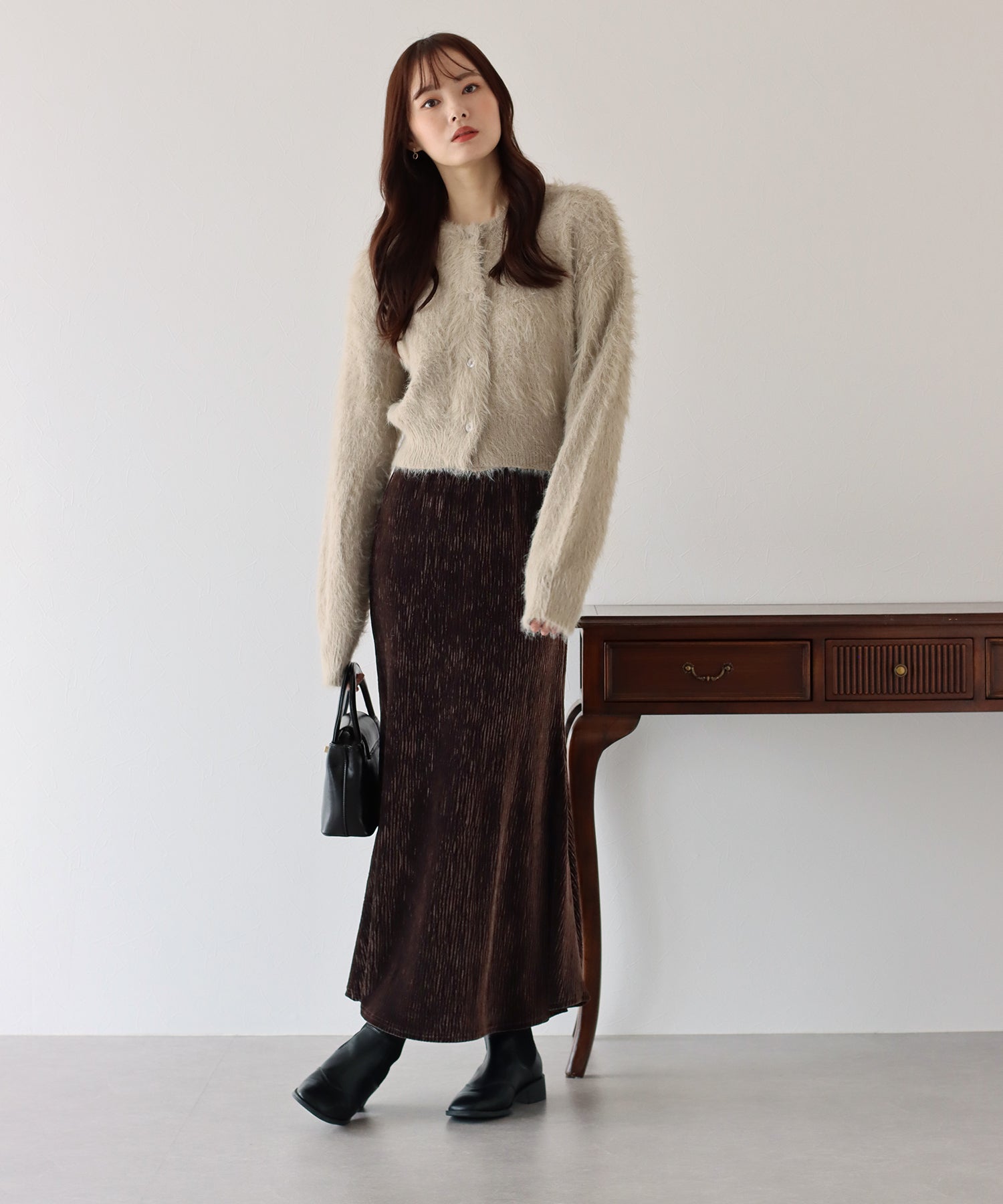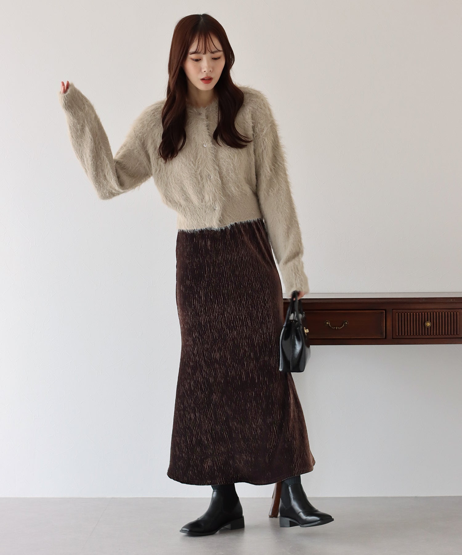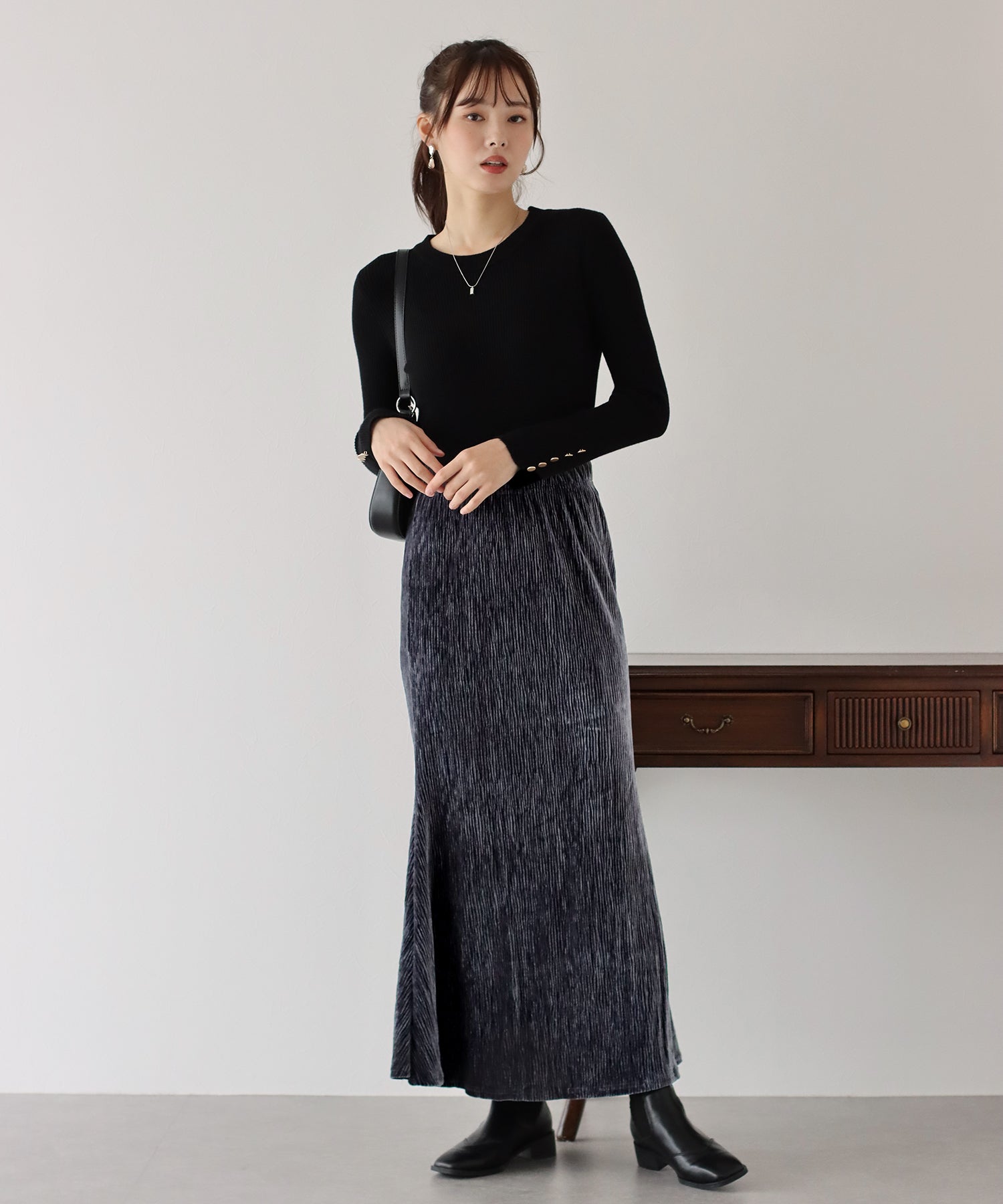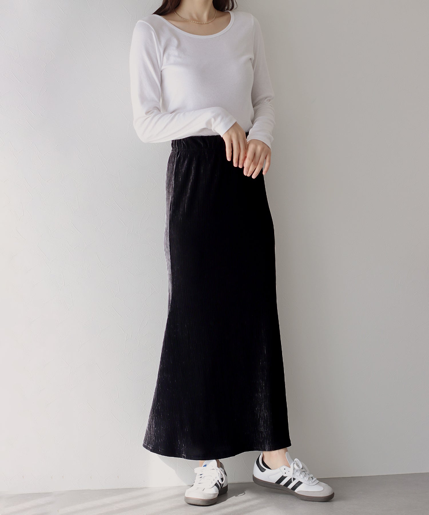 プリーツベロア素材のマーメイドスカート