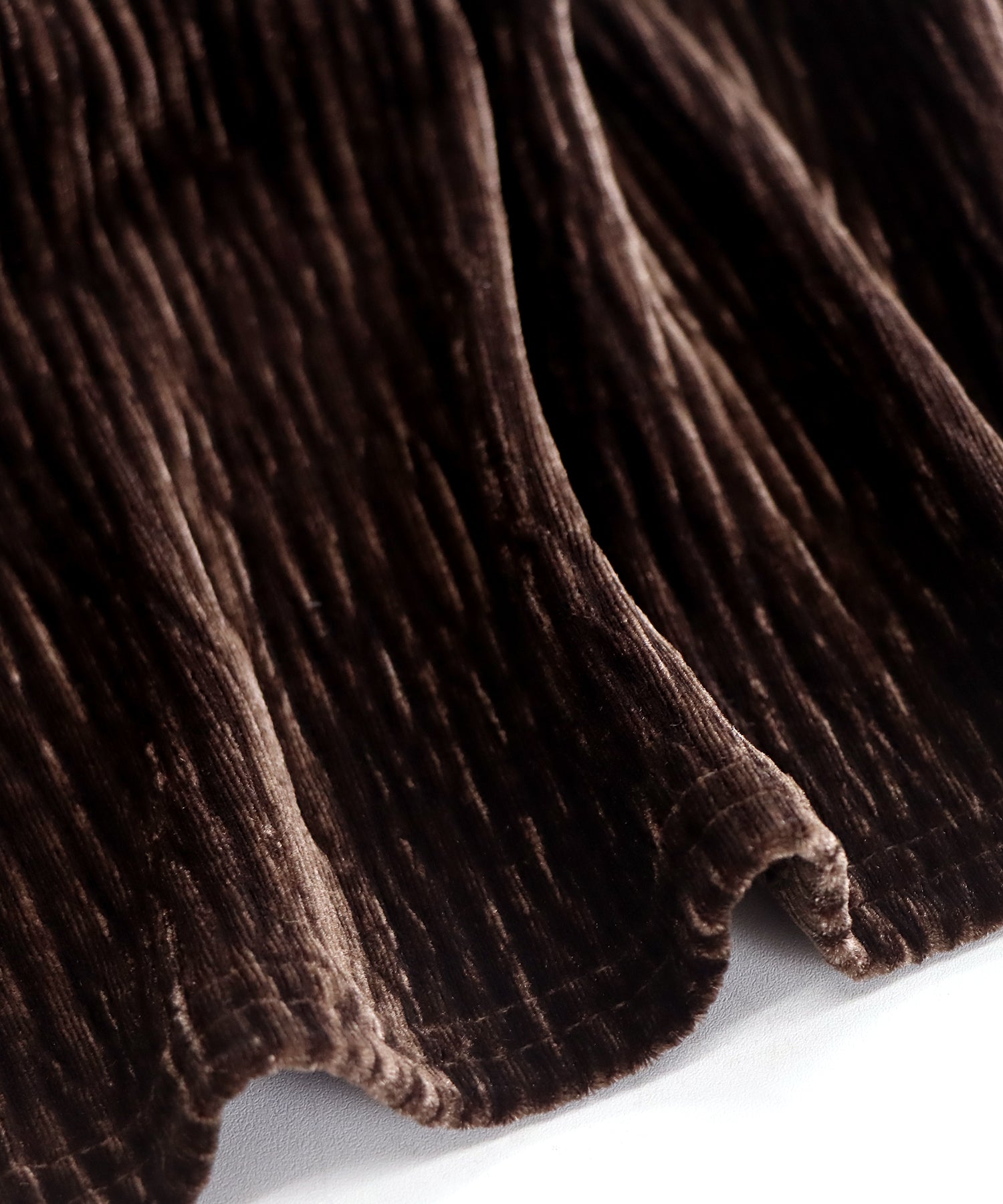 適度な光沢のあるベロア生地を細めのプリーツ加工で上品な印象に仕上げました。