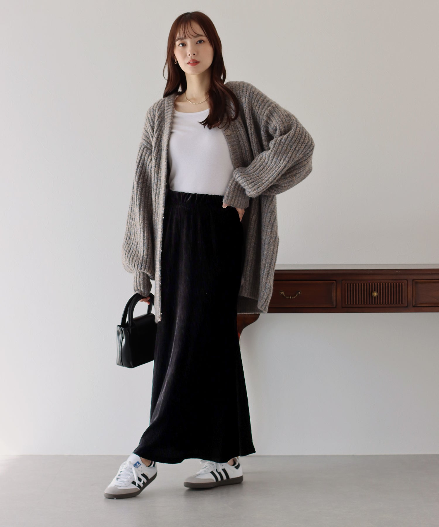 ブラウスと合わせてきれいめに、ニットと合わせてカジュアルにも◎