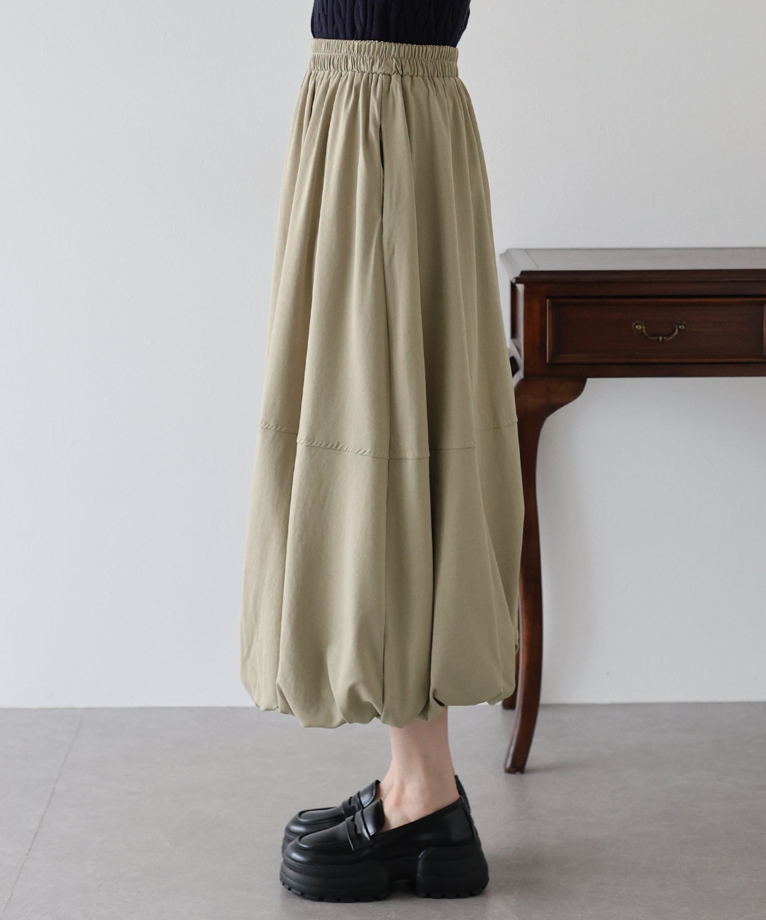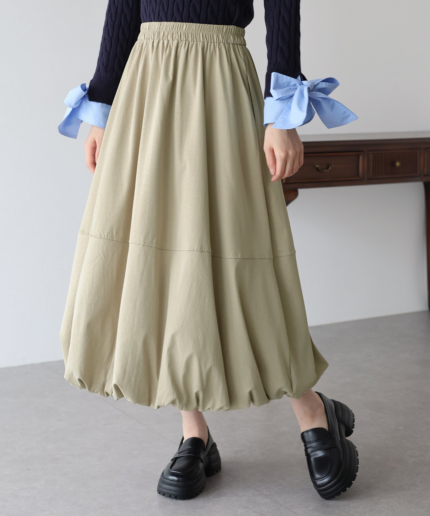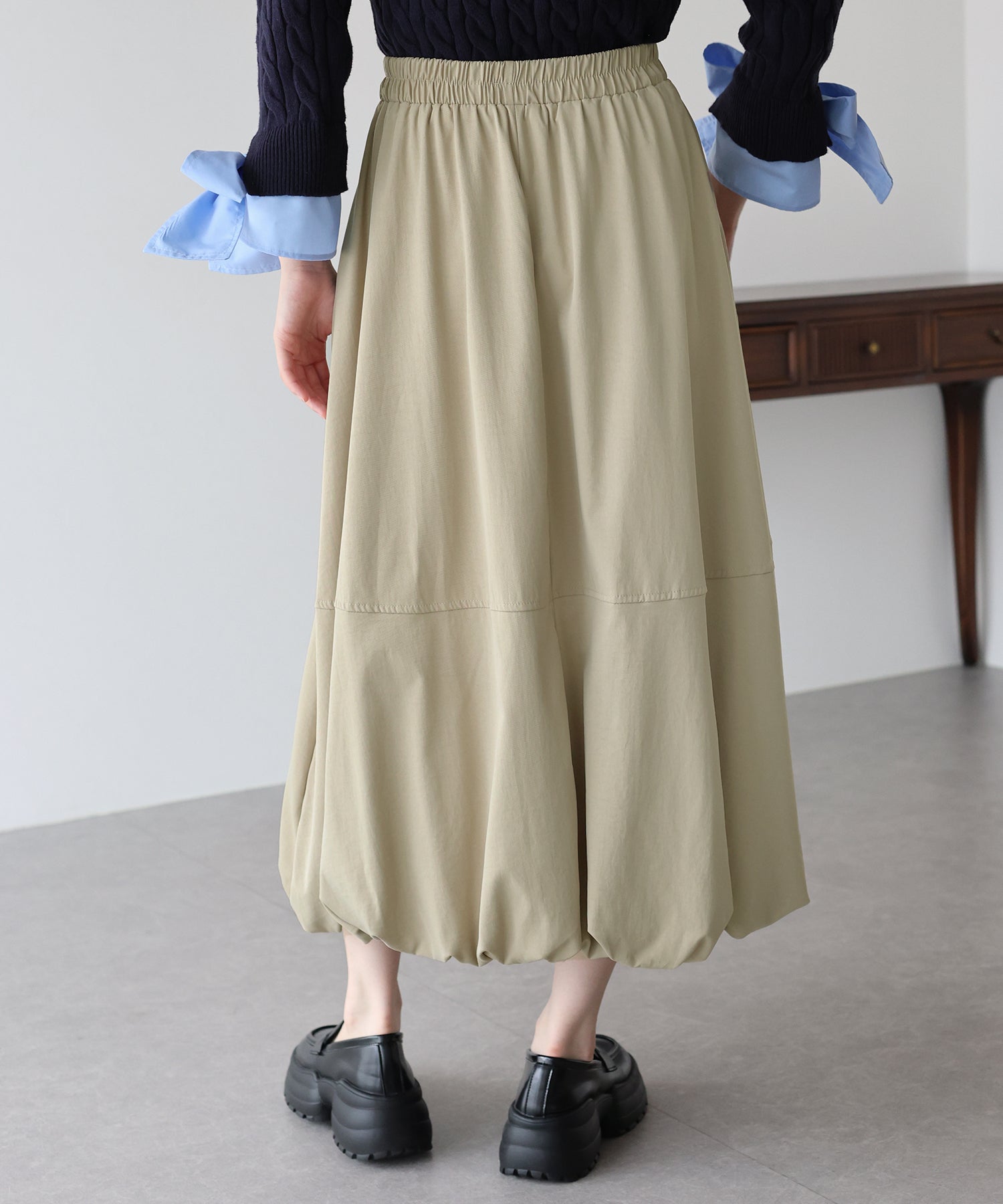 ふんわりと広がる立体的なバルーンシルエットが目を惹くロングスカート