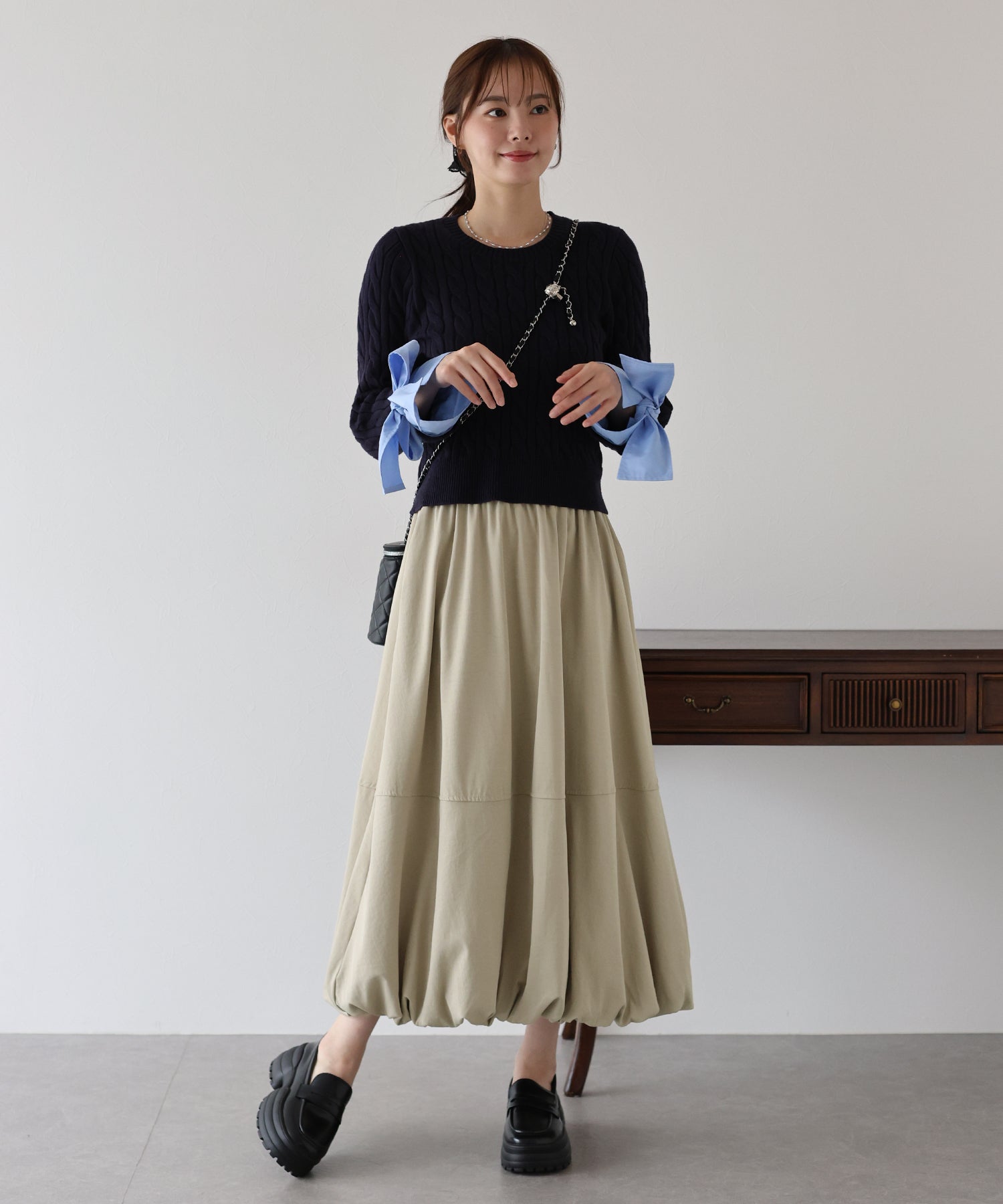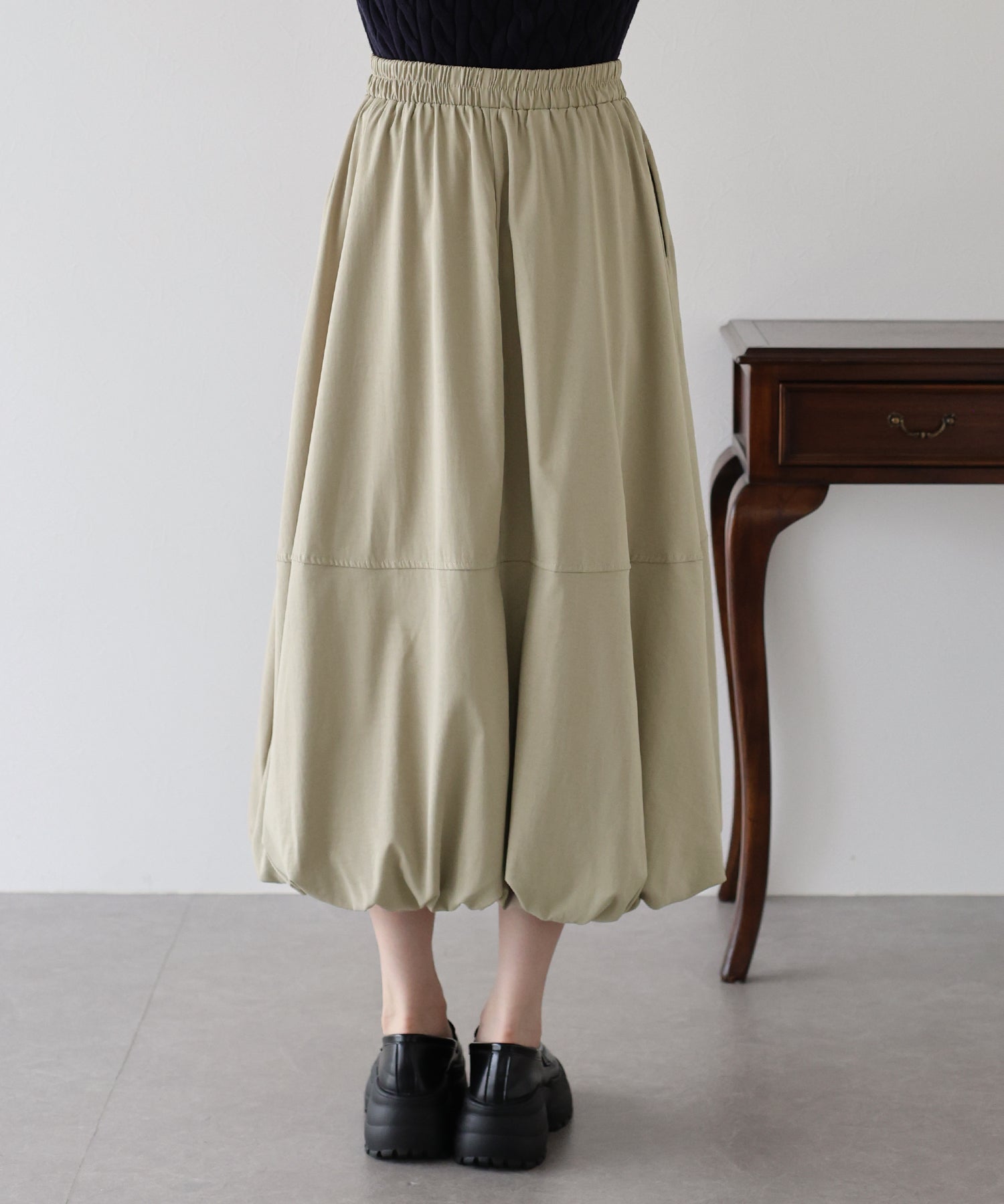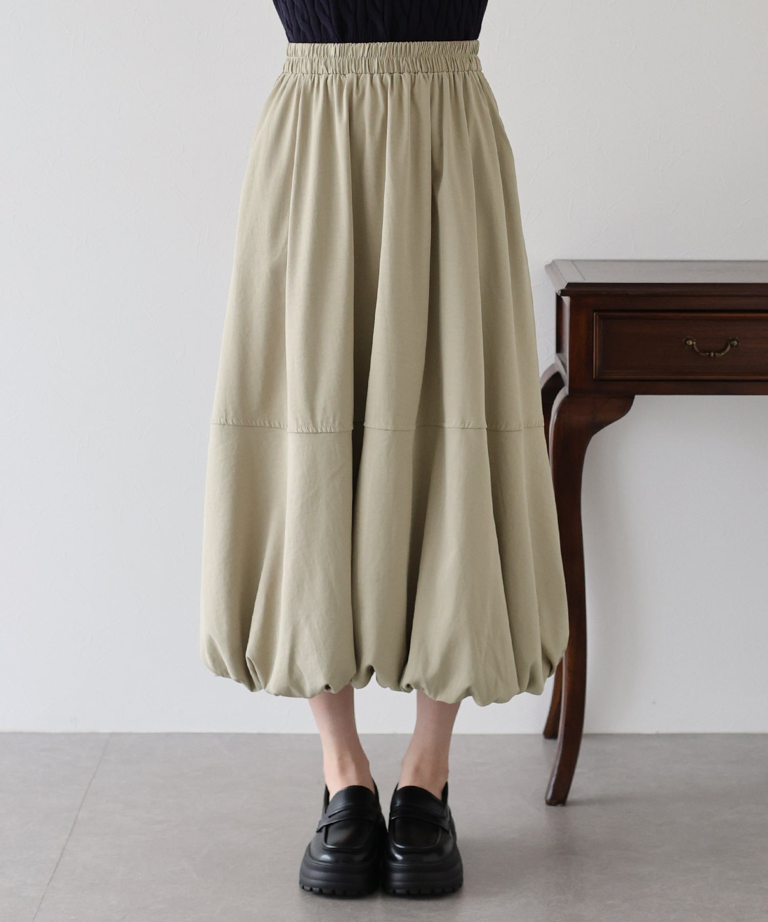 ふんわりと広がる立体的なバルーンシルエットが目を惹くロングスカート