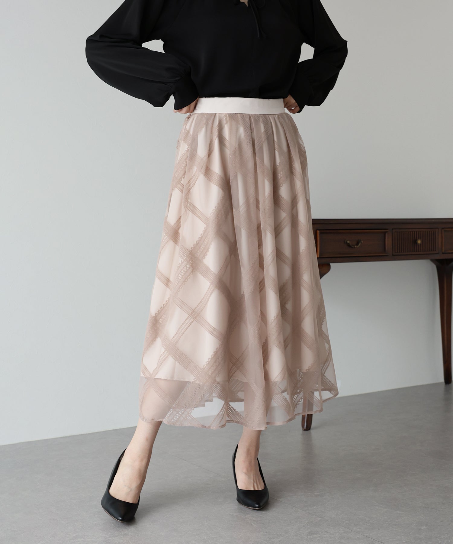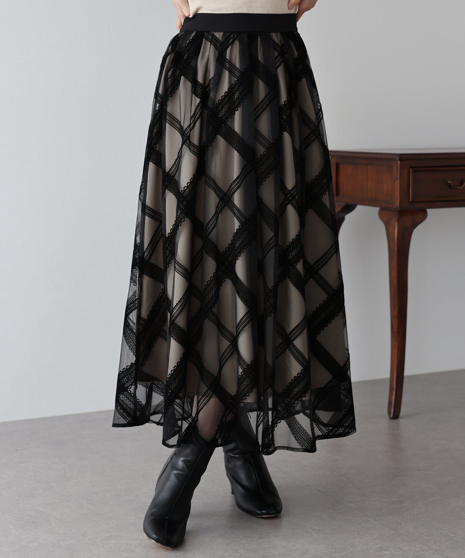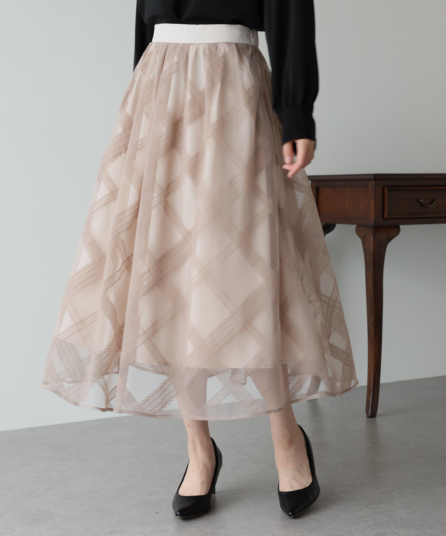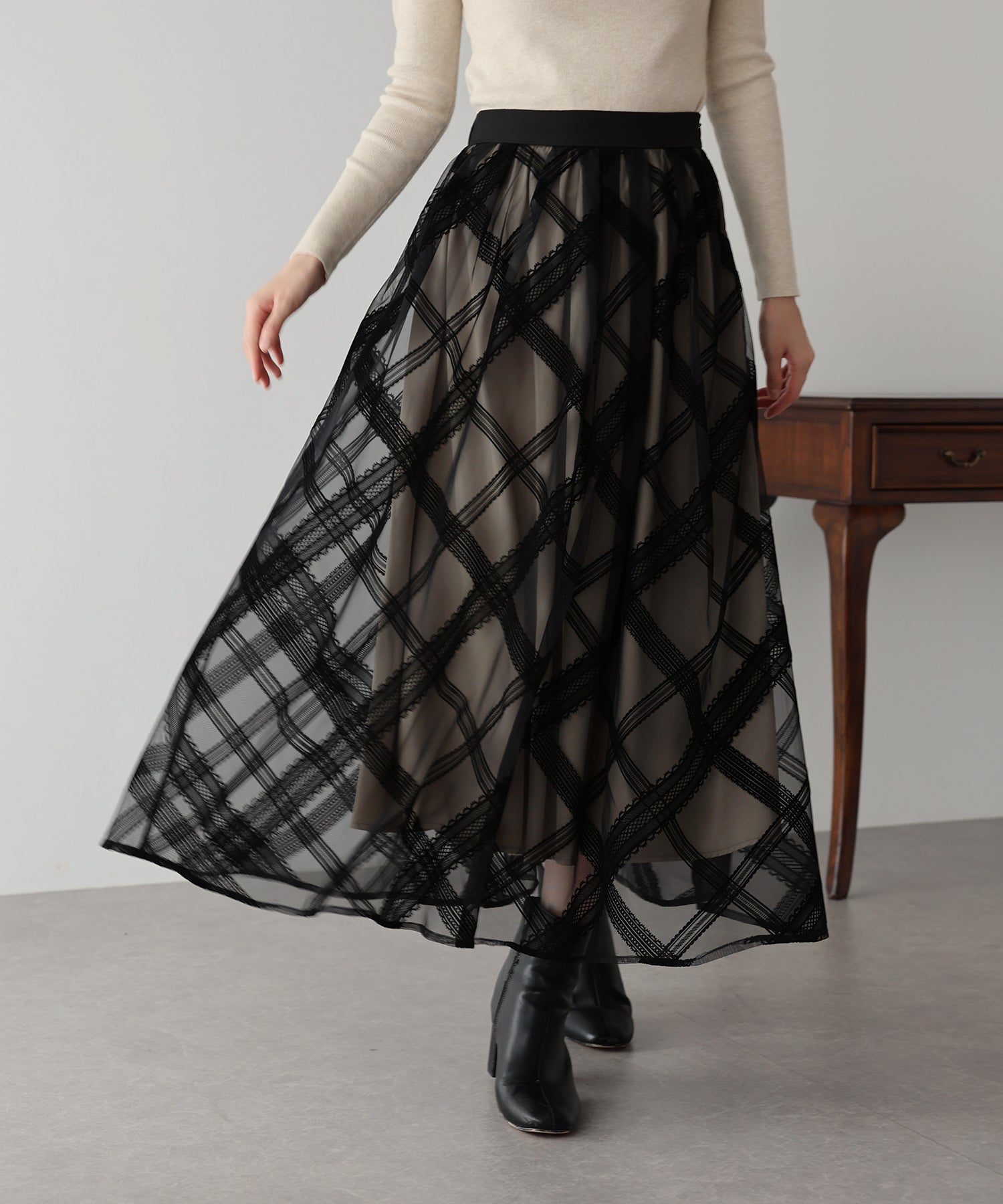 クラシカルな雰囲気を纏うチュールスカート