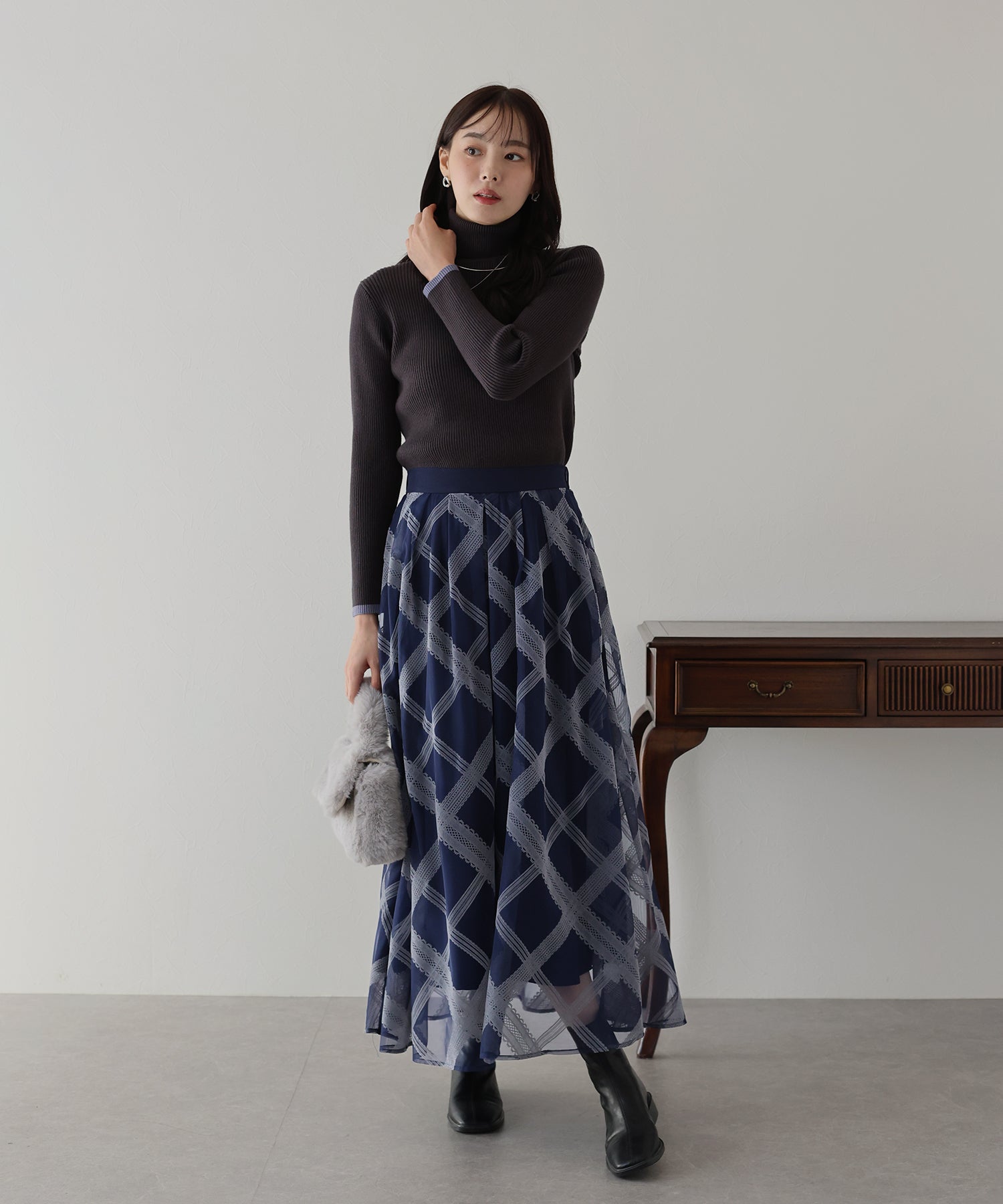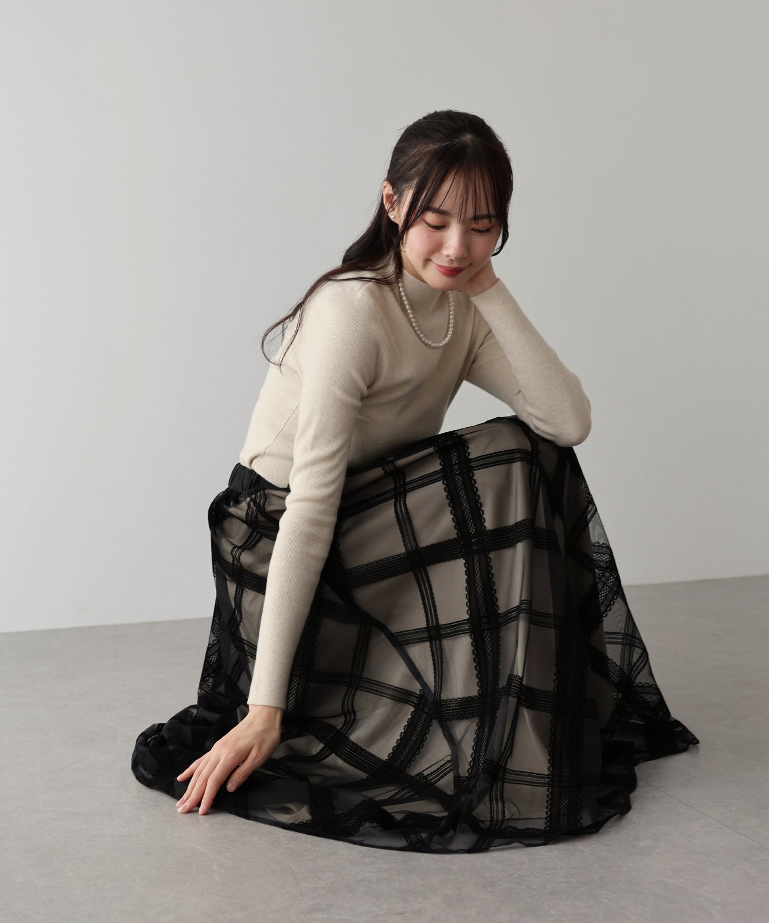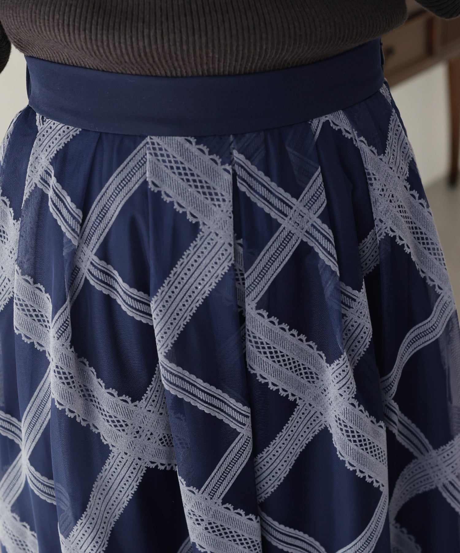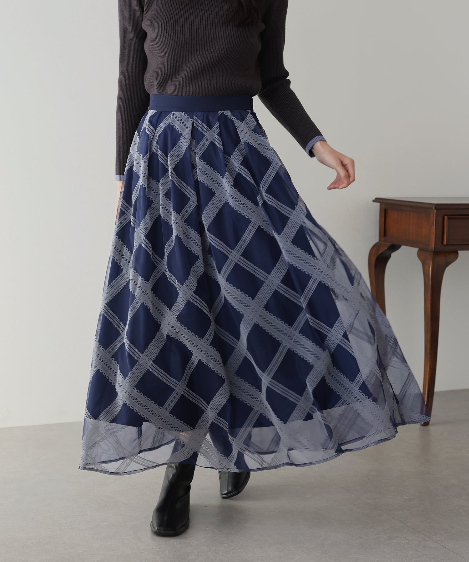 レースのようなチェック柄がクラシカルで大人ガーリーな印象に。