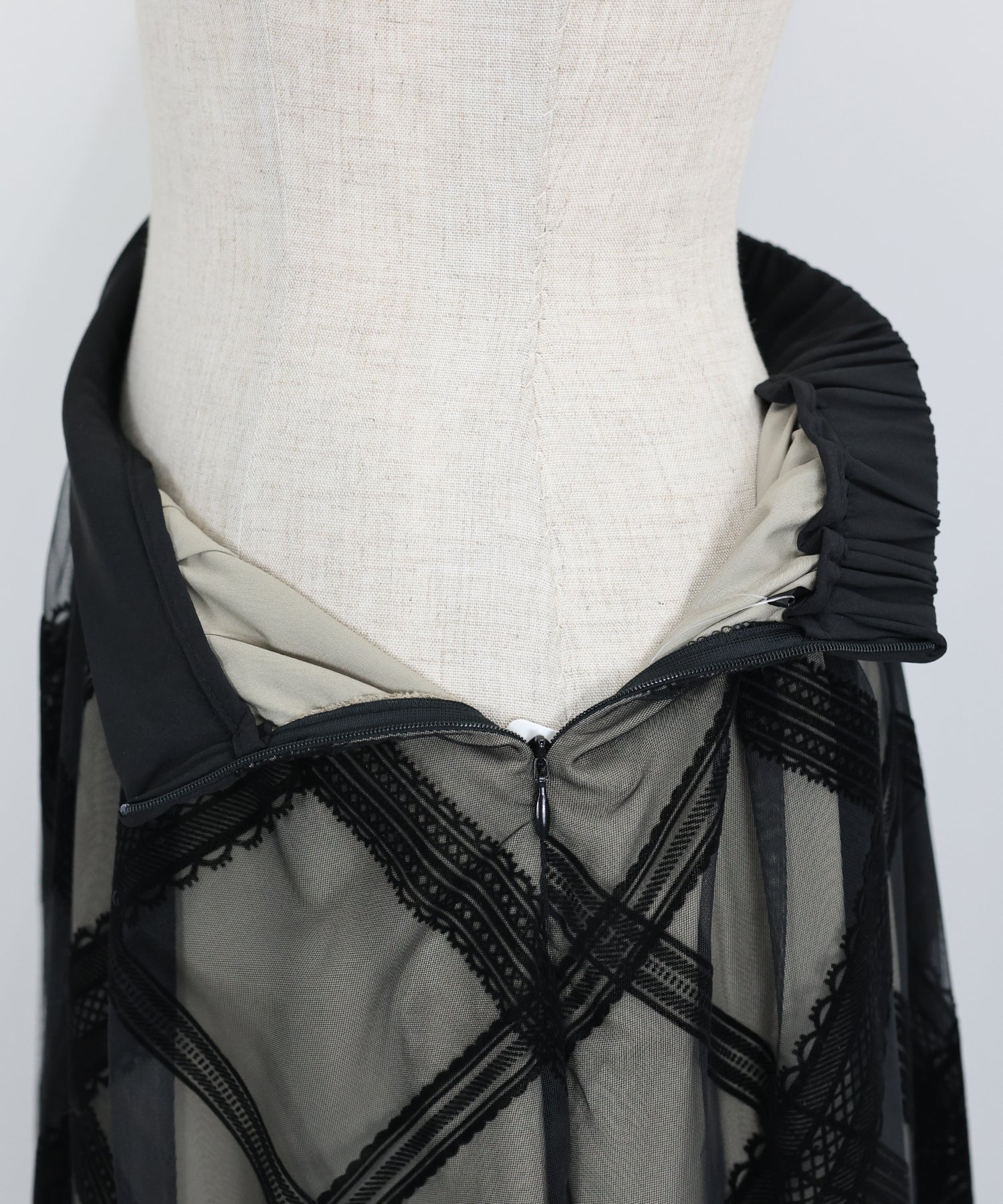 バックウエストゴムとサイドファスナーで着脱しやすく、ストレスのない着心地でお楽しみいただけます。