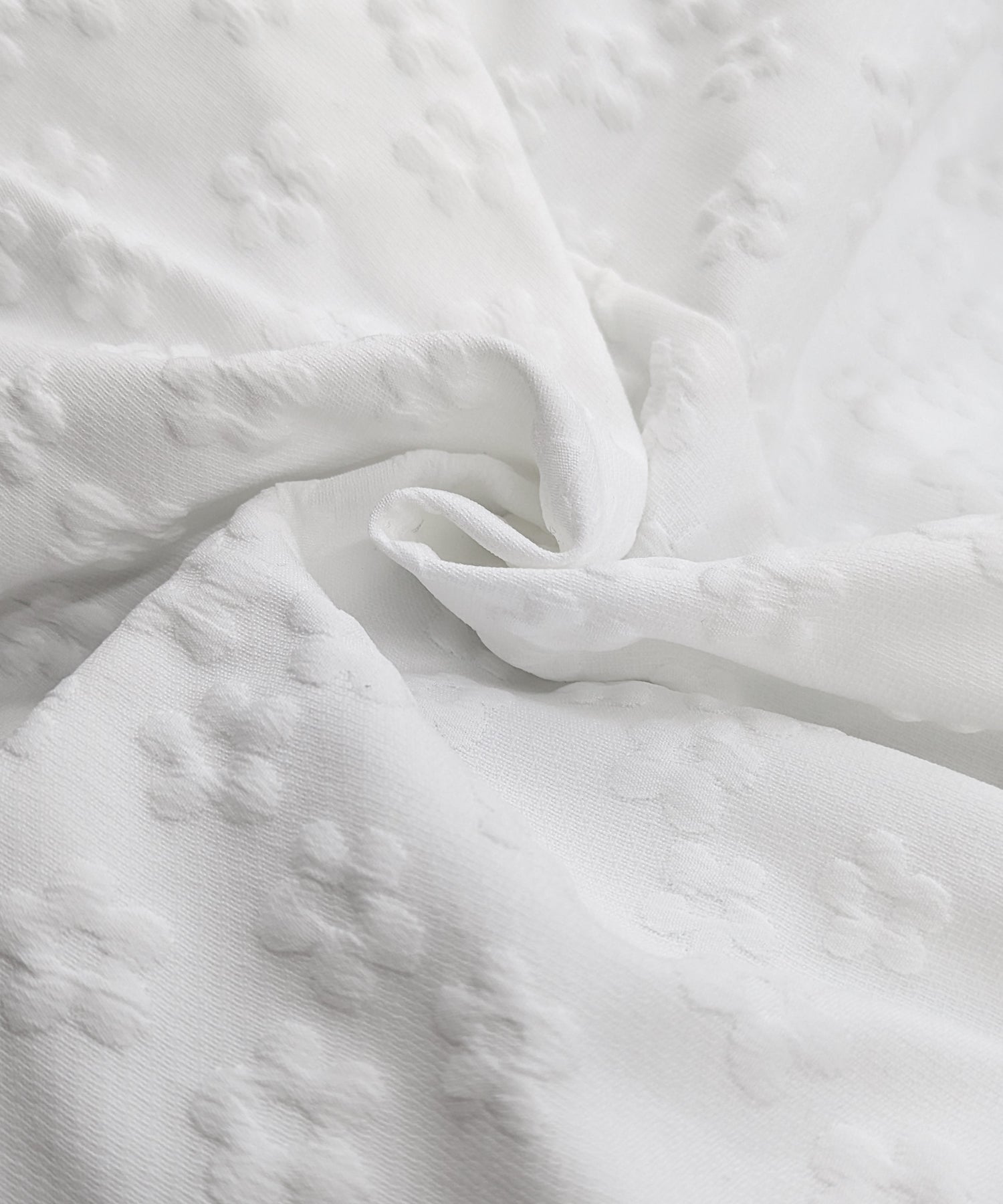 立体感のあるジャガード生地が、シンプルながらも奥行きのある雰囲気を演出。