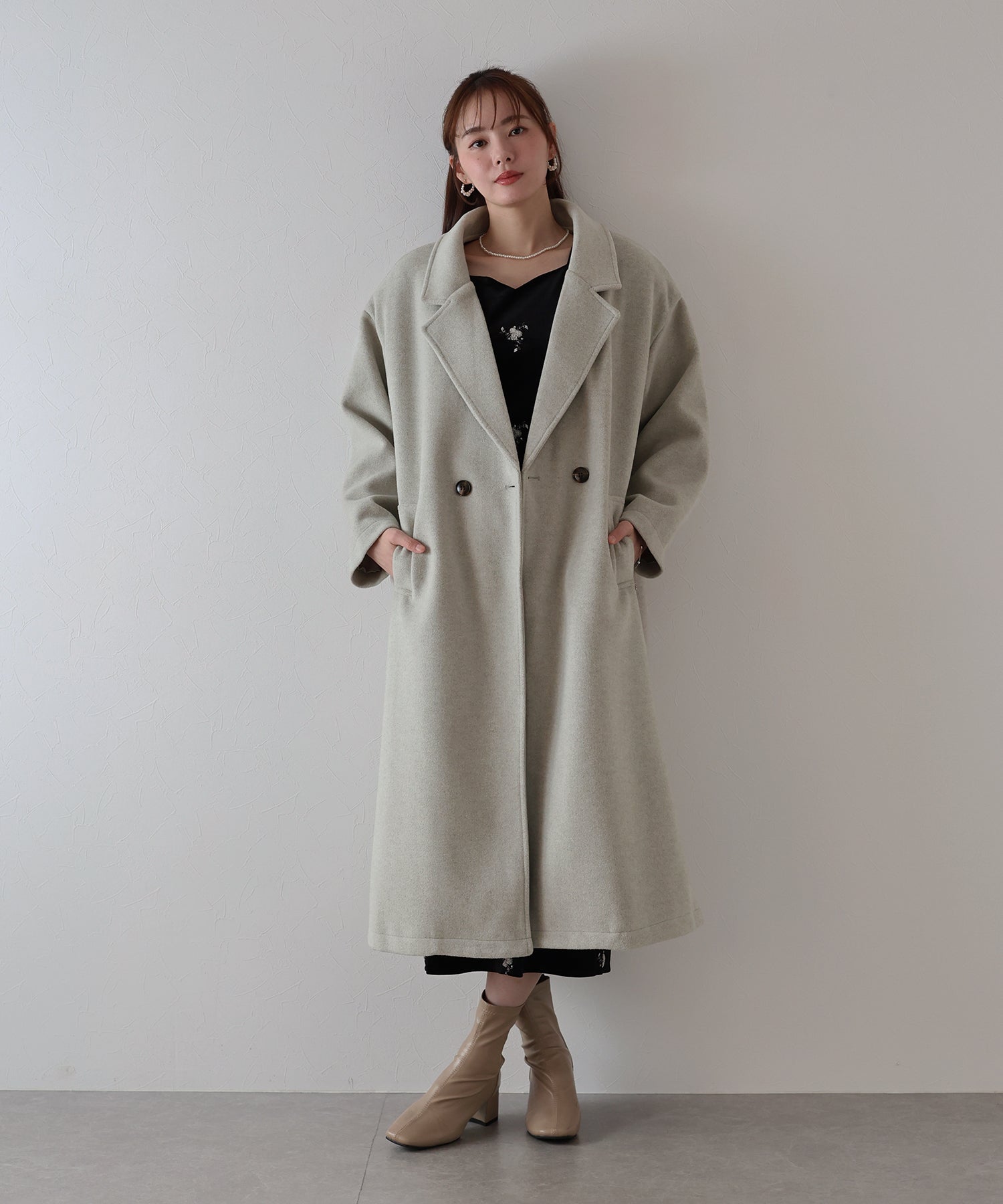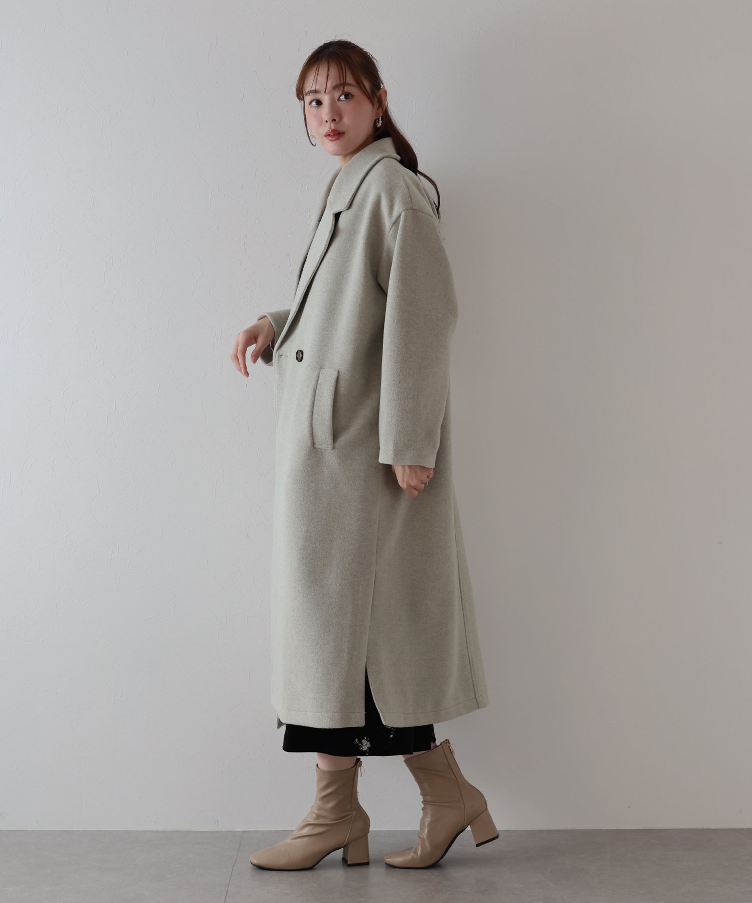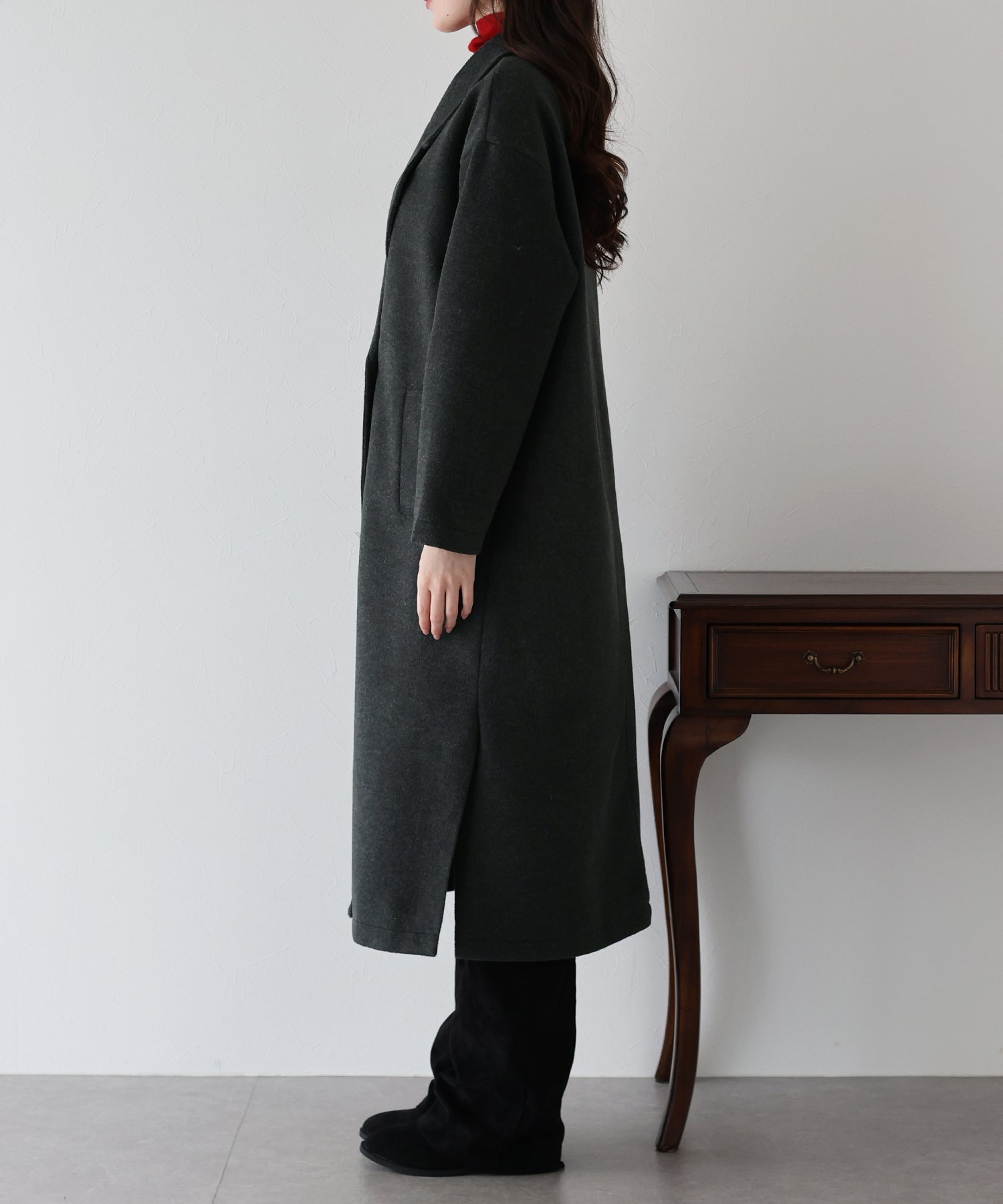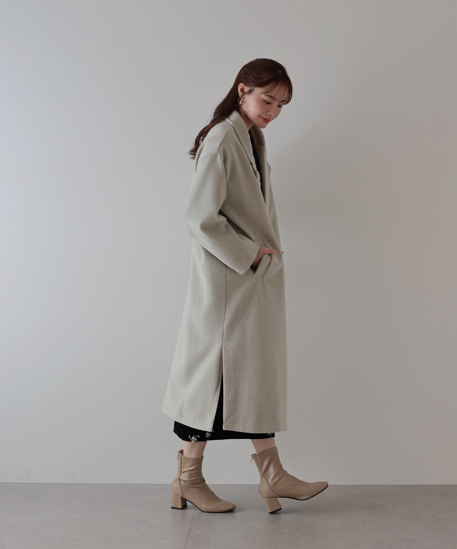軽やかで柔らかいウール混素材を使用したロングコート