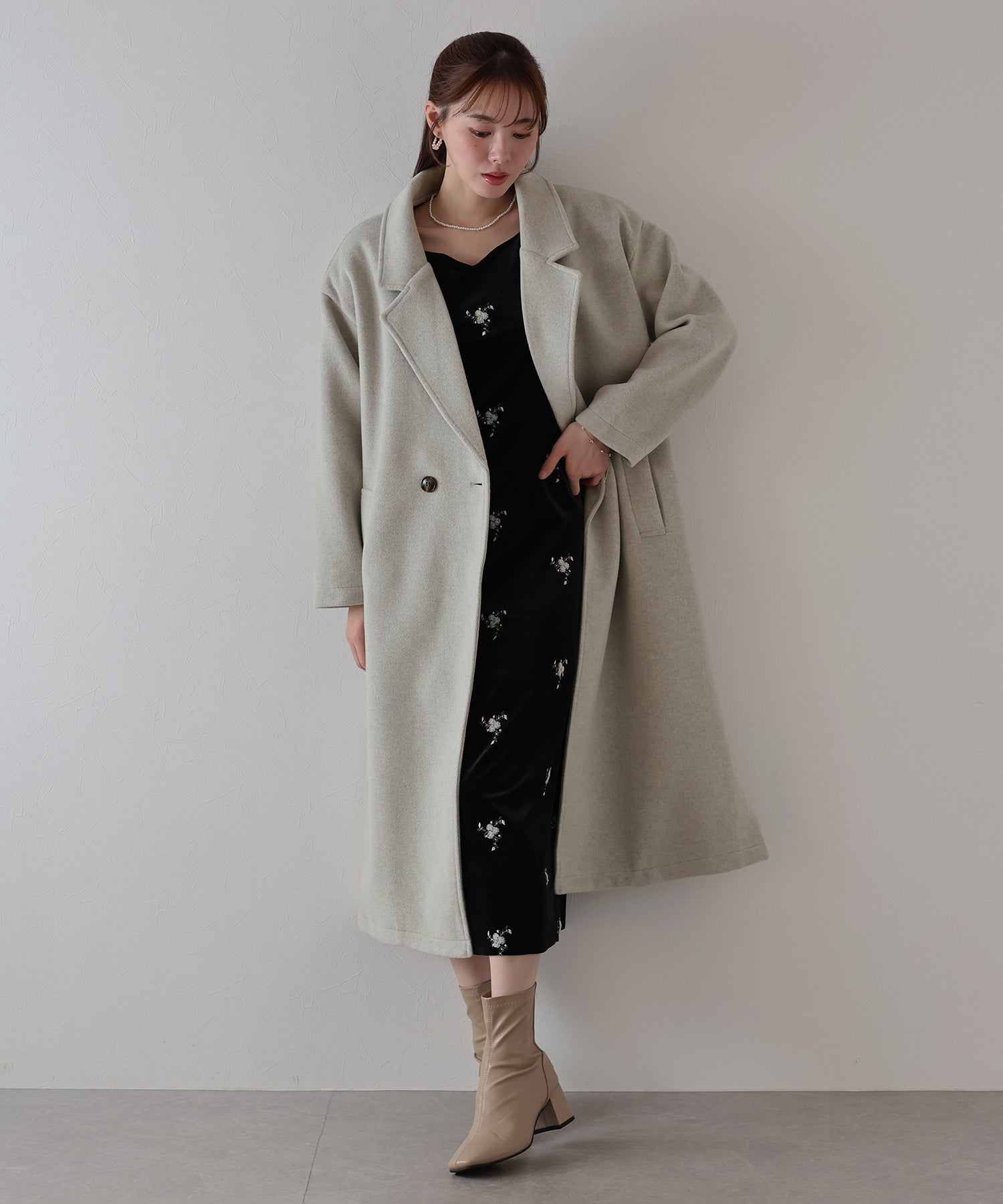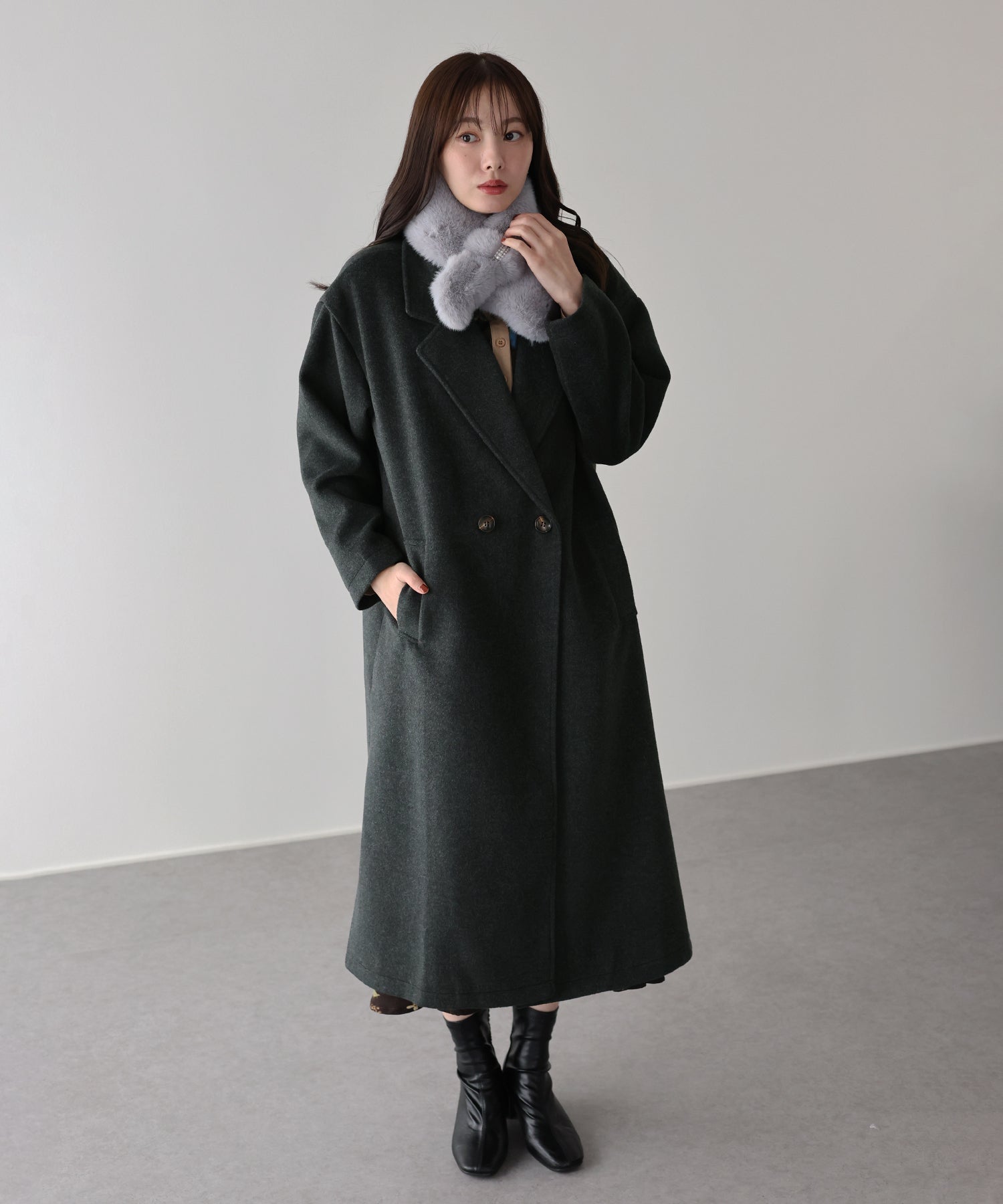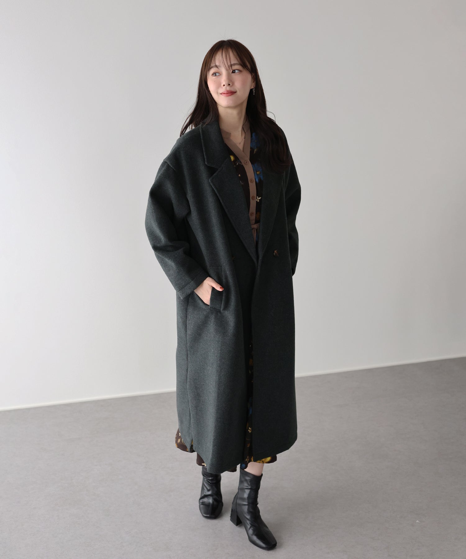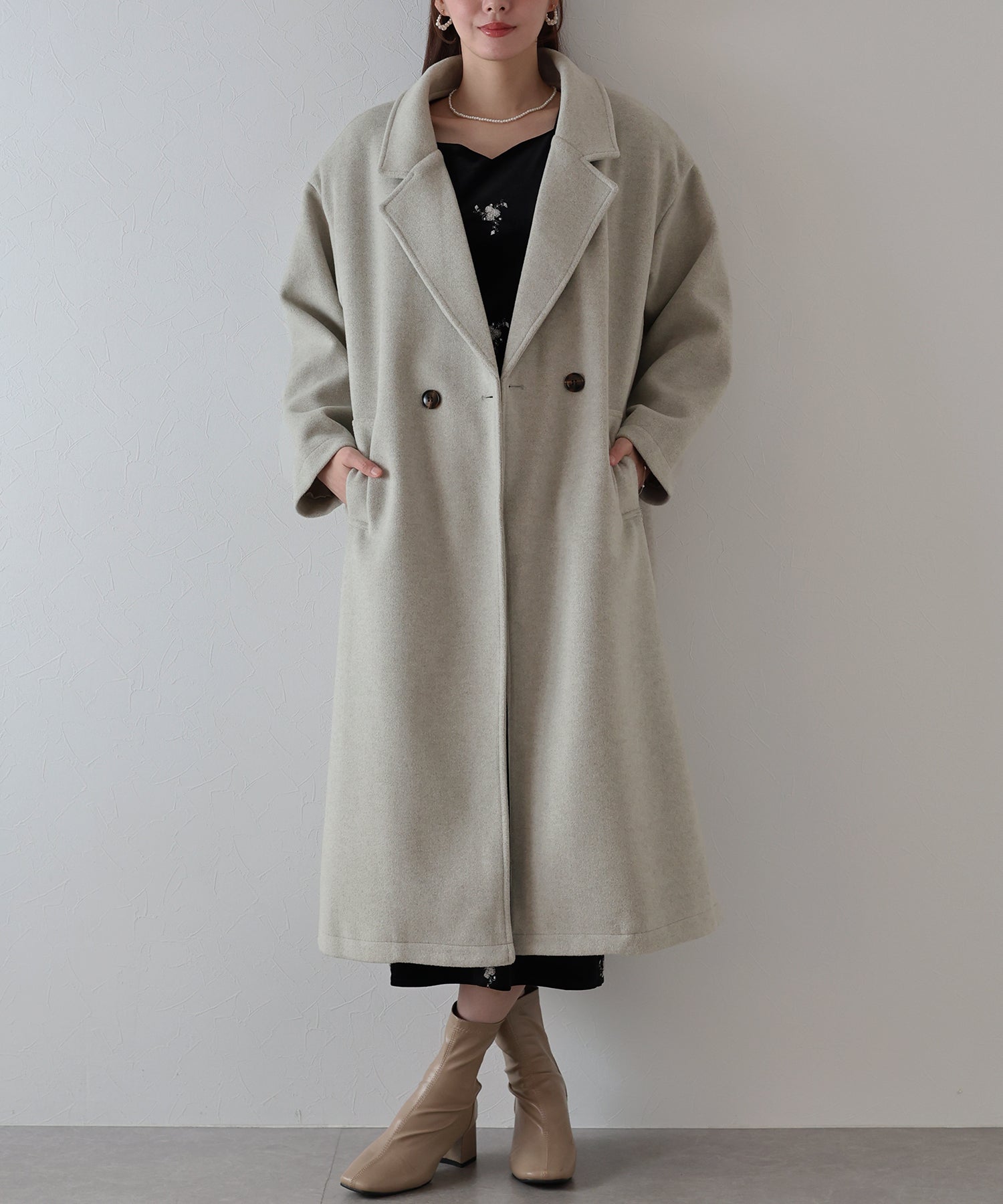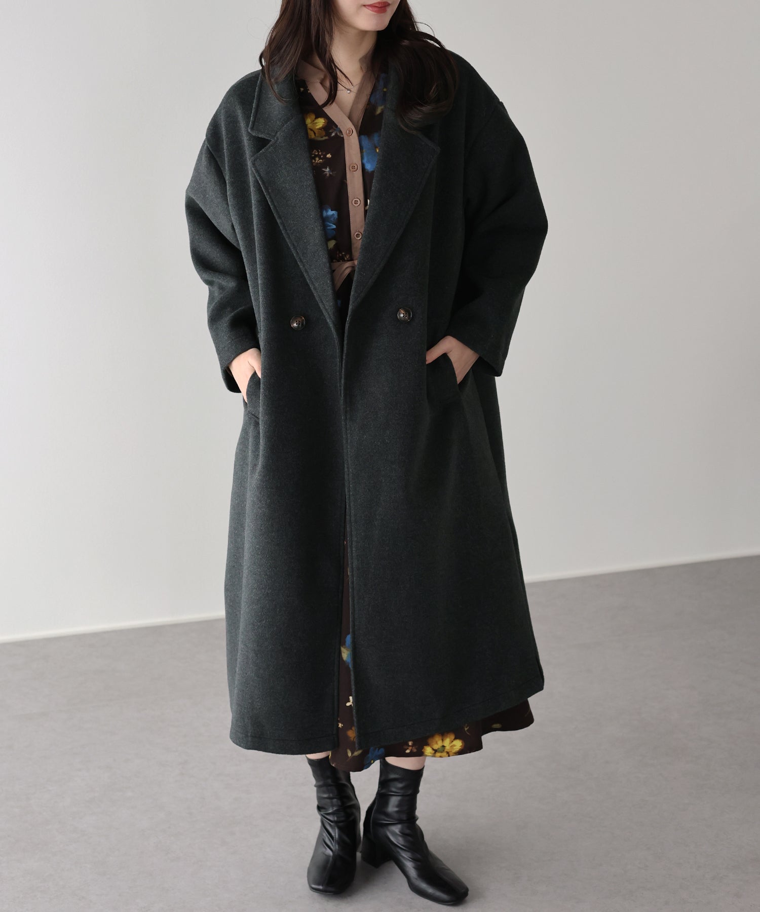 軽やかで柔らかいウール混素材を使用したロングコート