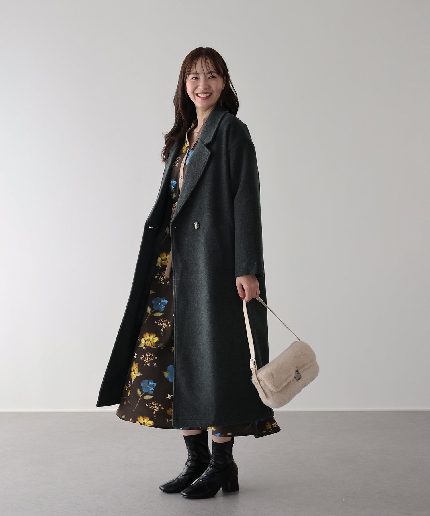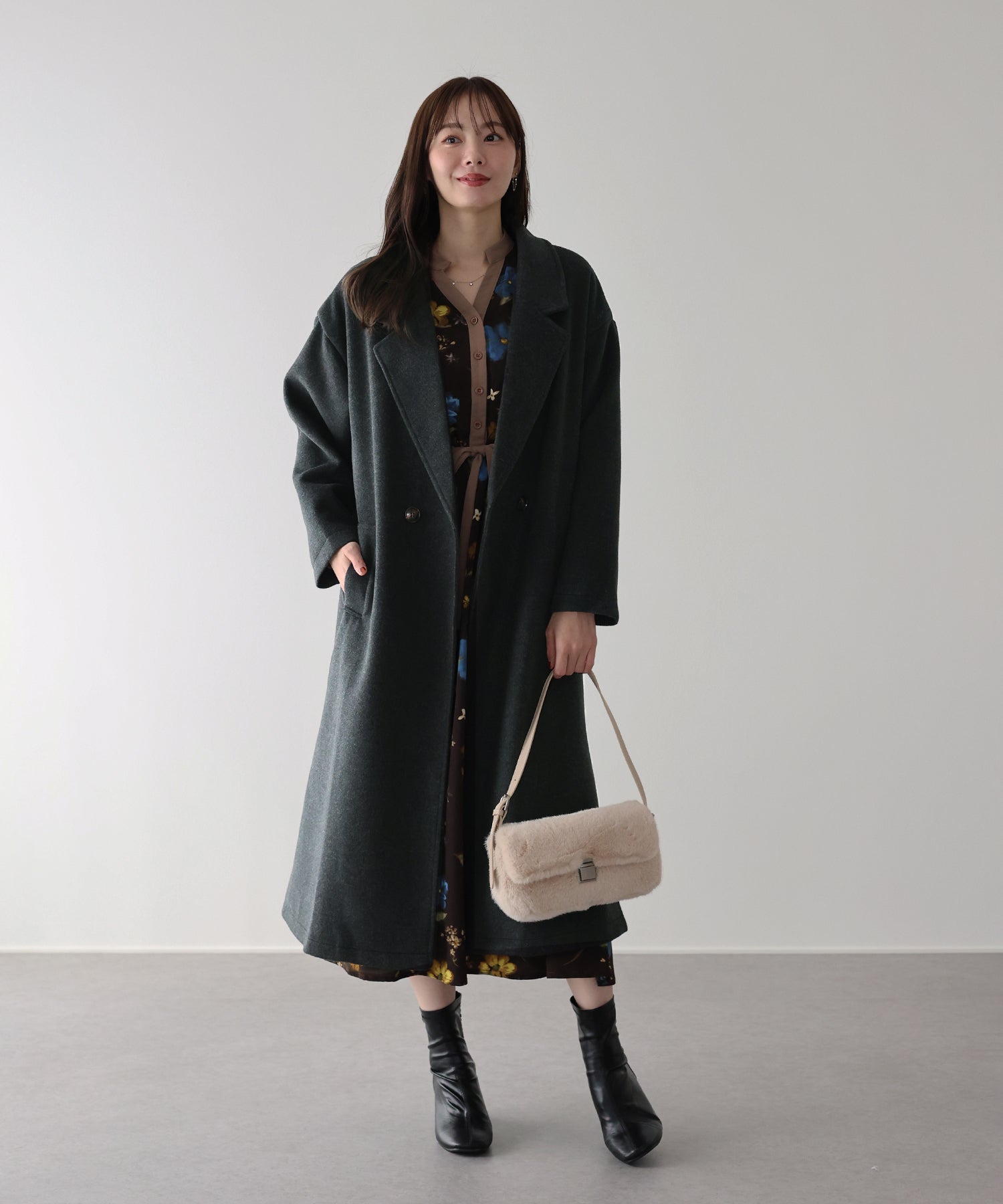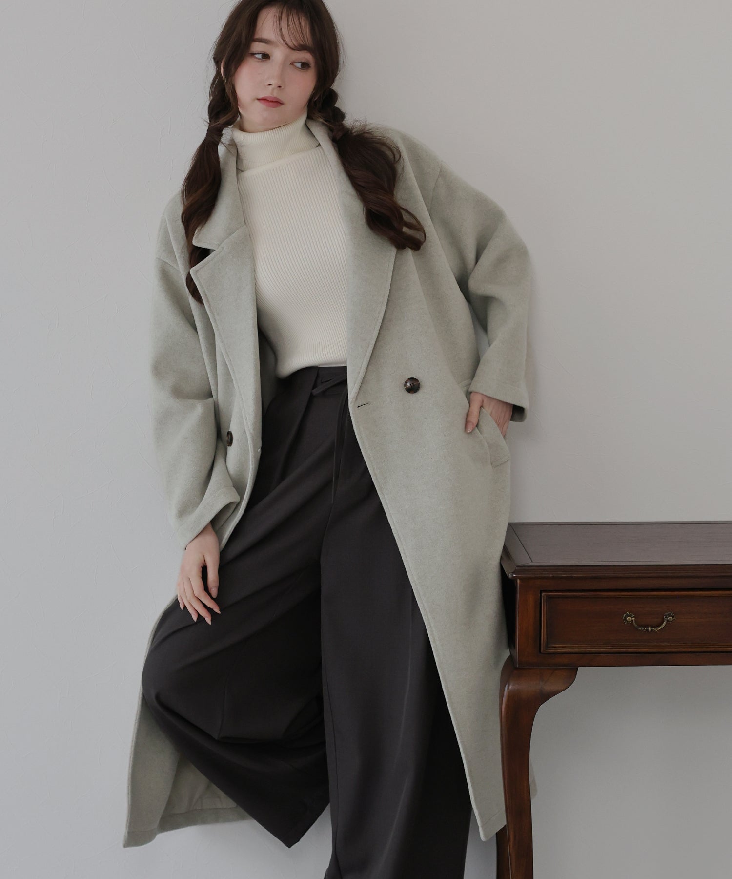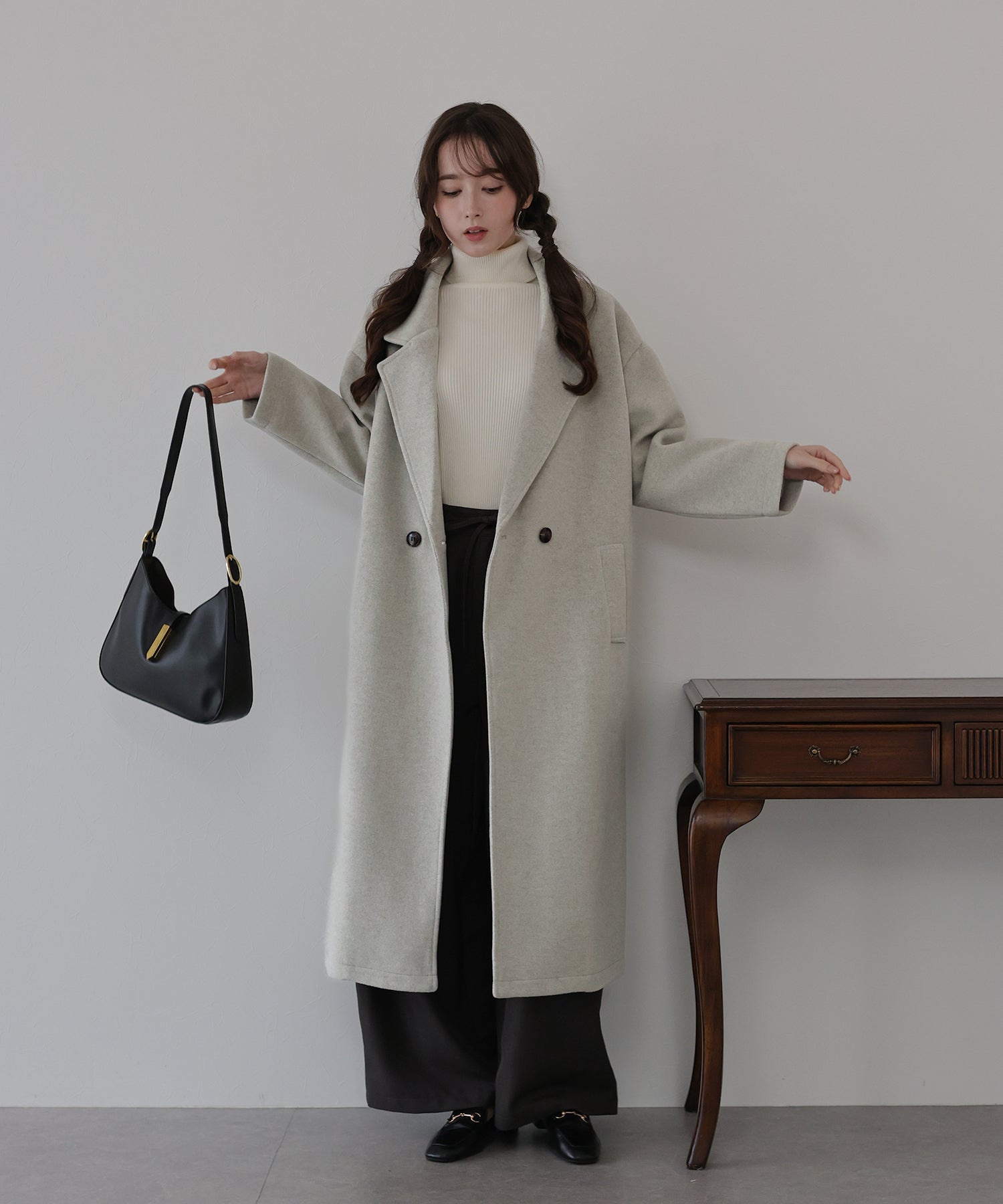 軽やかで柔らかいウール混素材を使用したロングコート