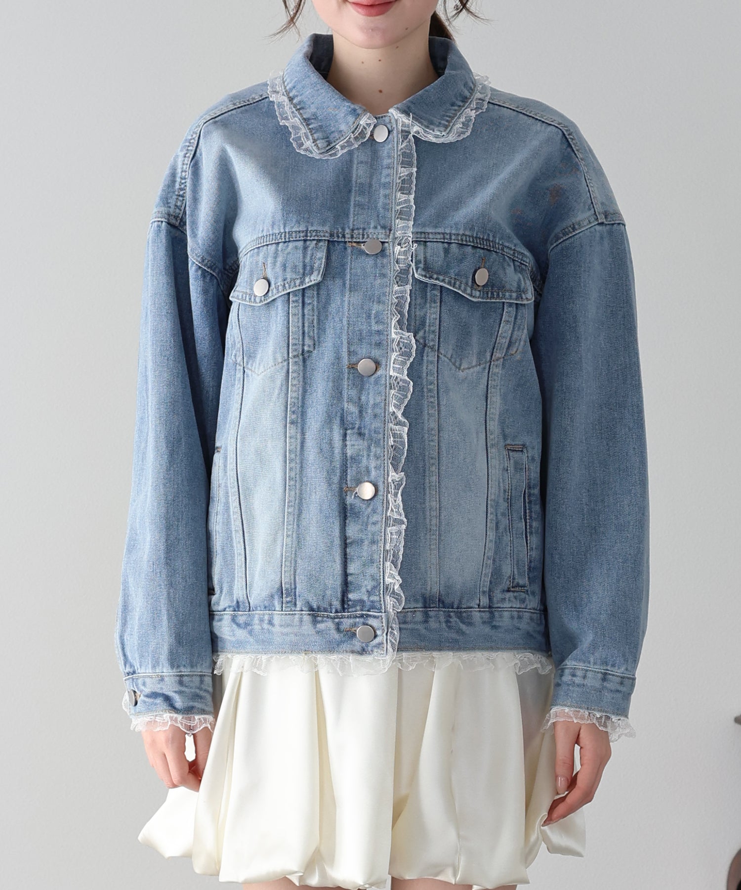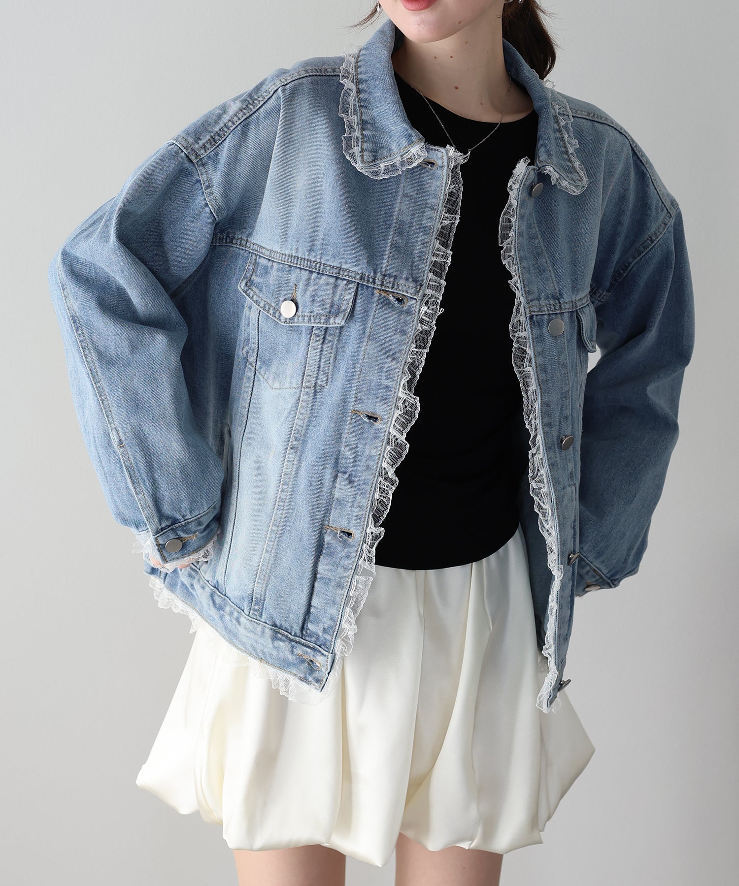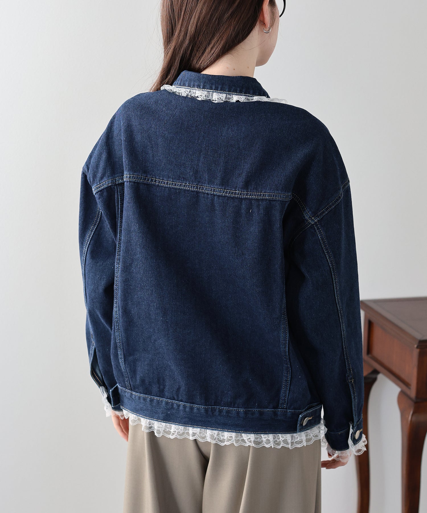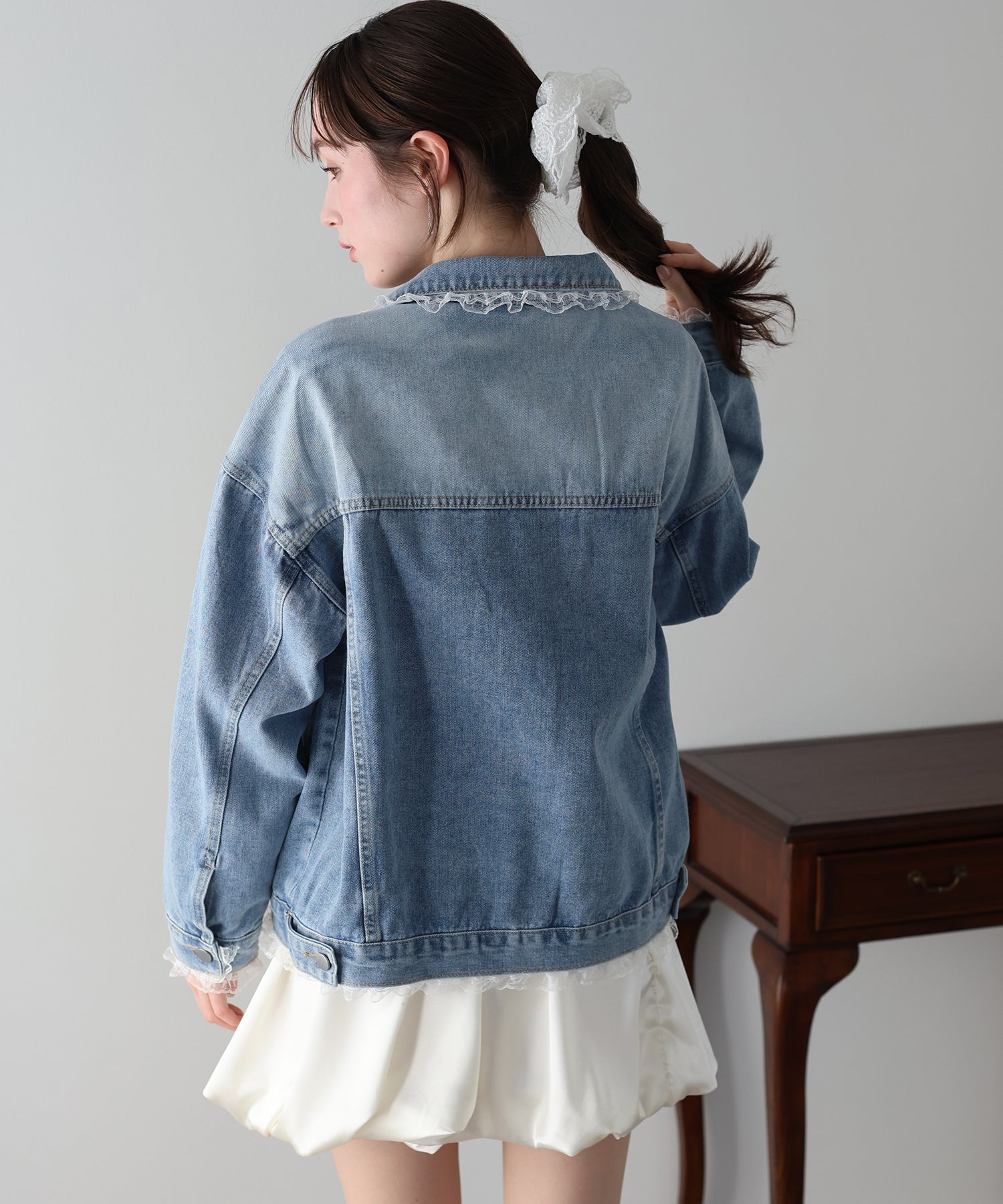 カジュアル×フェミニンなレースドッキングデニムジャケット