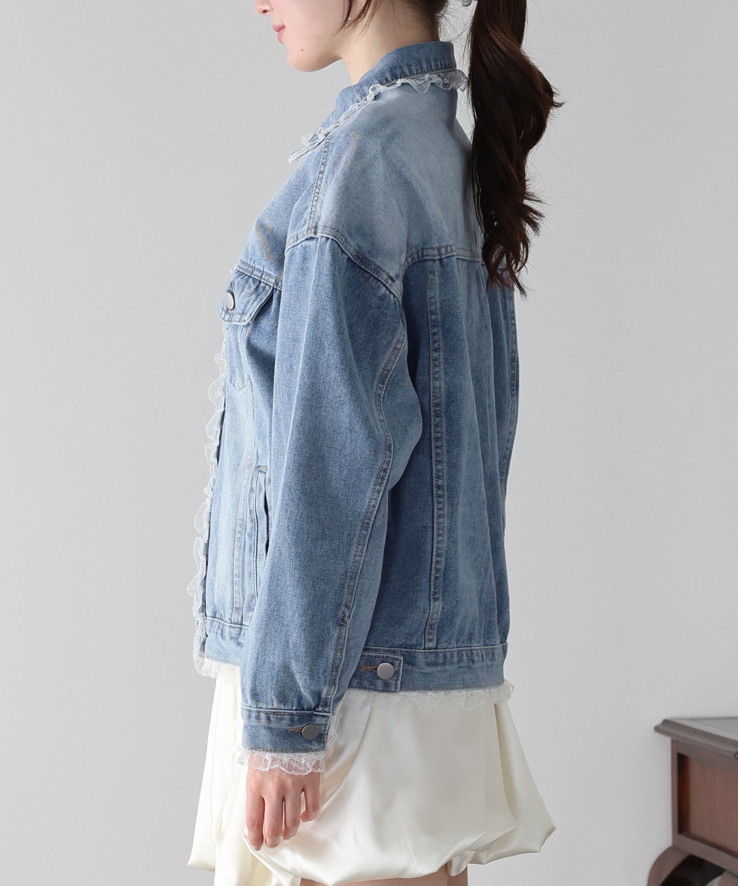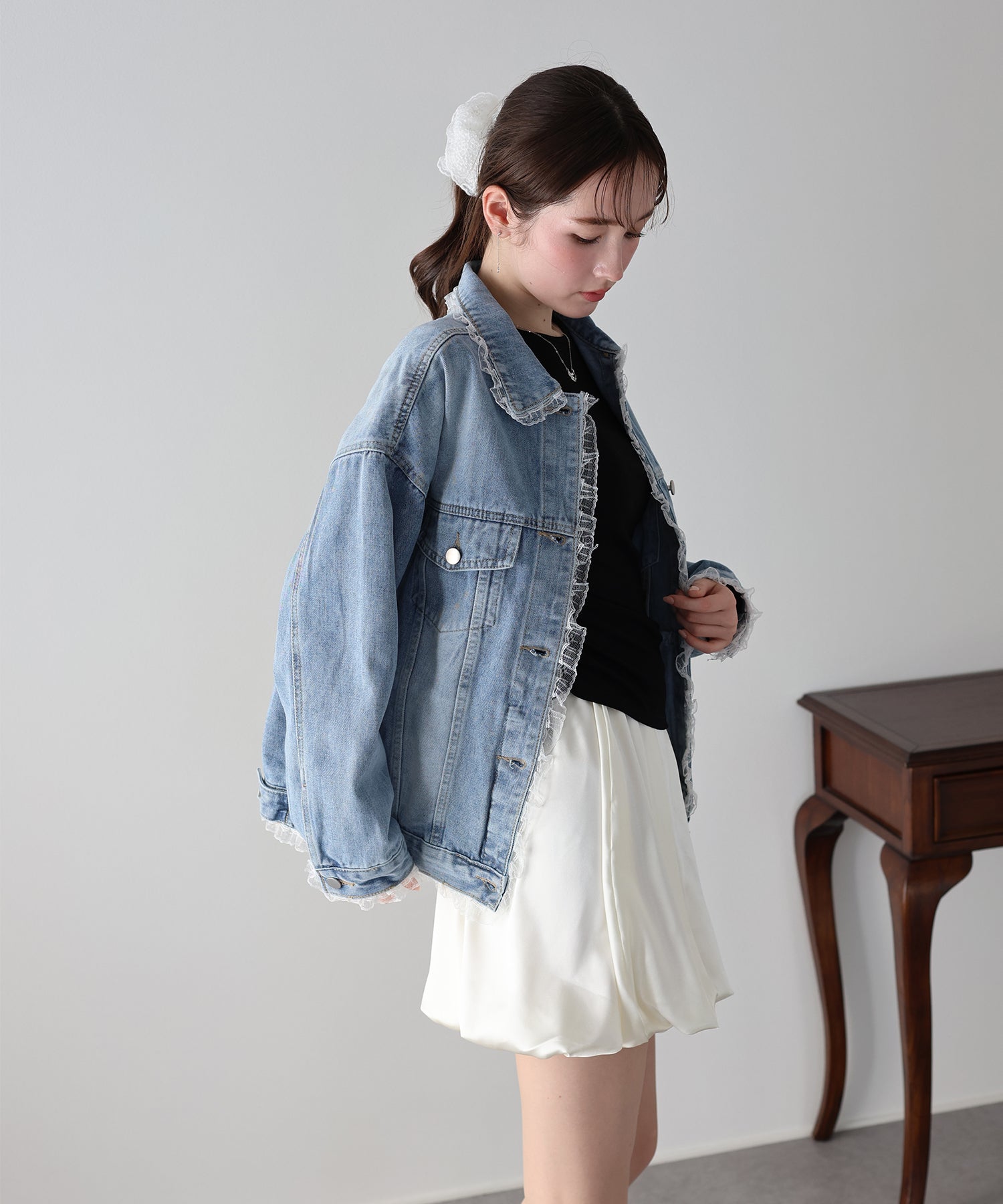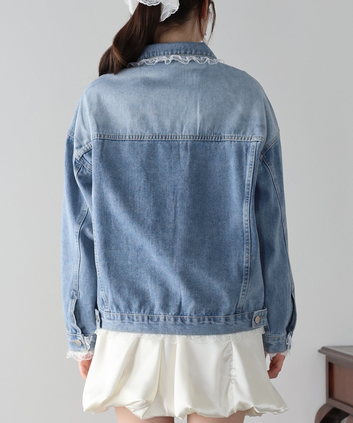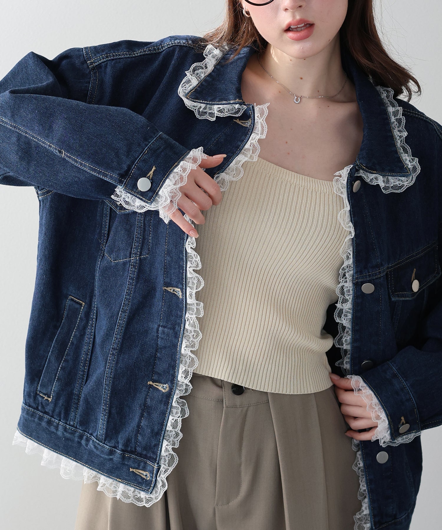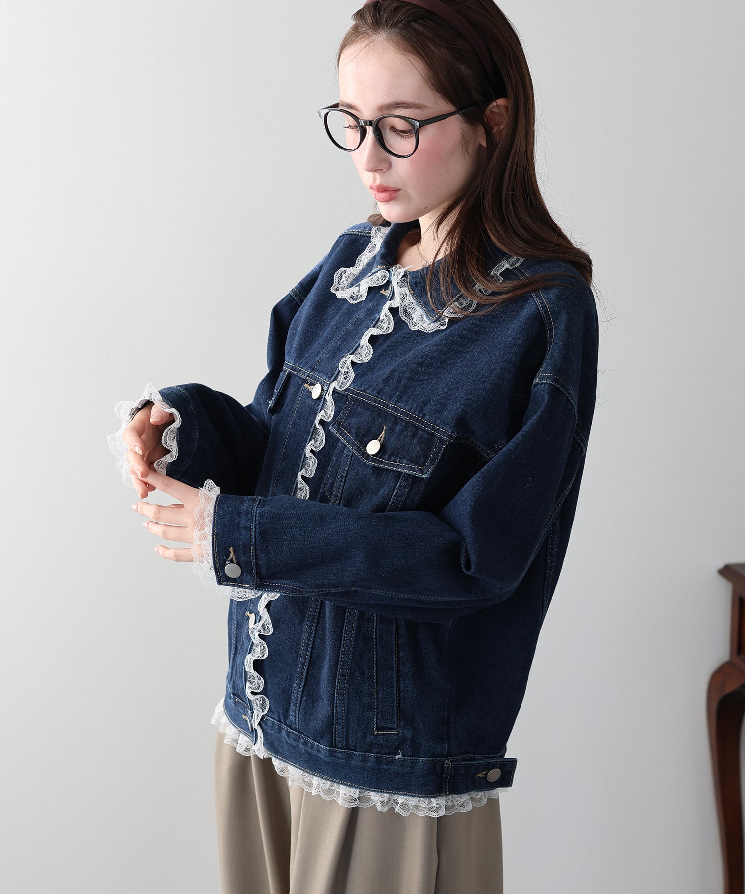 カジュアル×フェミニンなレースドッキングデニムジャケット
