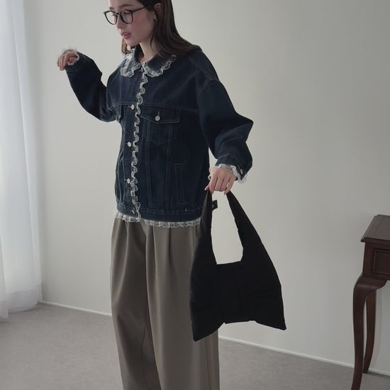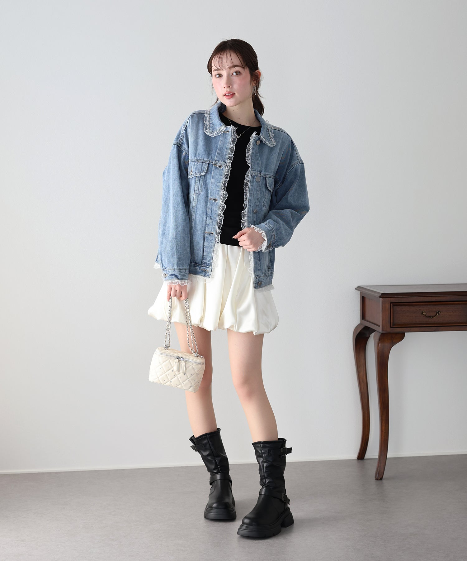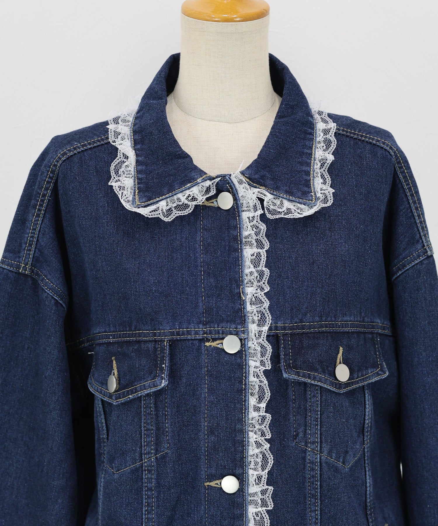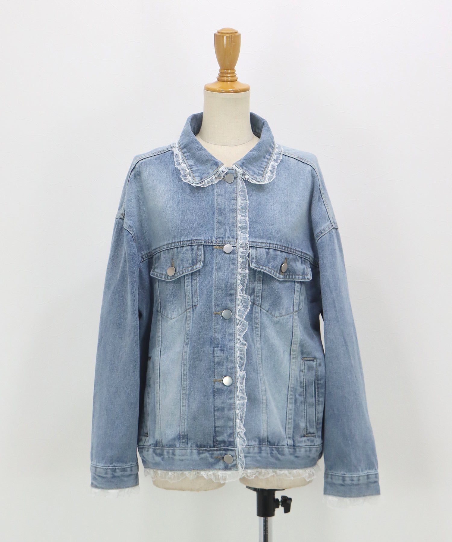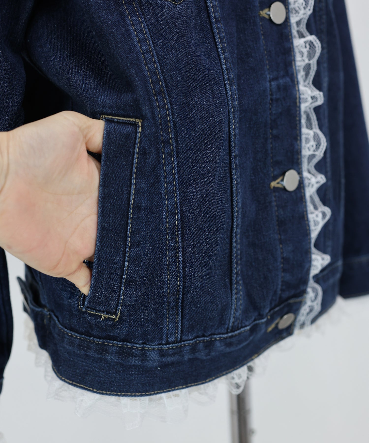 カジュアル×フェミニンなレースドッキングデニムジャケット