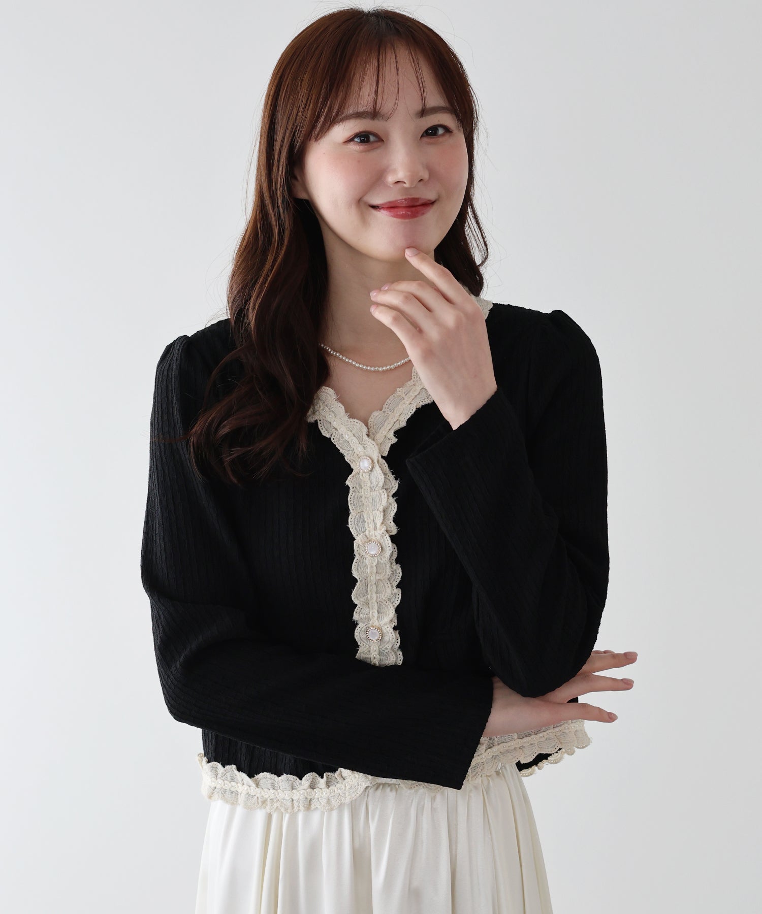 スラックスやタイトスカートに合わせれば、レースの甘さが程よいアクセントになる、大人ガーリーなオフィスコーデに。