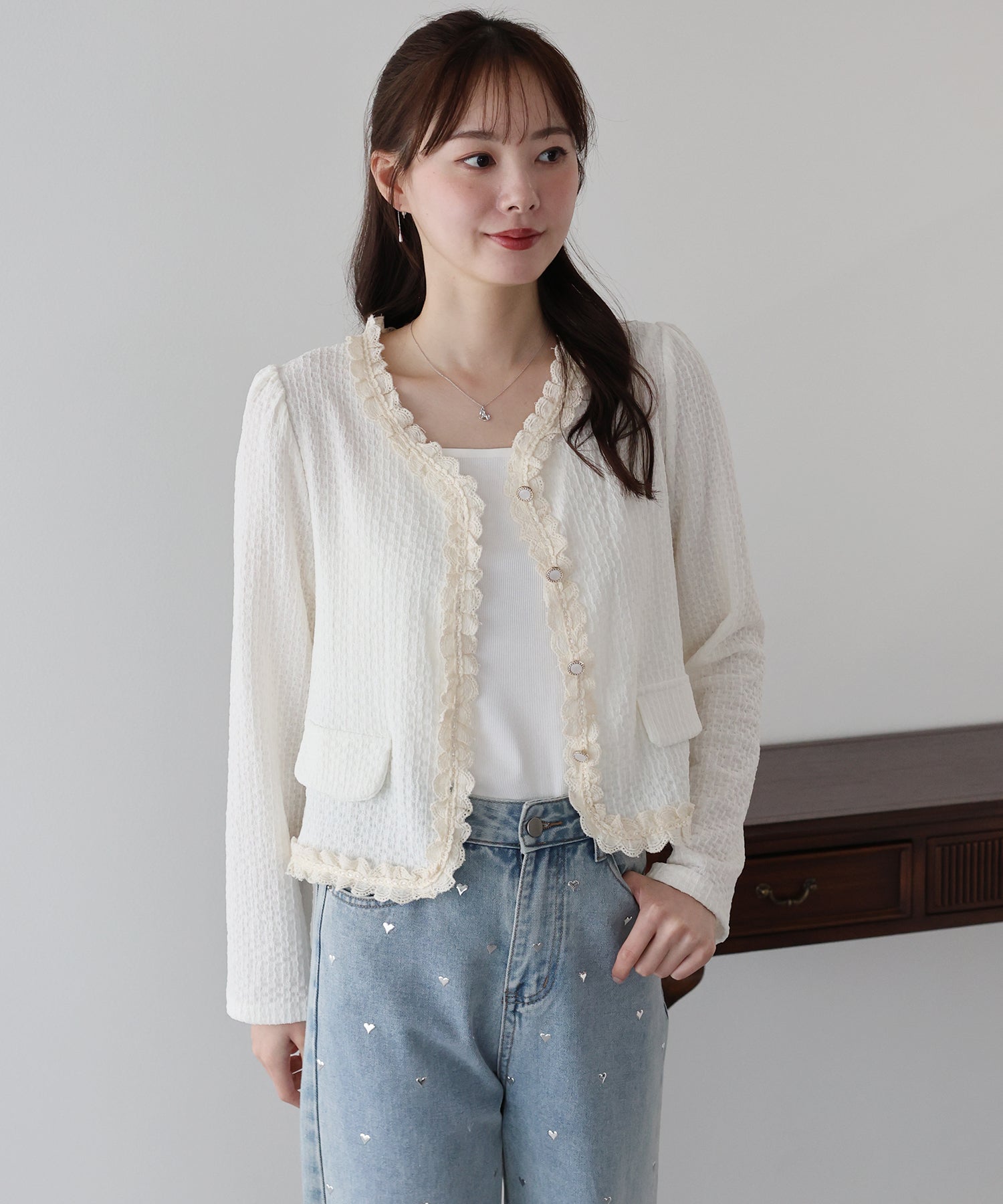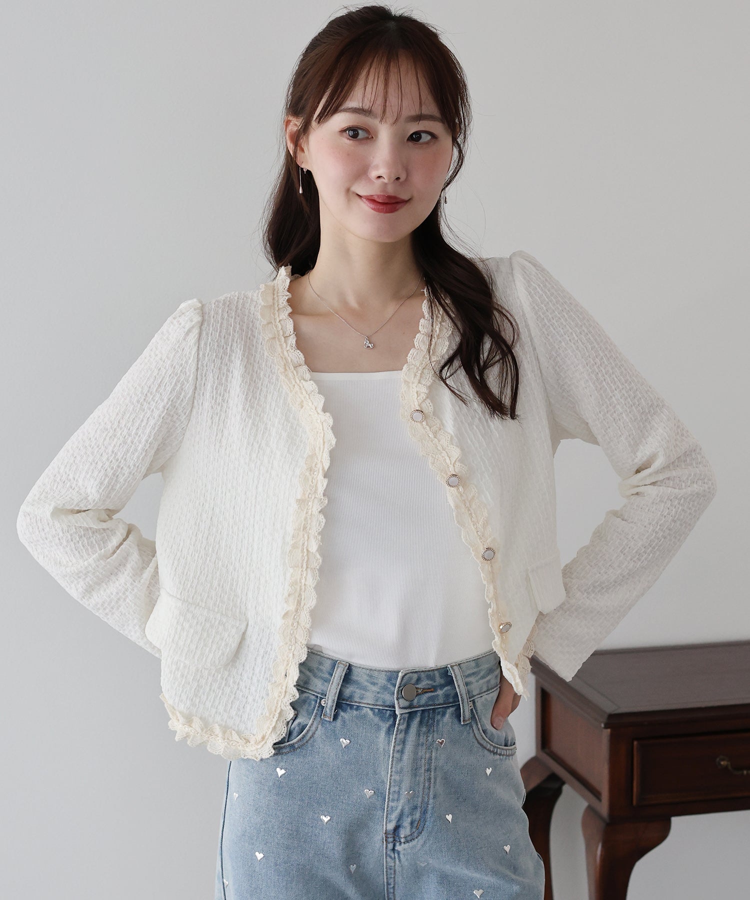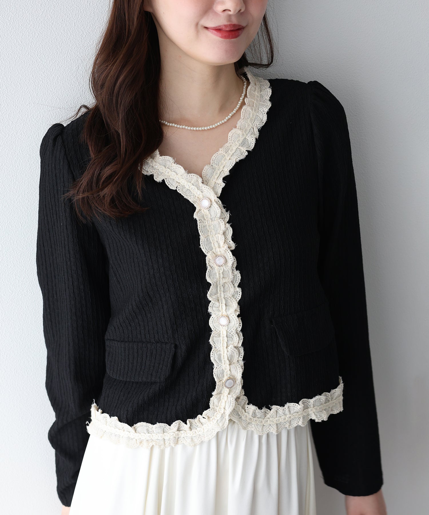 きちんと感とガーリーさを兼ね備えた、上品なショート丈カーディガン。