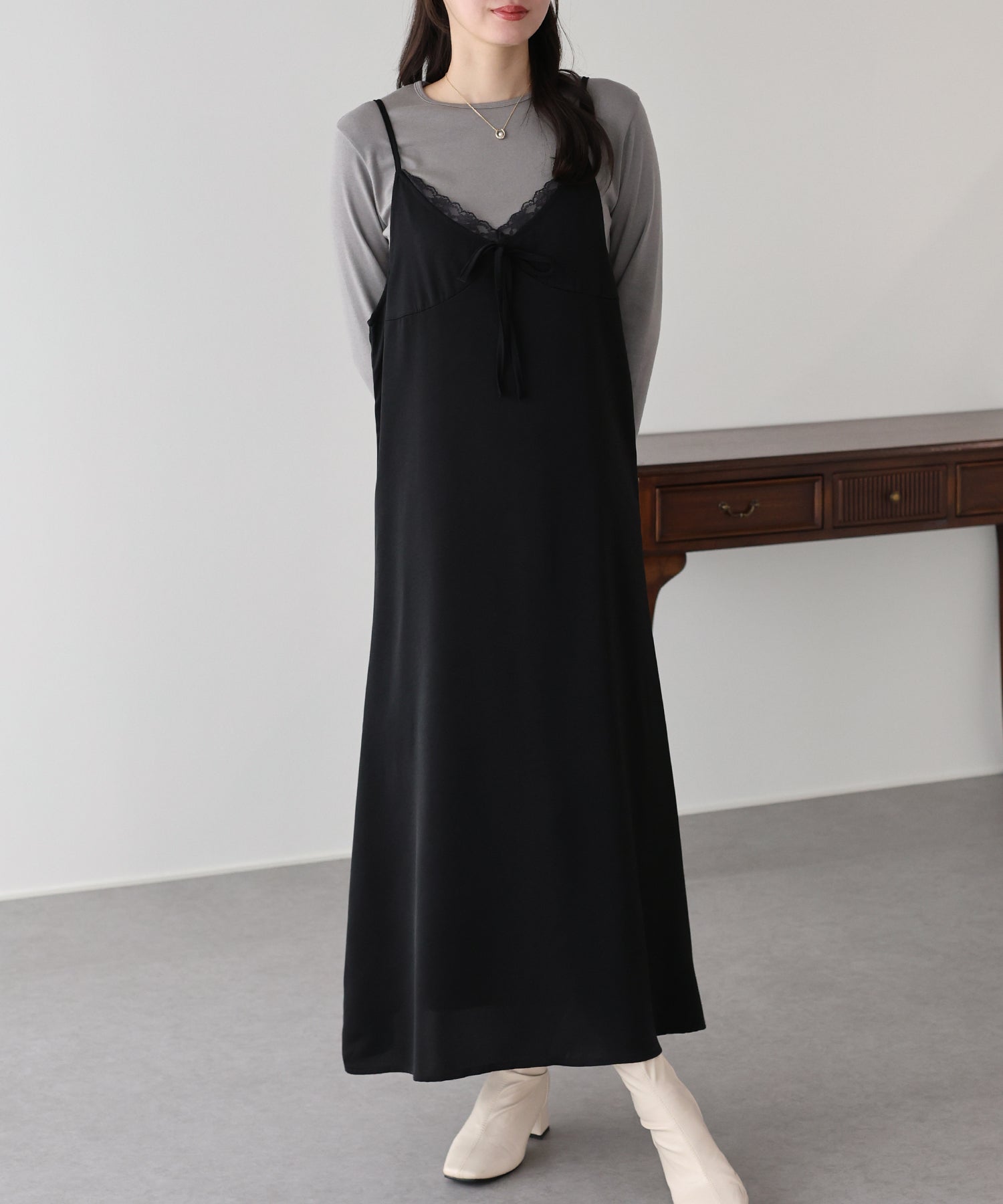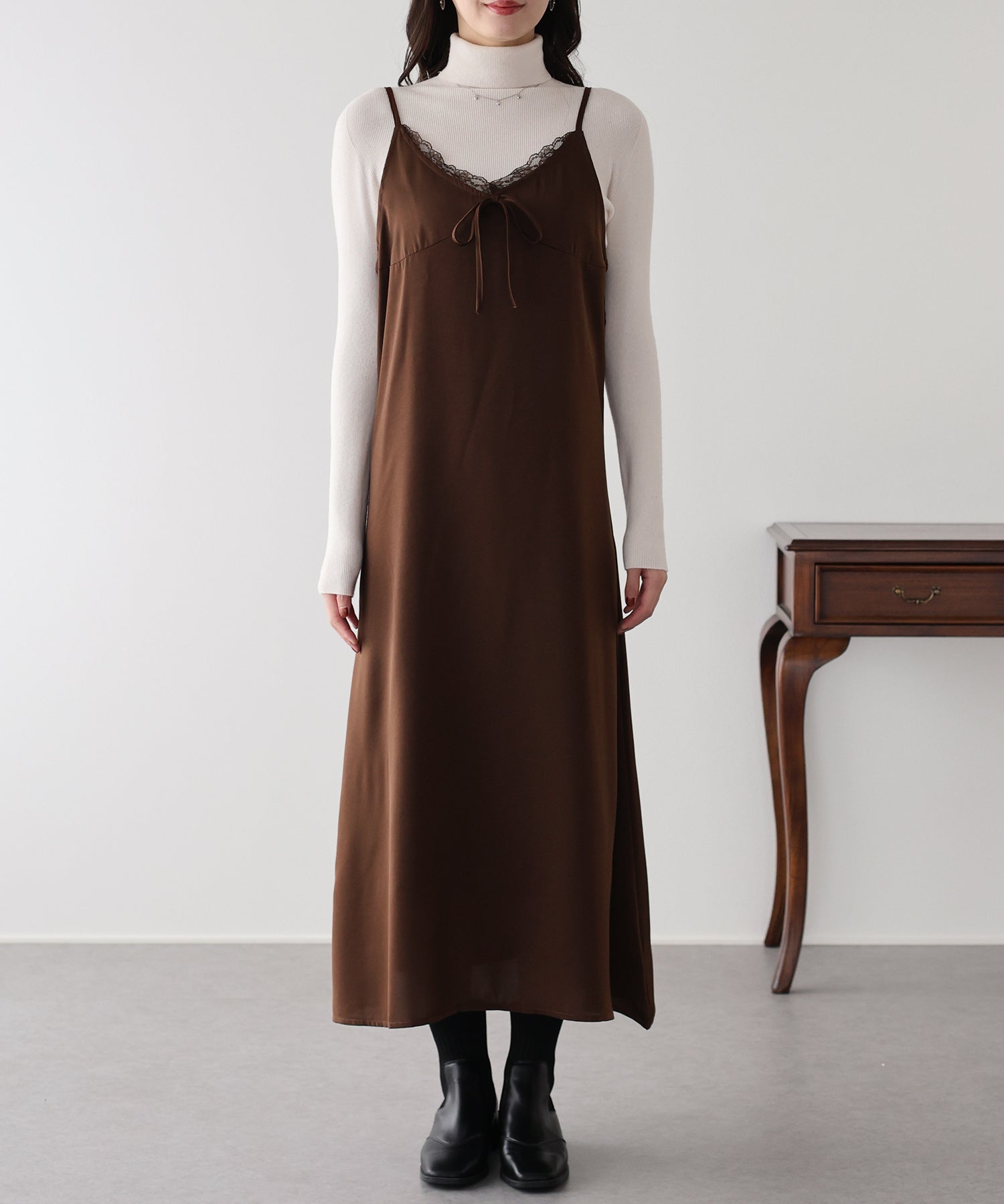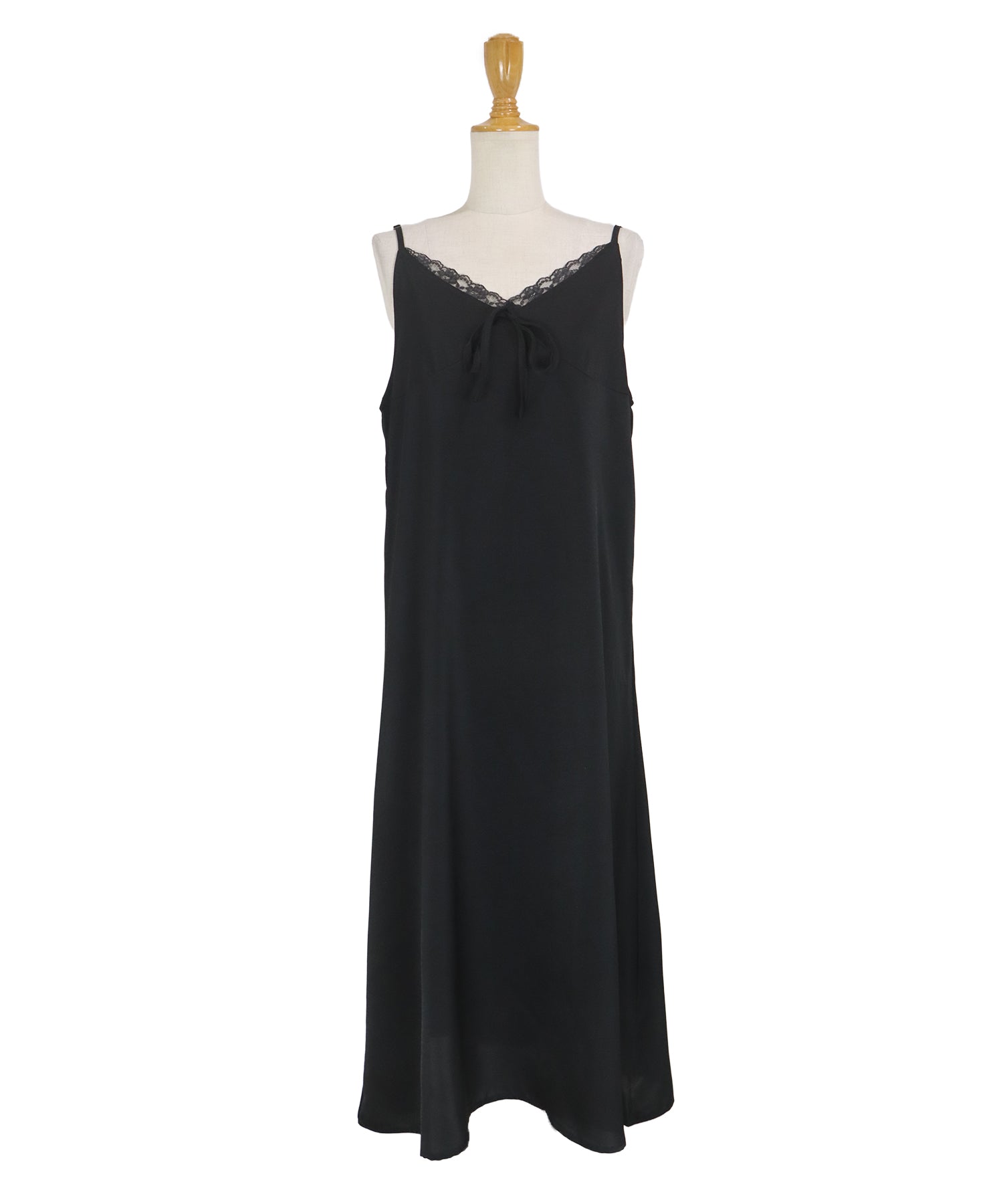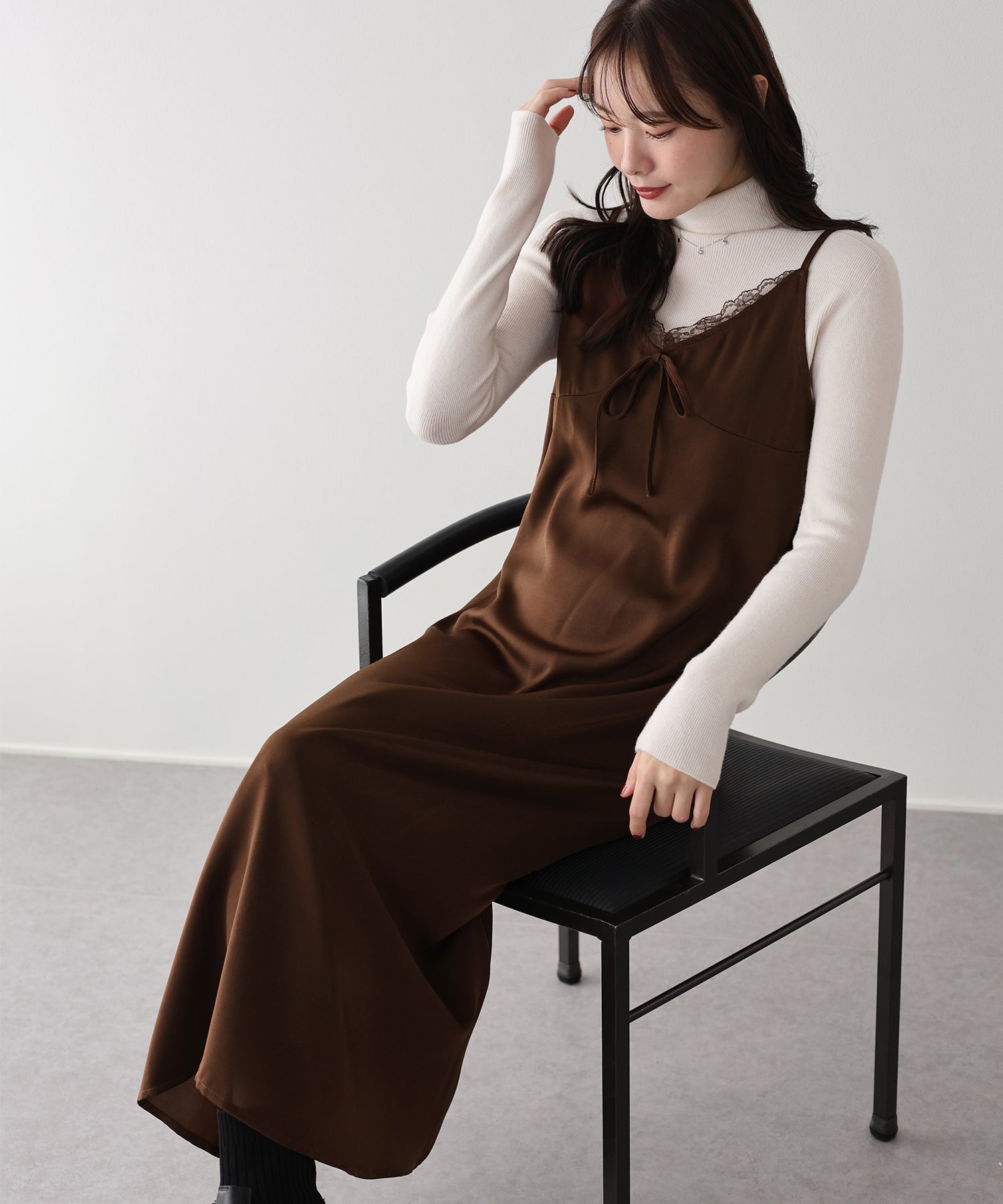 レース×リボンが華やかに映える上品サテンキャミワンピース