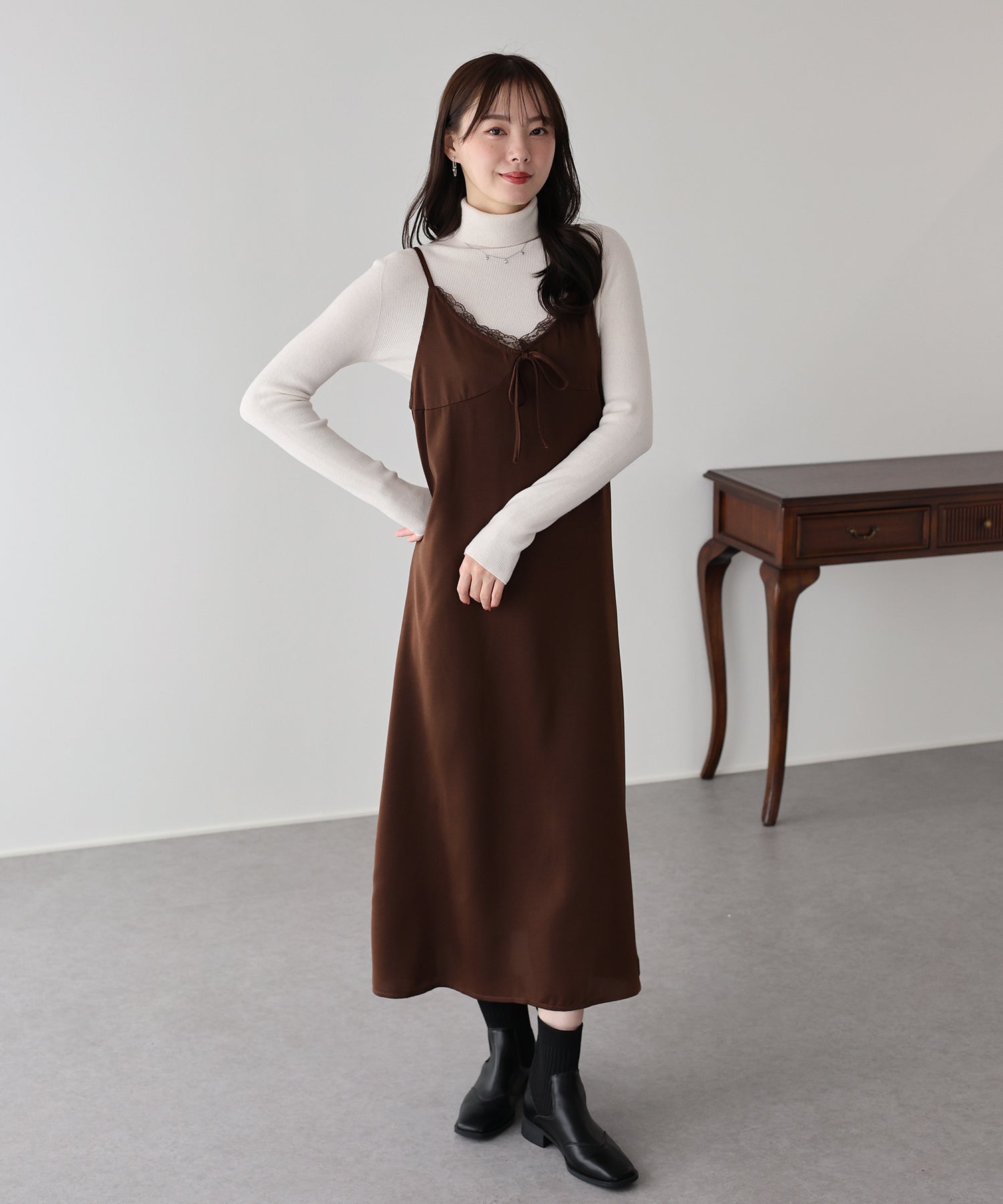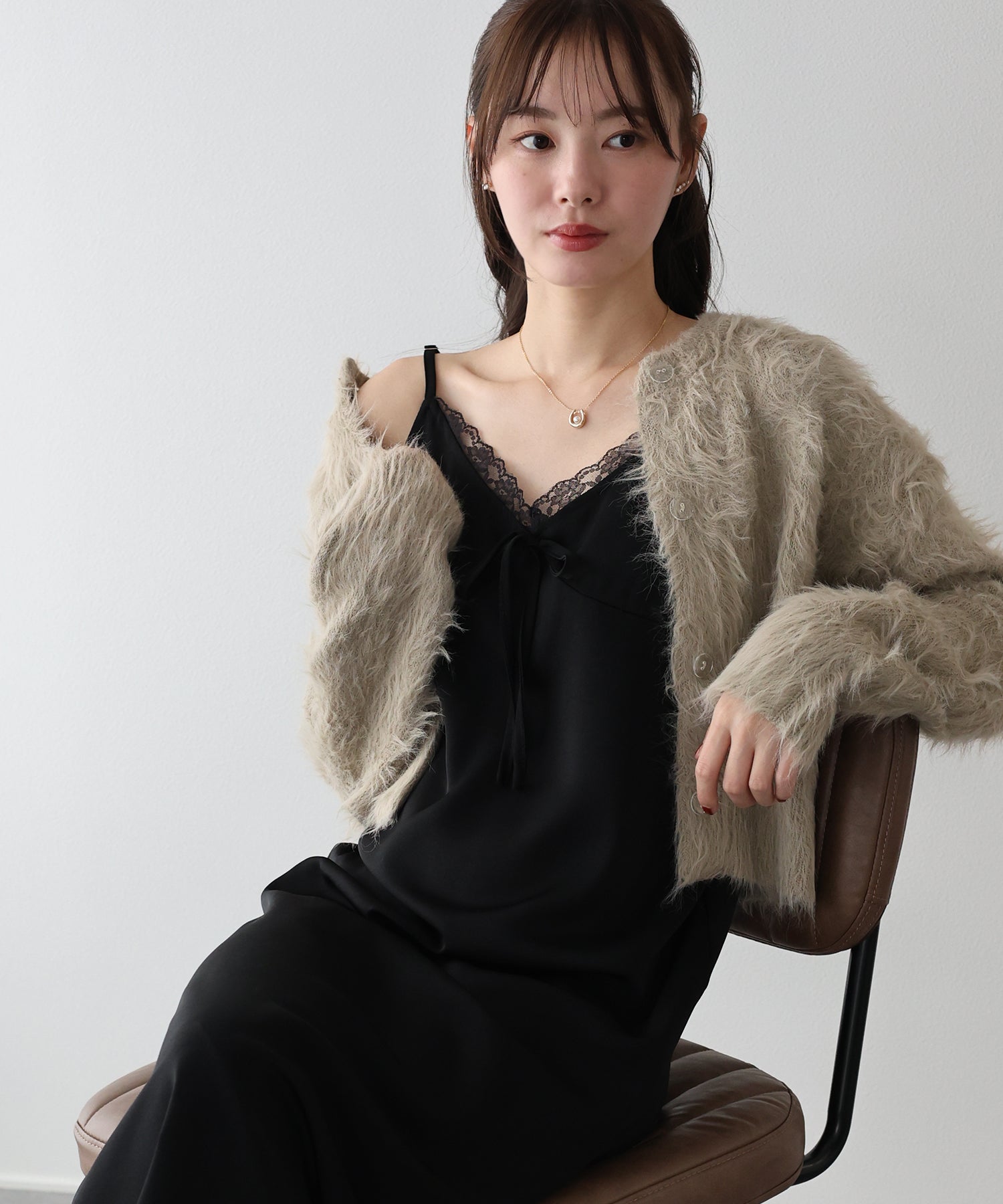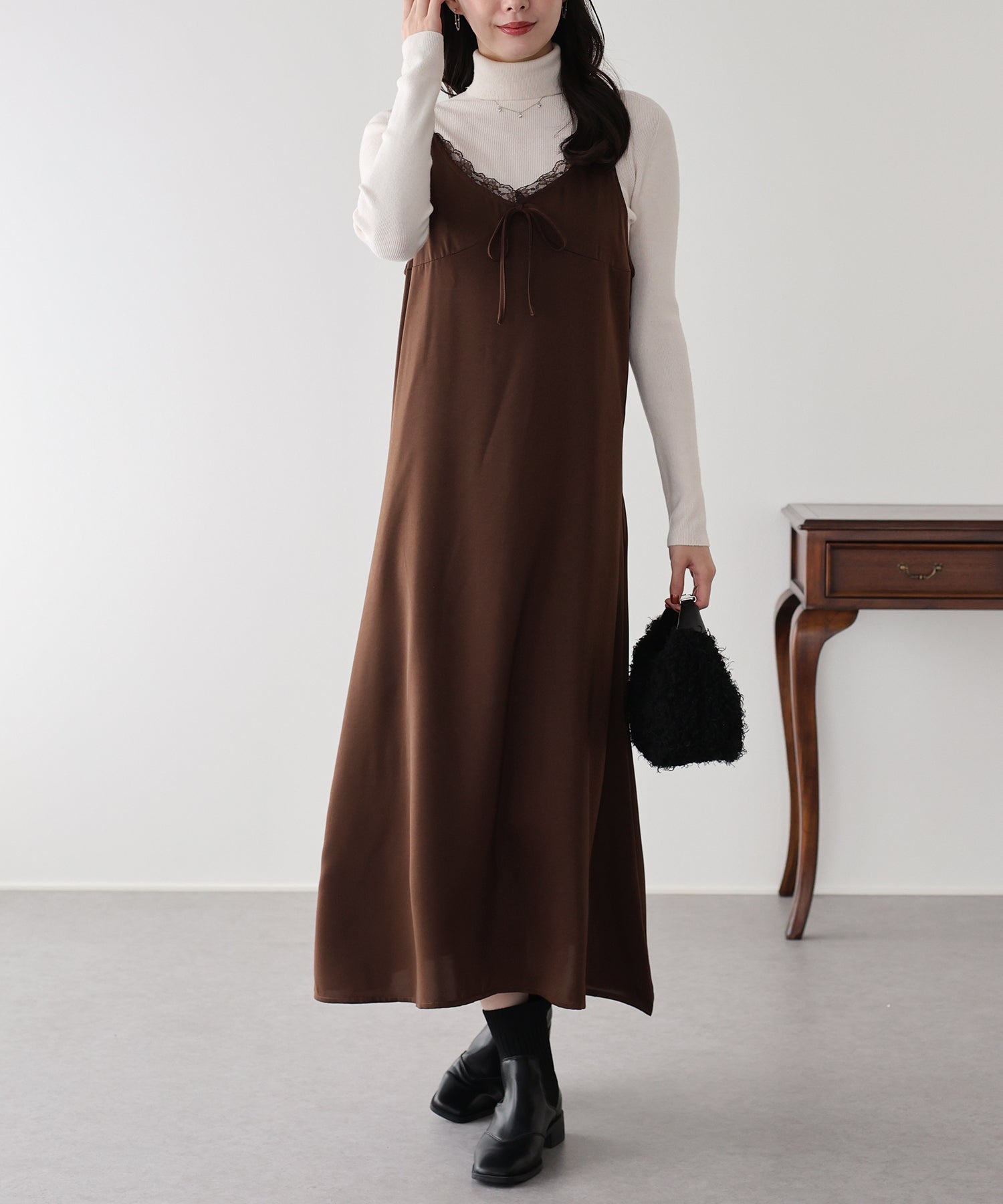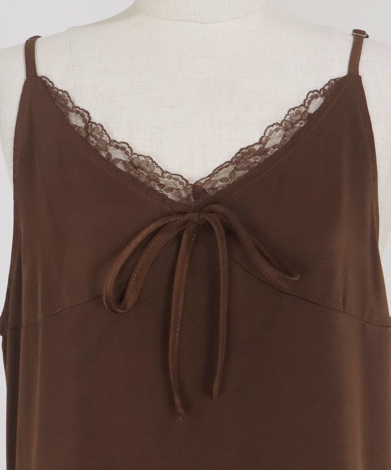 レース×リボンが華やかに映える上品サテンキャミワンピース