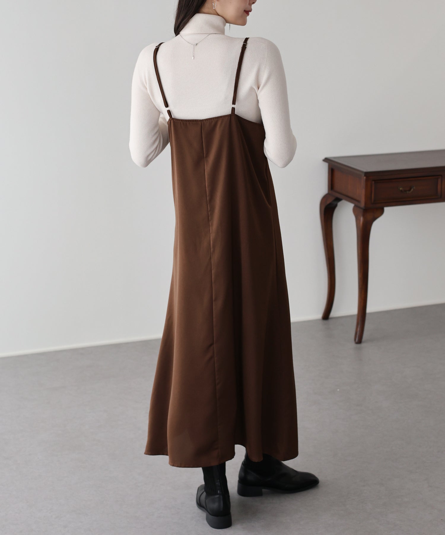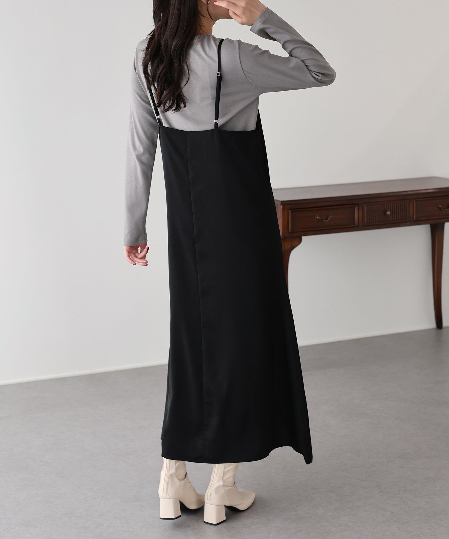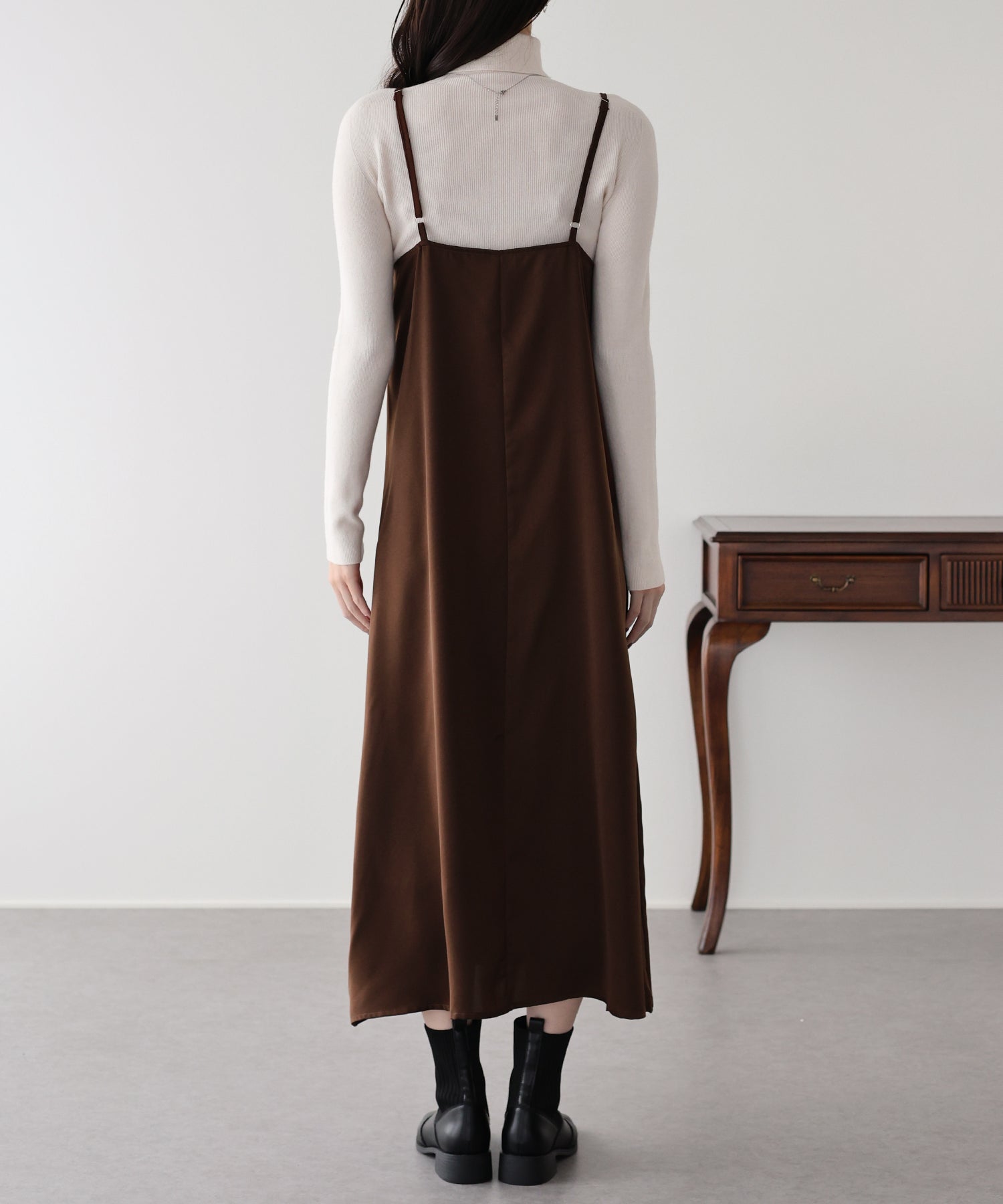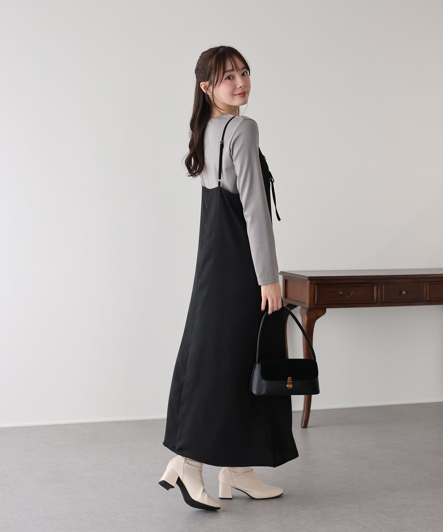 レース×リボンが華やかに映える上品サテンキャミワンピース
