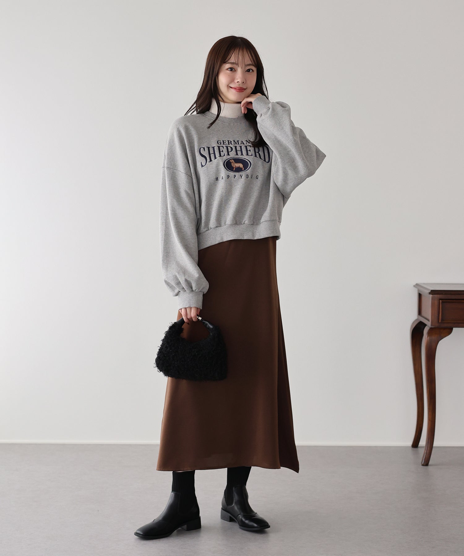 ほんのりとした光沢感のあるサテン生地が、エレガントで女性らしいムードを演出◎