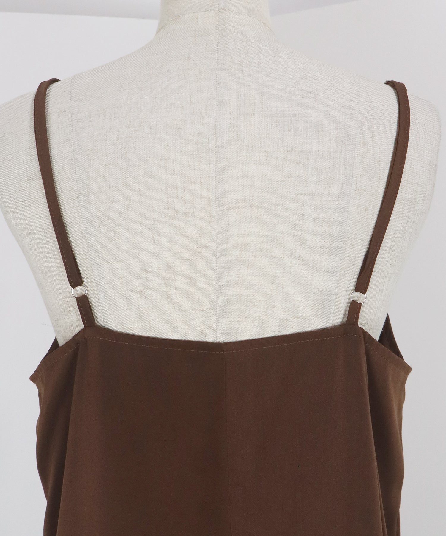 ネックラインにあしらわれた繊細なレースが、顔まわりを華やかに引き立てるキャミワンピース。