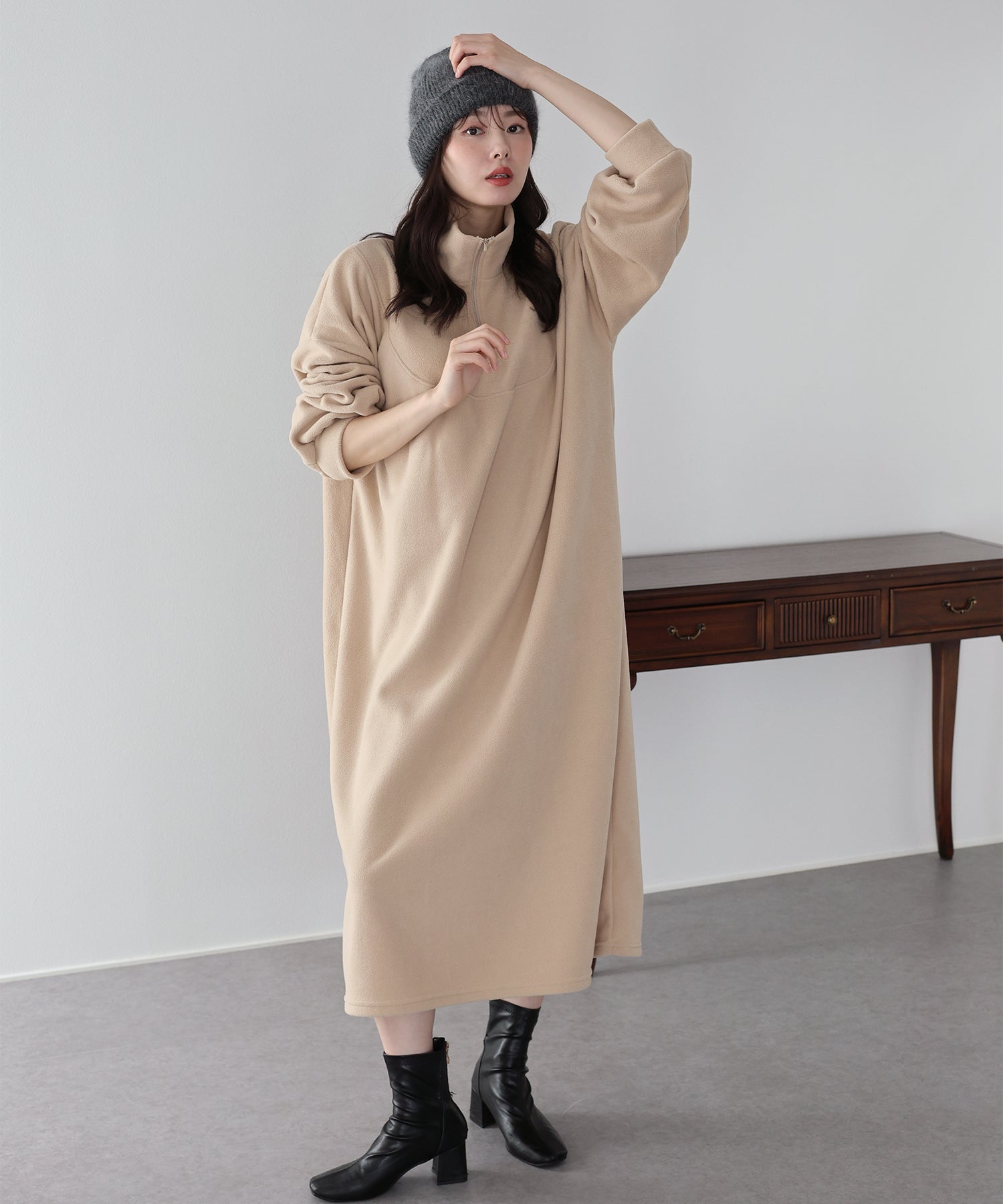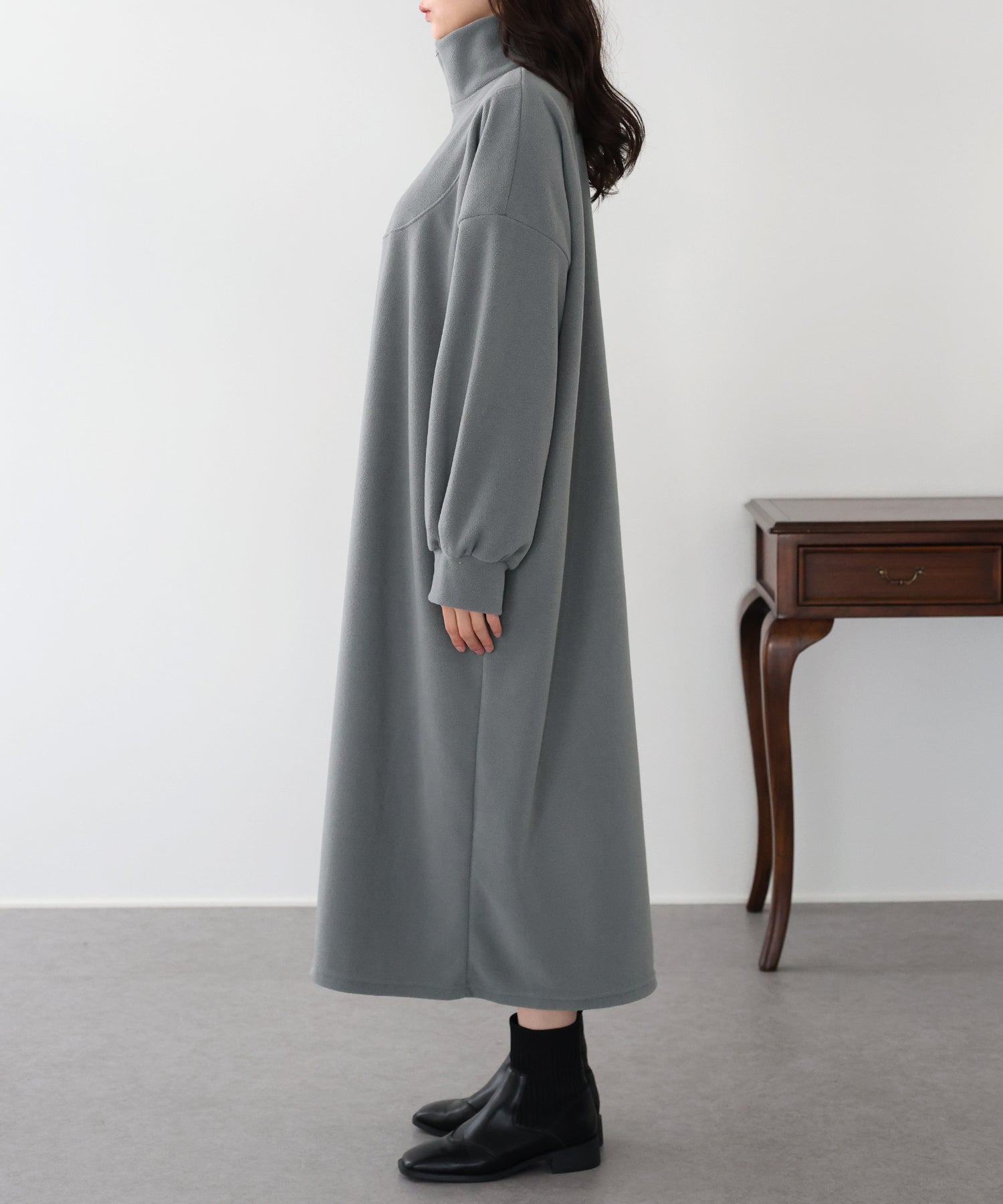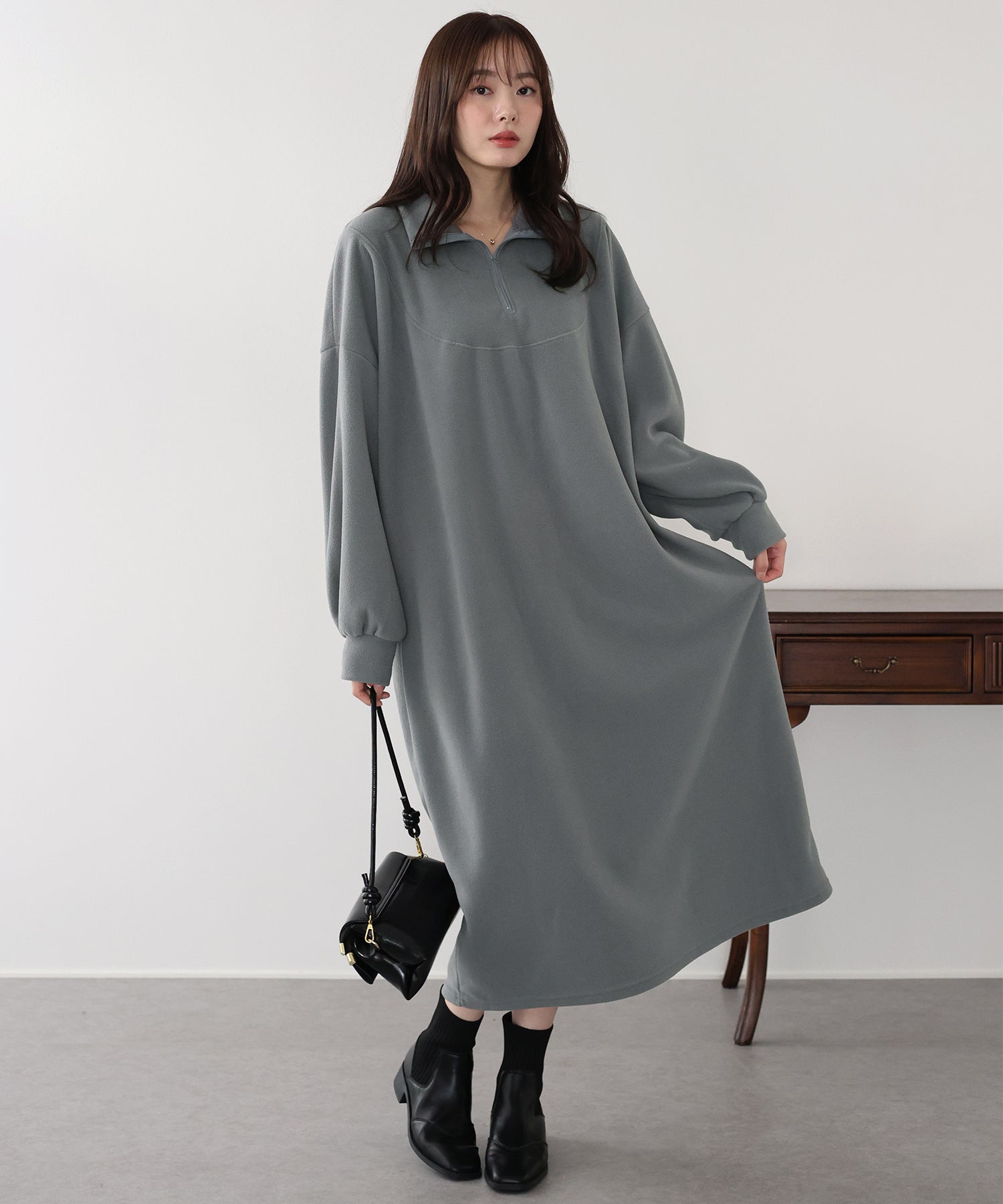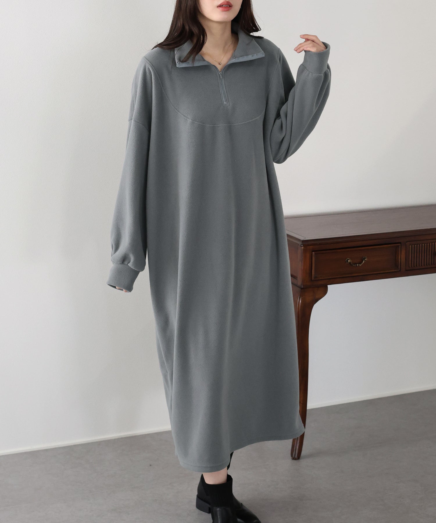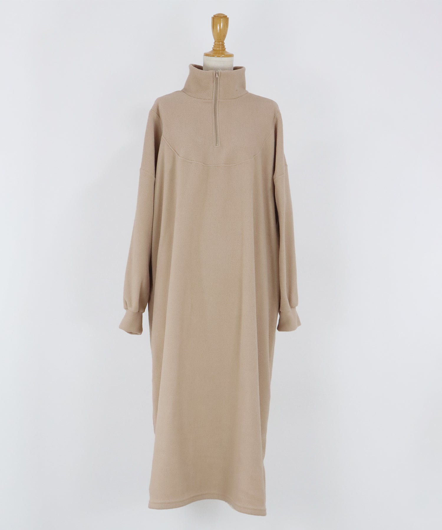 シンプルながらトレンド感のあるハーフジップ仕様がアクセントのフリースワンピース。