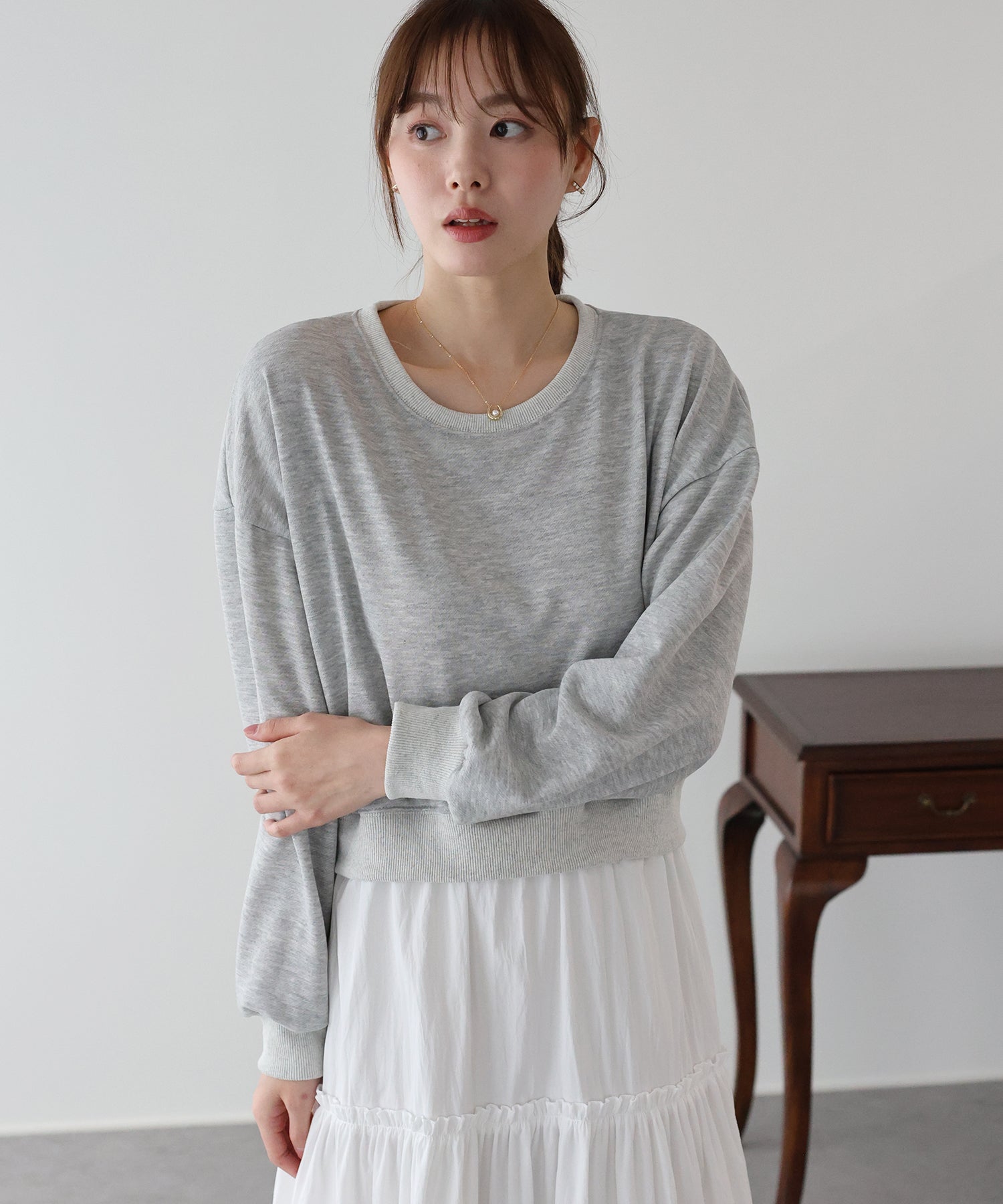 上下の組み合わせに悩まず、これ一枚で旬のレイヤード風スタイルが完成します。