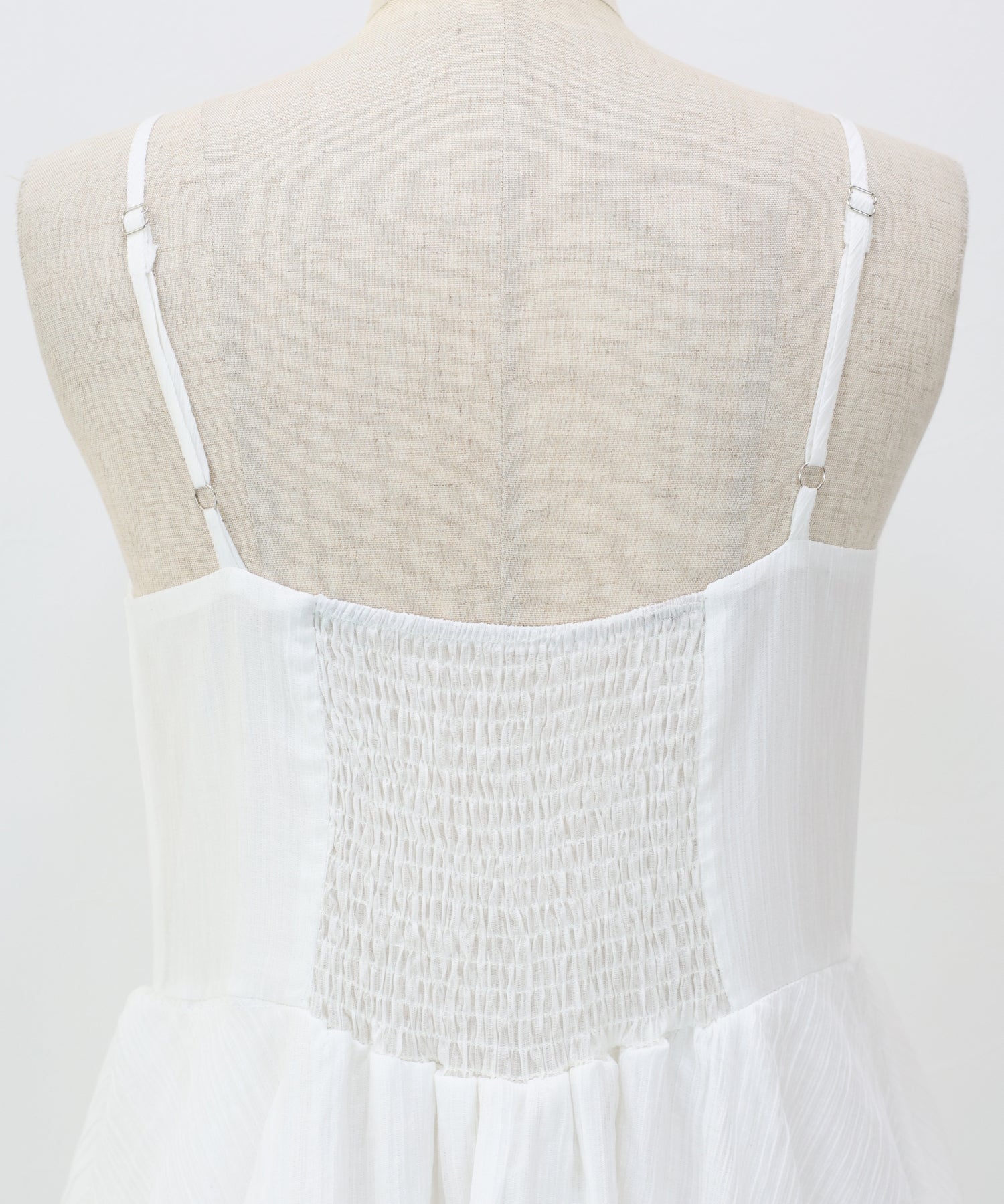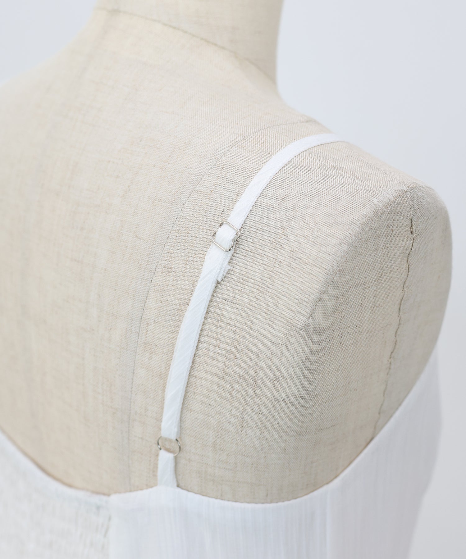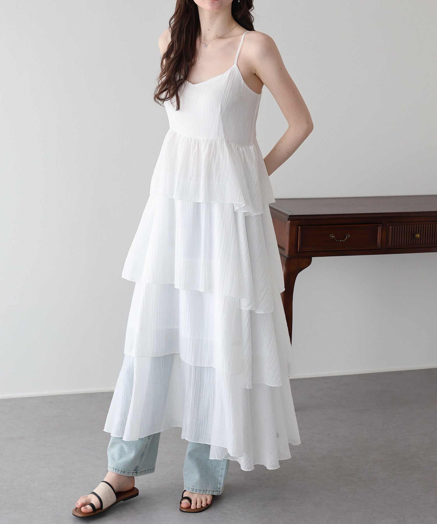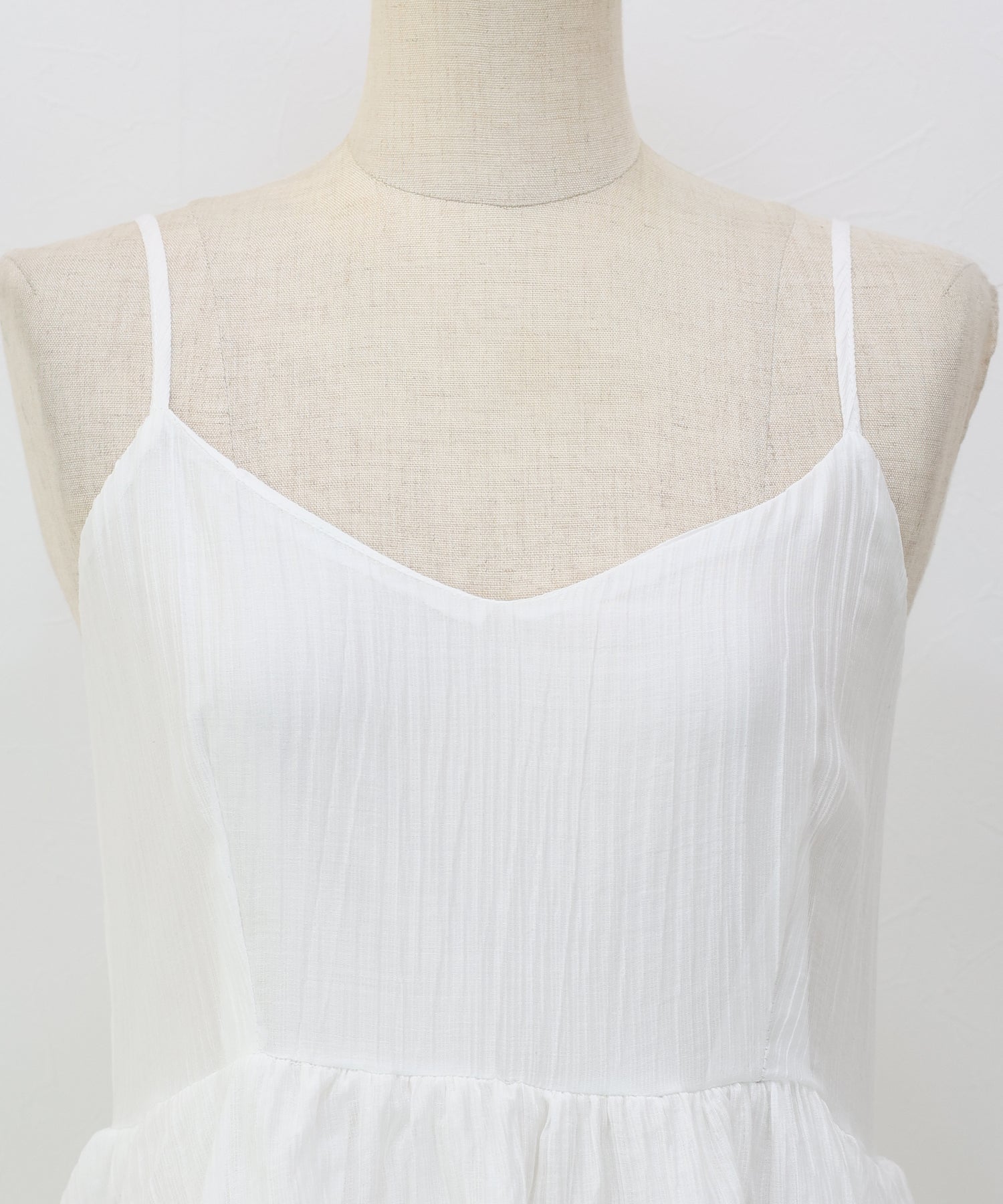涼しげなシアー生地に、華奢な肩紐でキュートな抜け感を演出してくれるキャミワンピース。