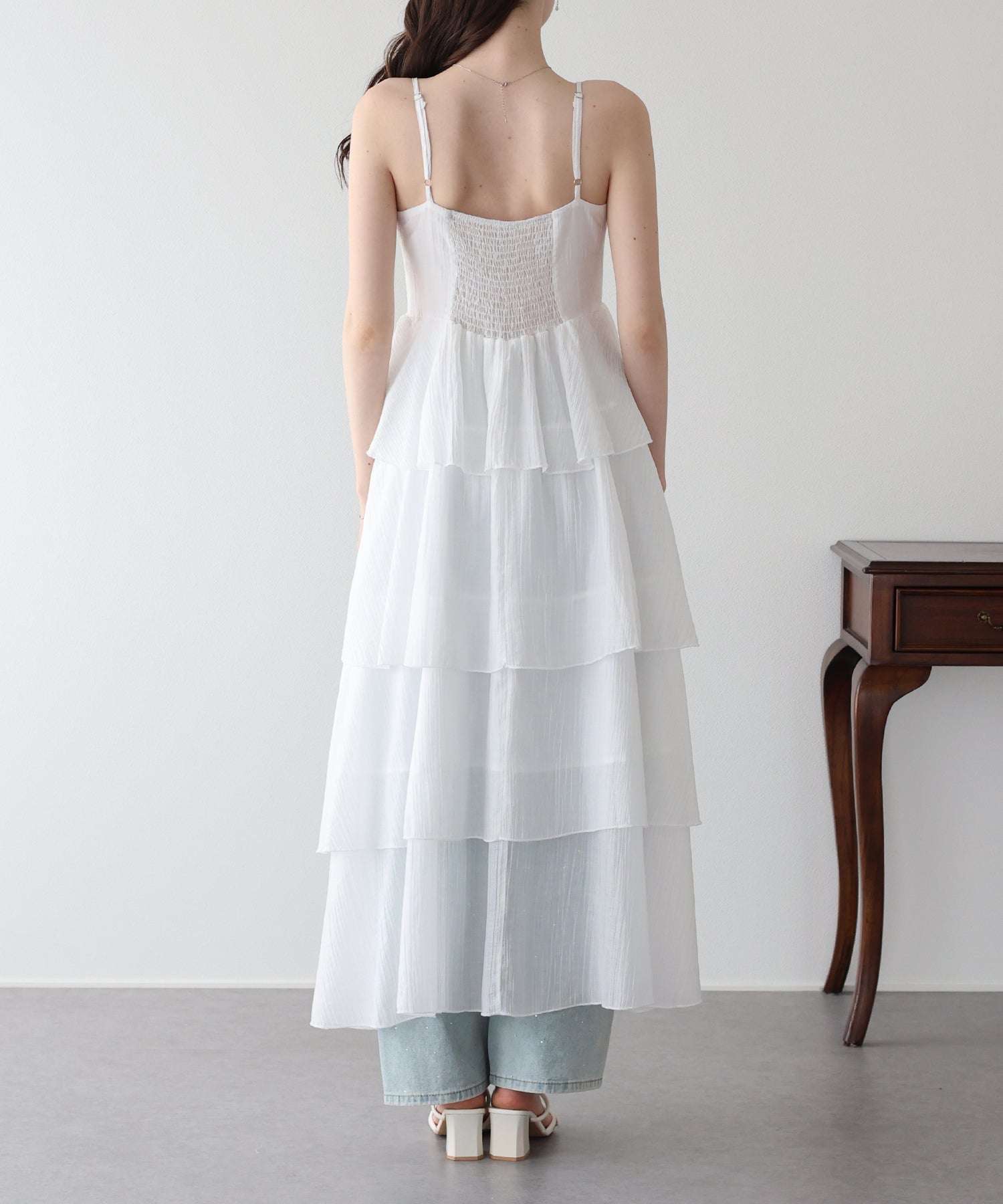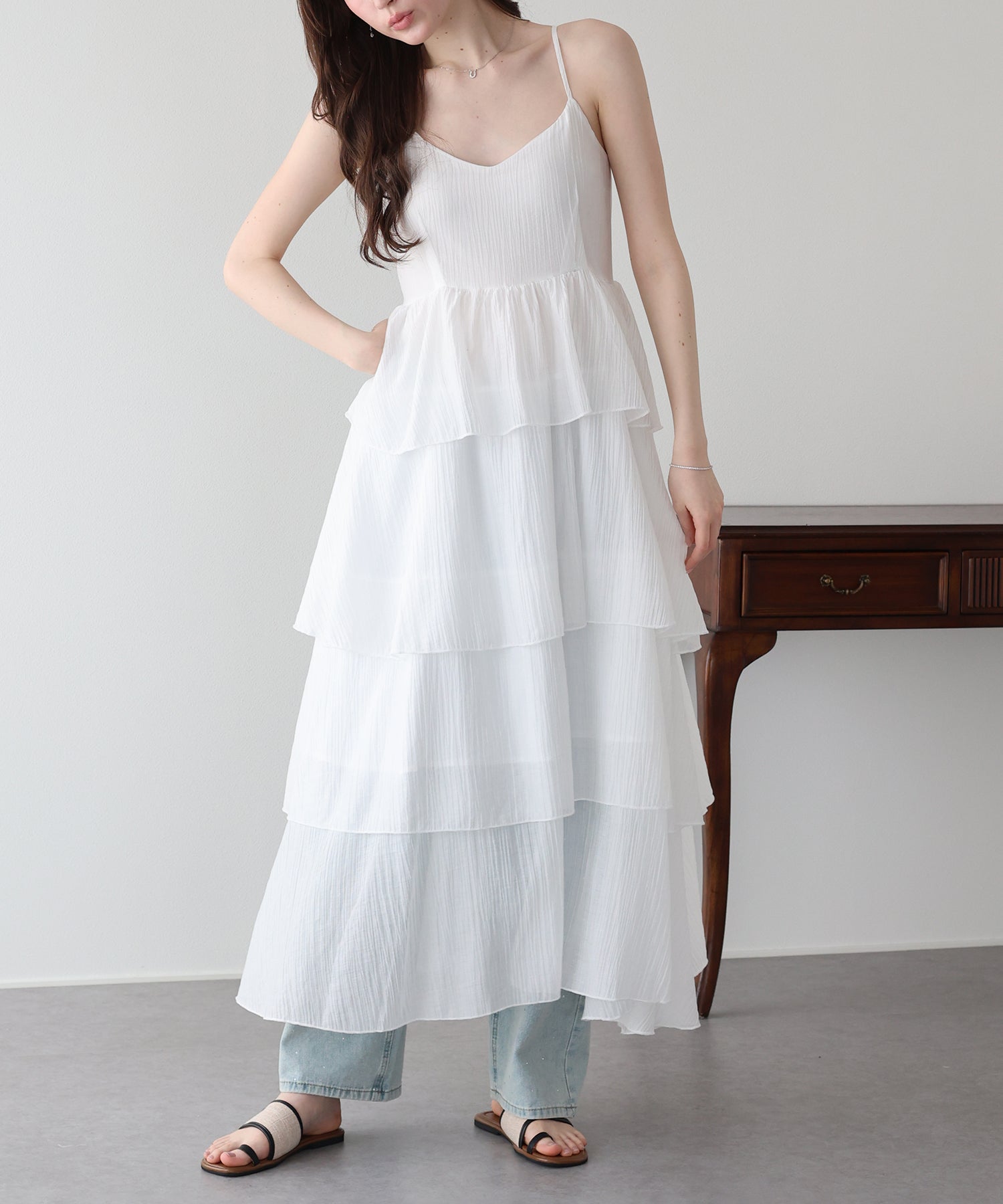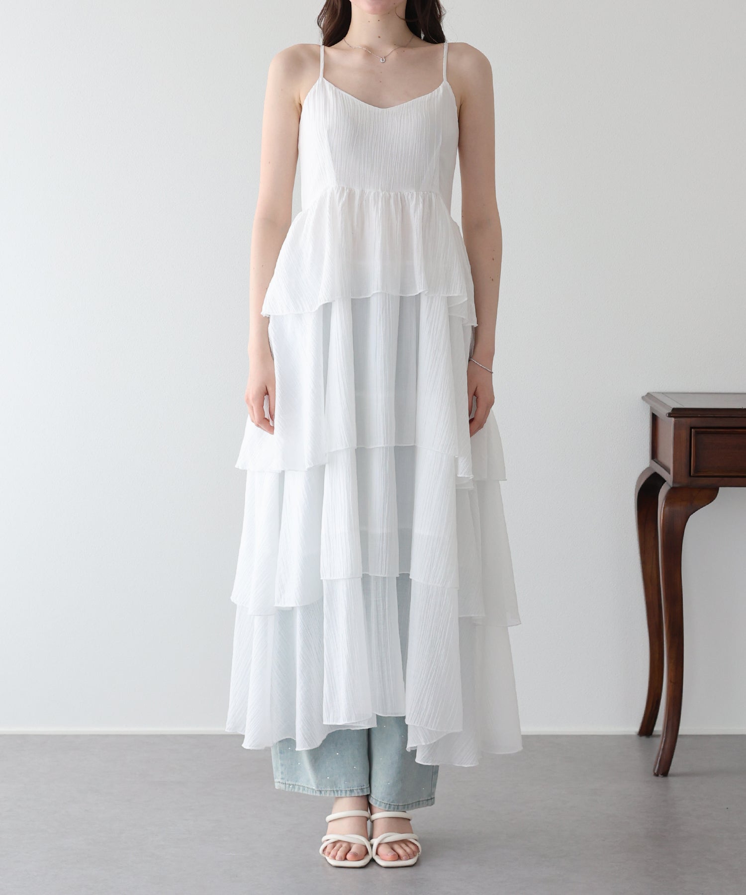 涼しげなシアー生地に、華奢な肩紐でキュートな抜け感を演出してくれるキャミワンピース。