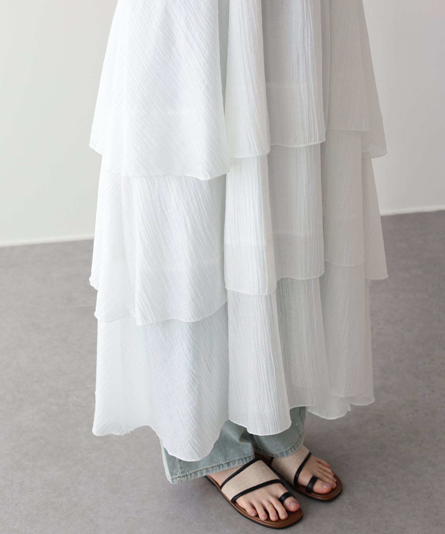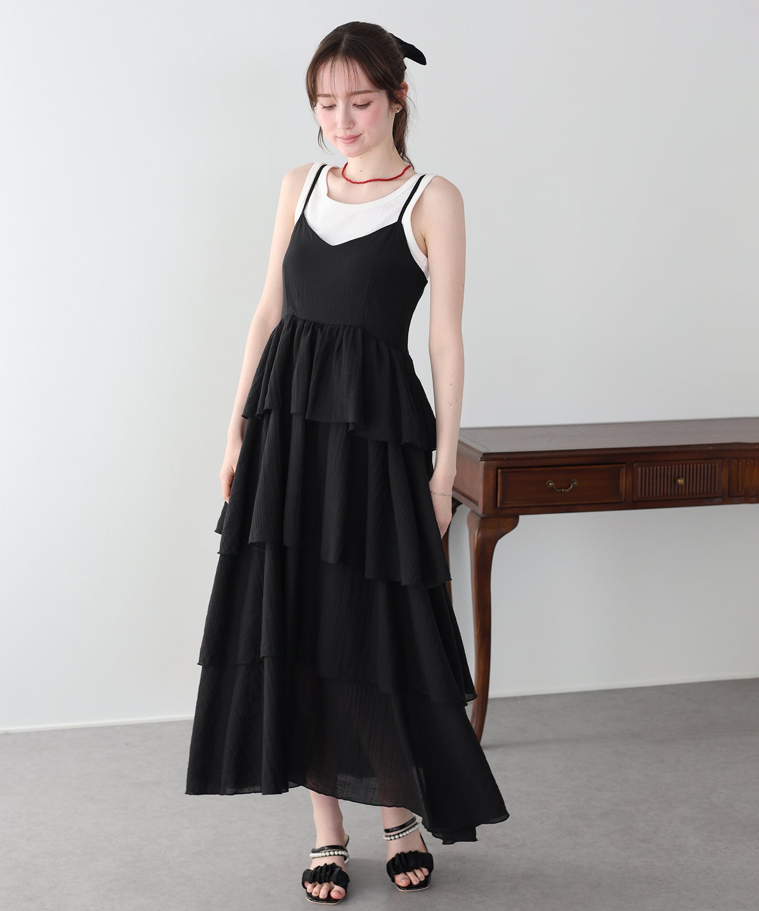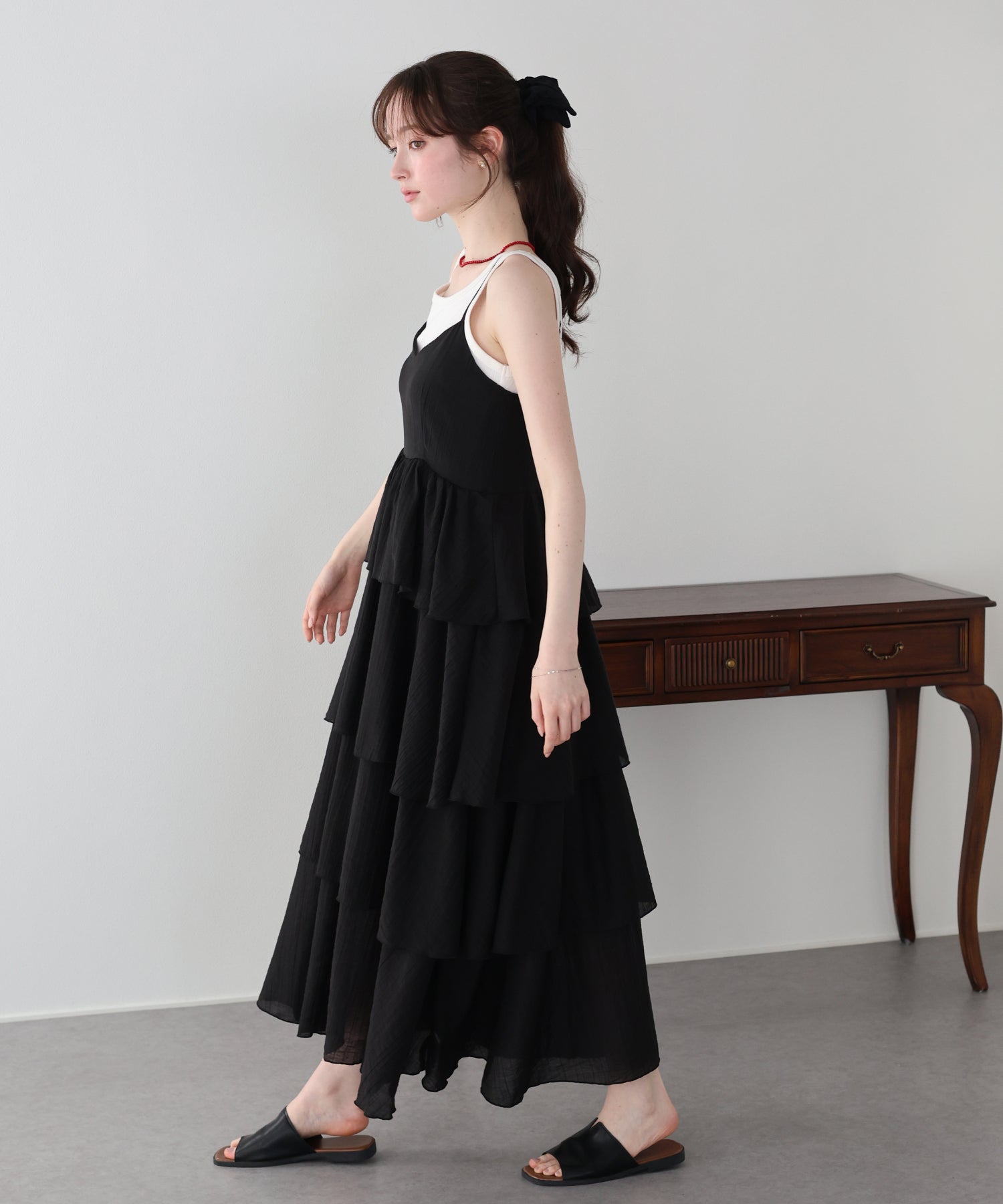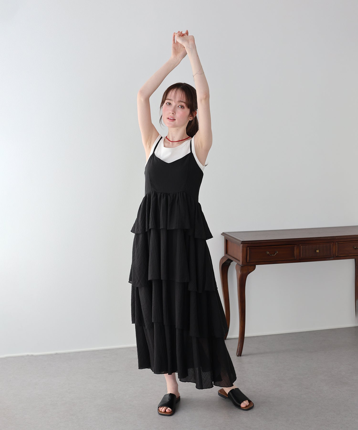涼しげなシアー生地に、華奢な肩紐でキュートな抜け感を演出してくれるキャミワンピース。