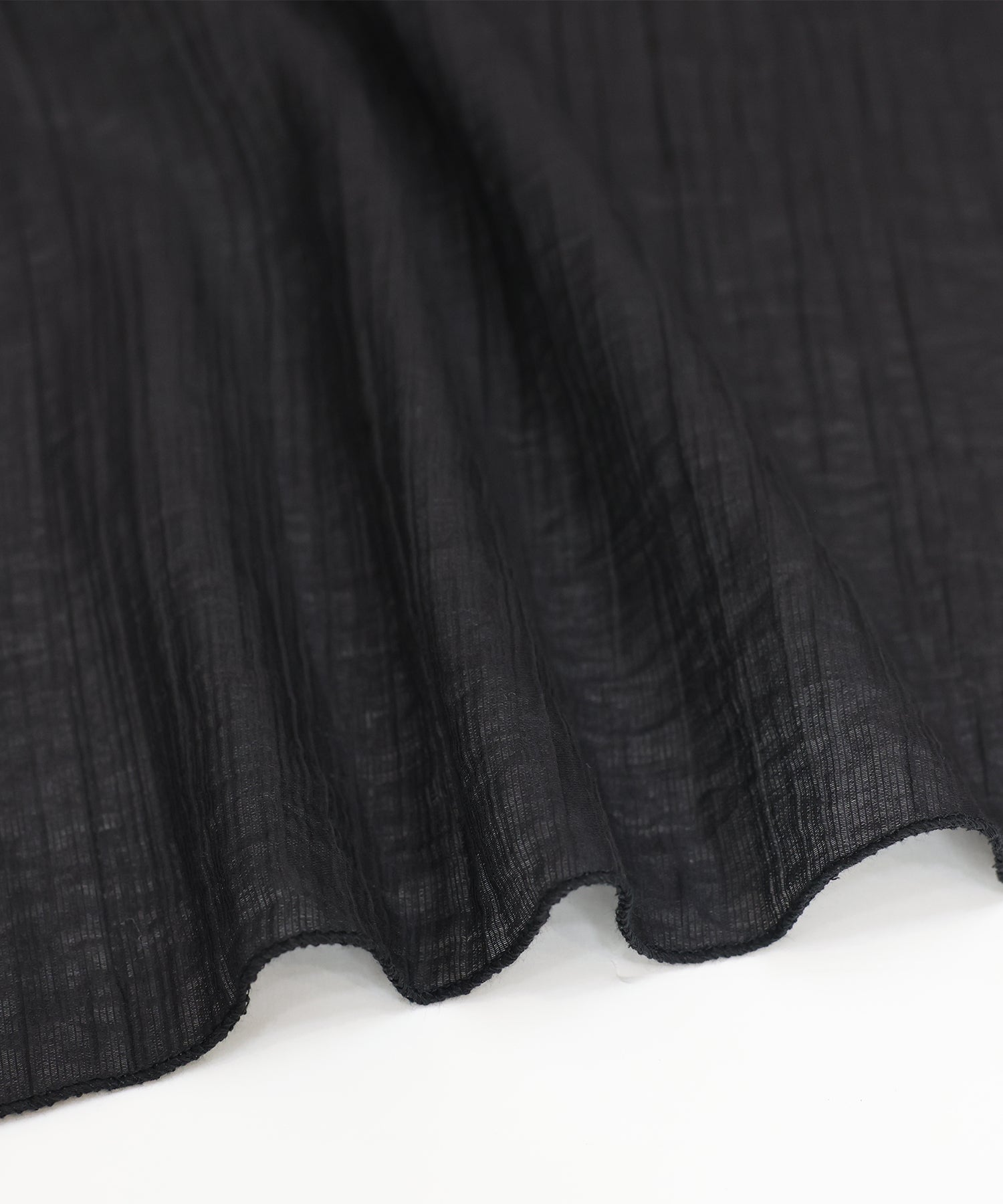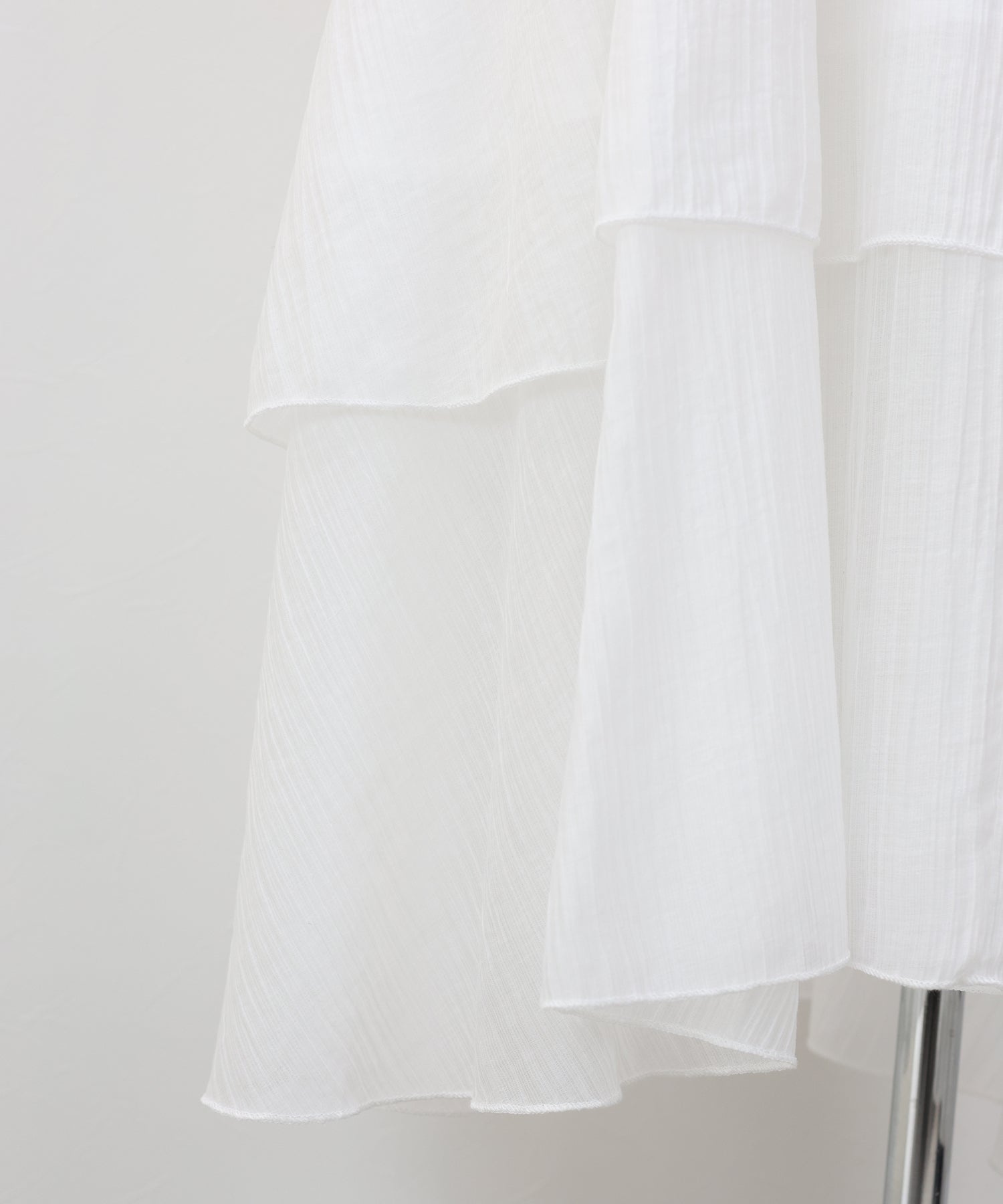 やや透け感のある軽やかな素材を使用することで、ボリュームのあるデザインながらも重たくならず、女性らしい柔らかな印象を引き立てます。
