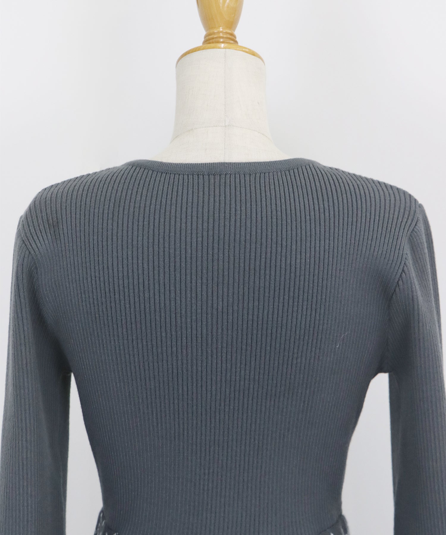 サイドリボンペプラムシャギーベスト&ニットワンピース セット