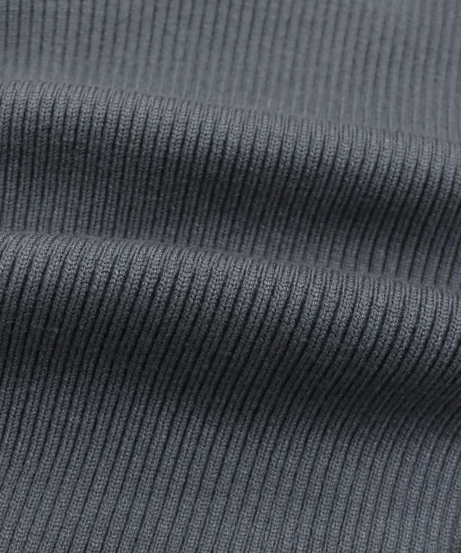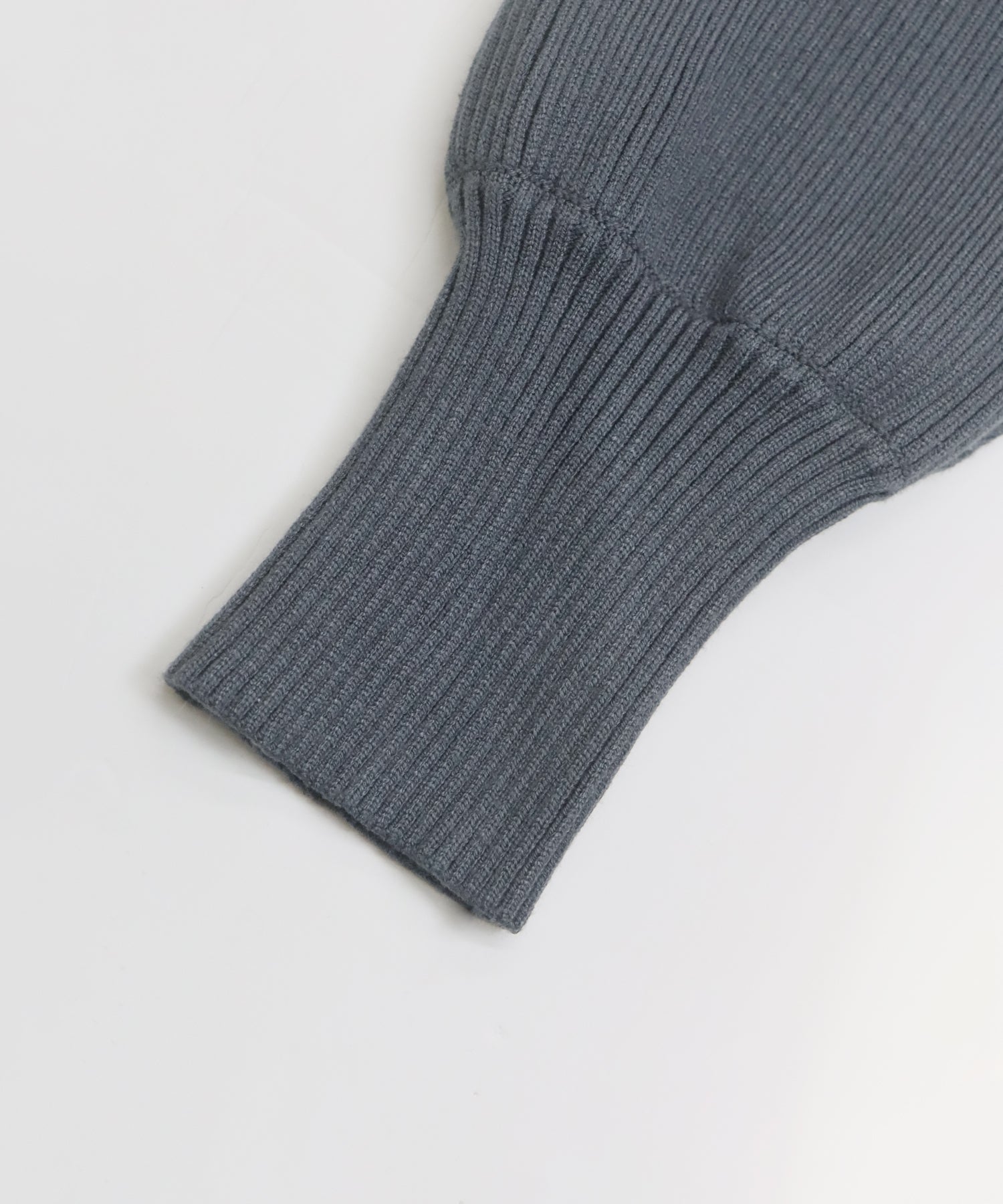 上身頃はリブニット素材のハイネック&ボリューム袖で締め付け過ぎないちょうどいいサイズ感で快適な着心地。