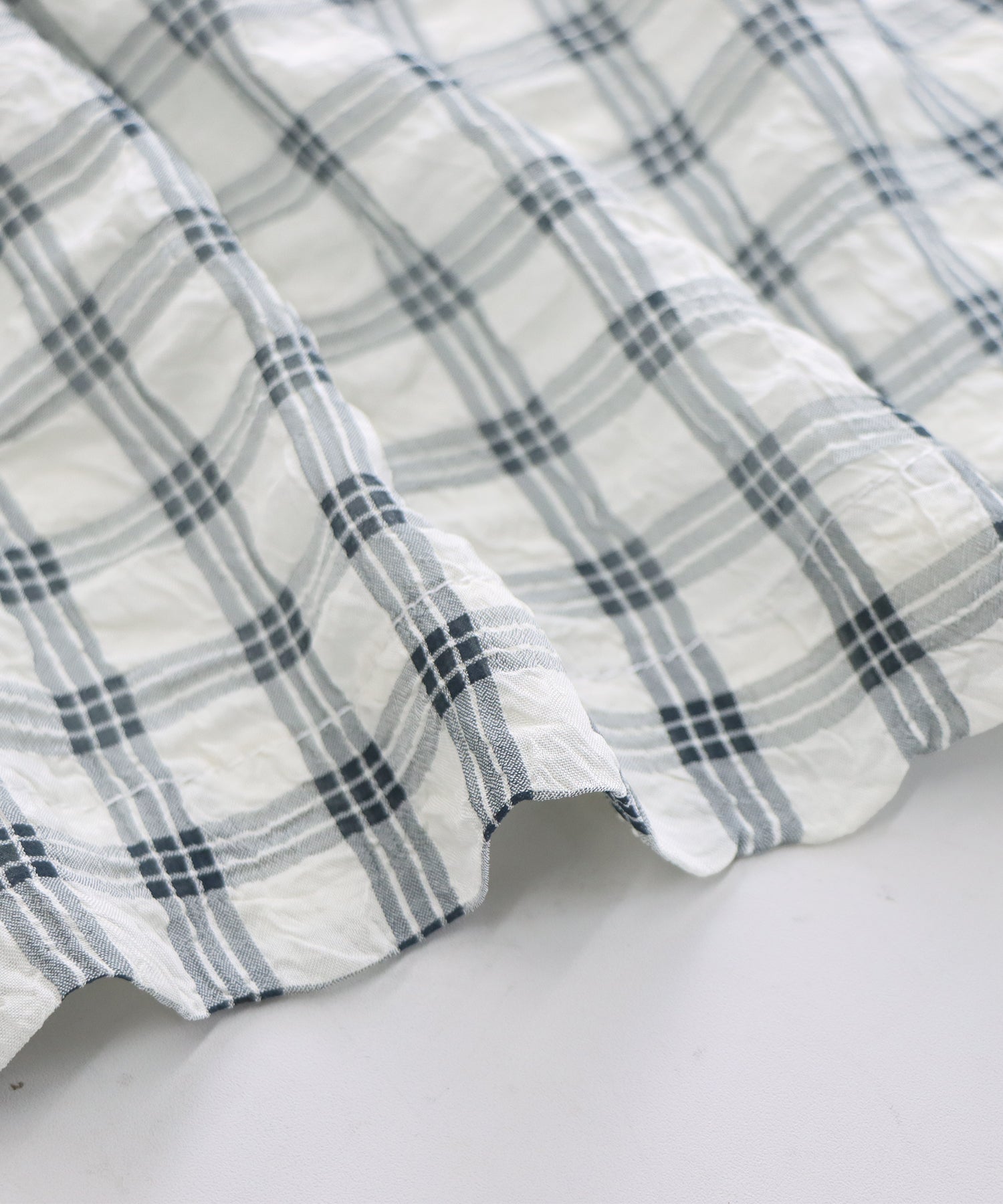 凹凸感のあるシアーチェック生地 厚さ:普通 透け感:なし 伸縮性:ややあり |