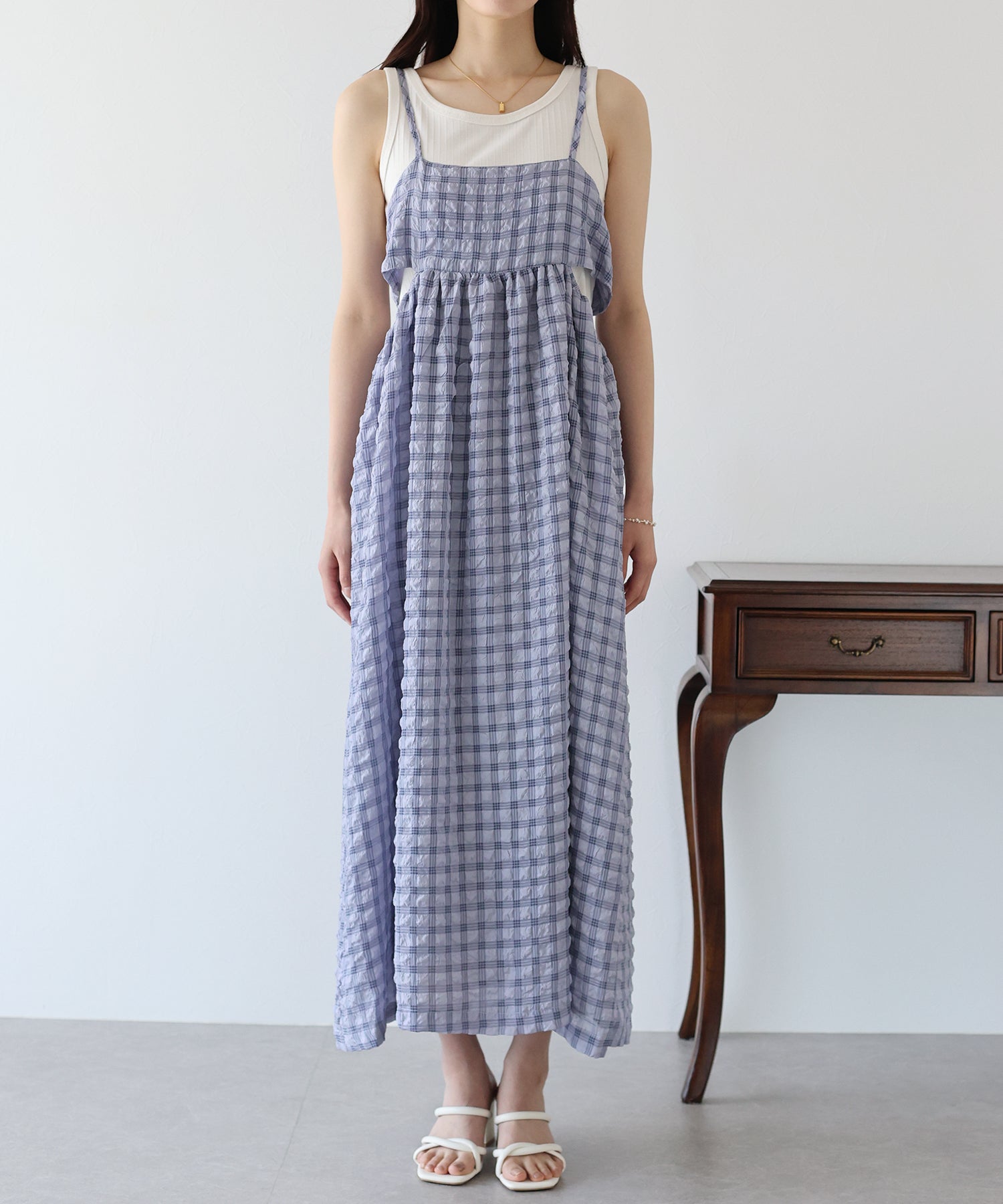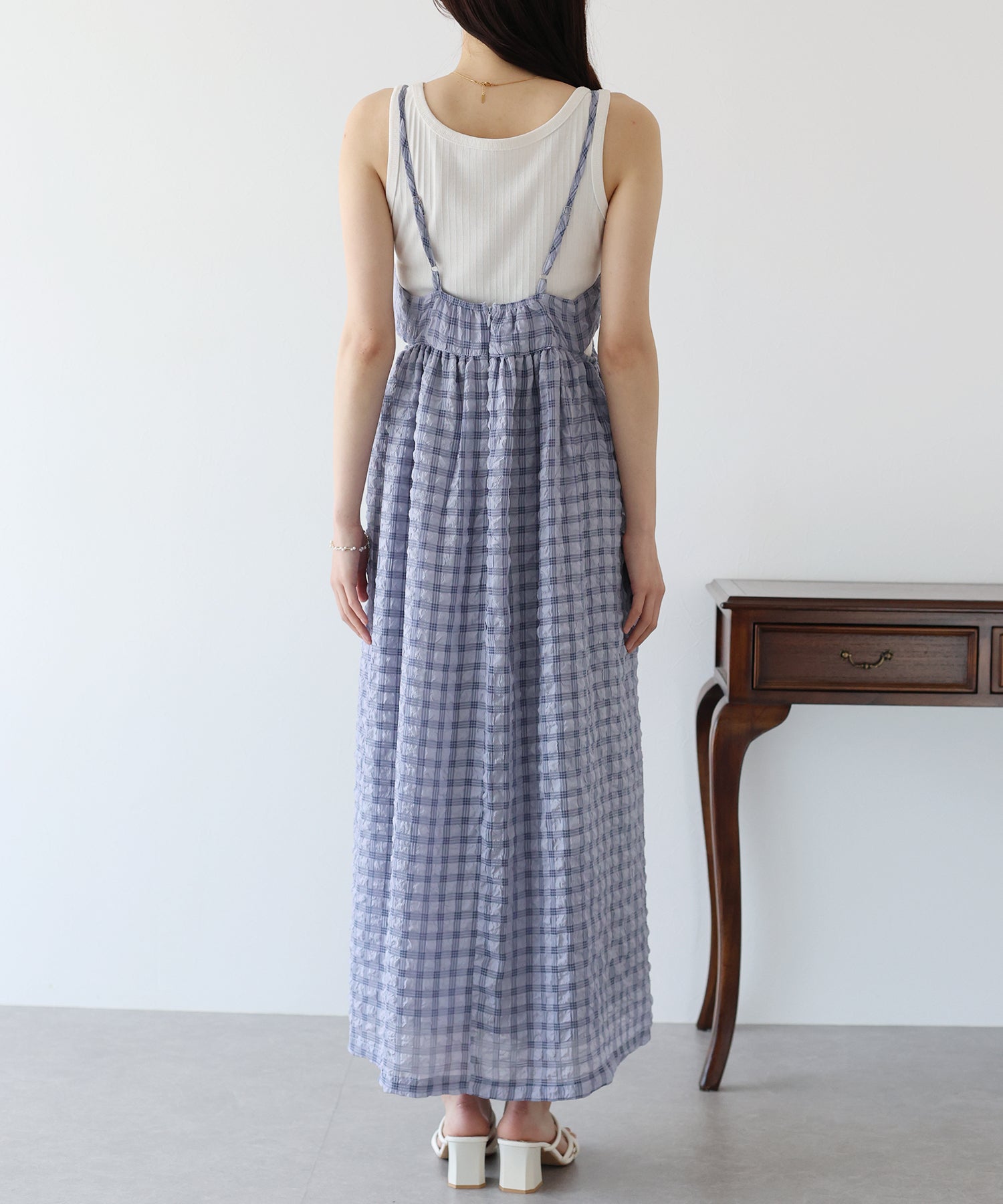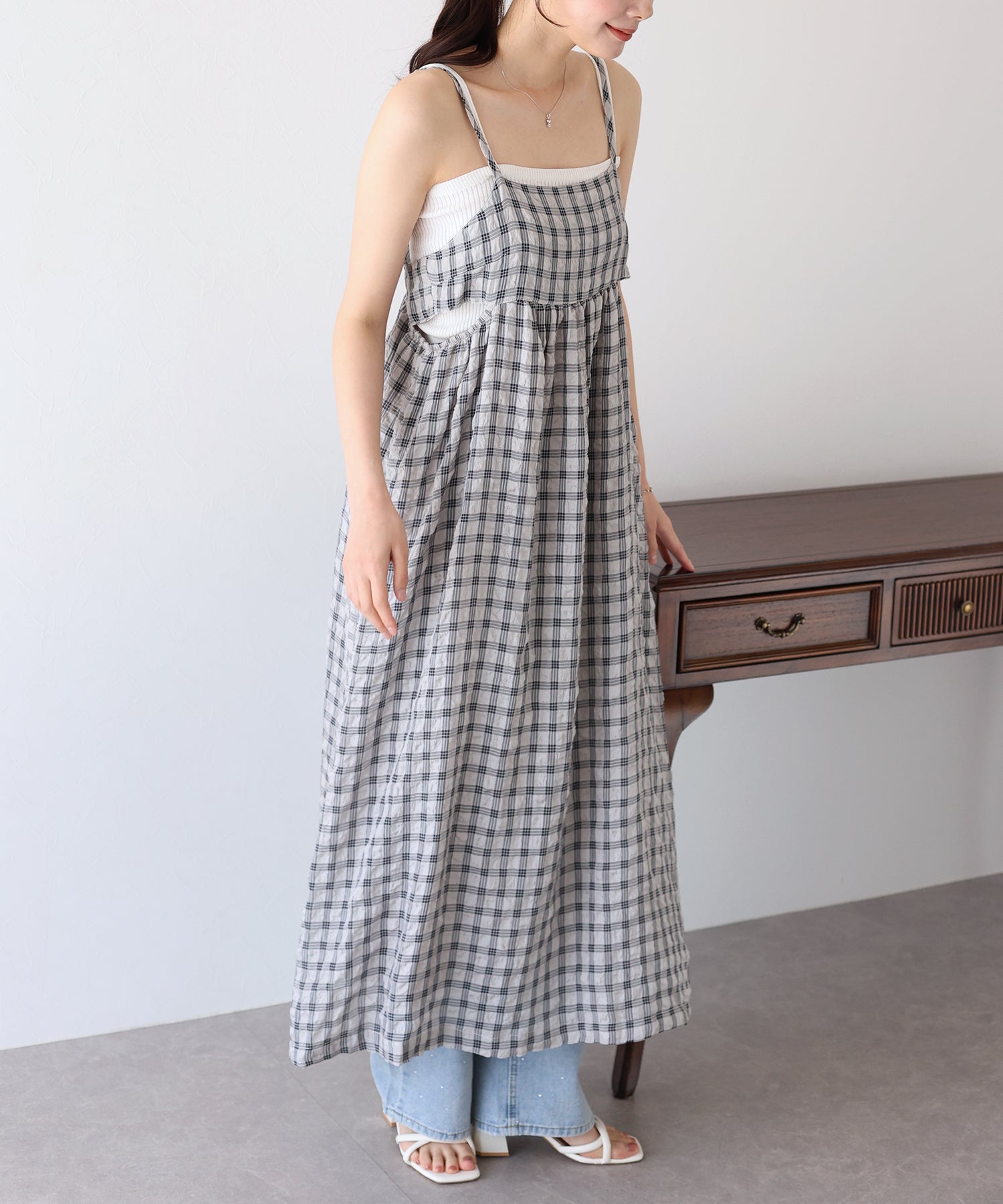 フロッキーチェックキャミワンピース