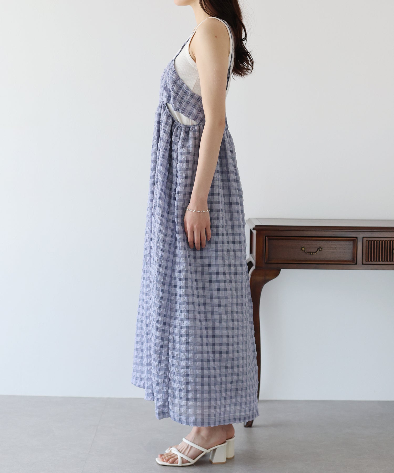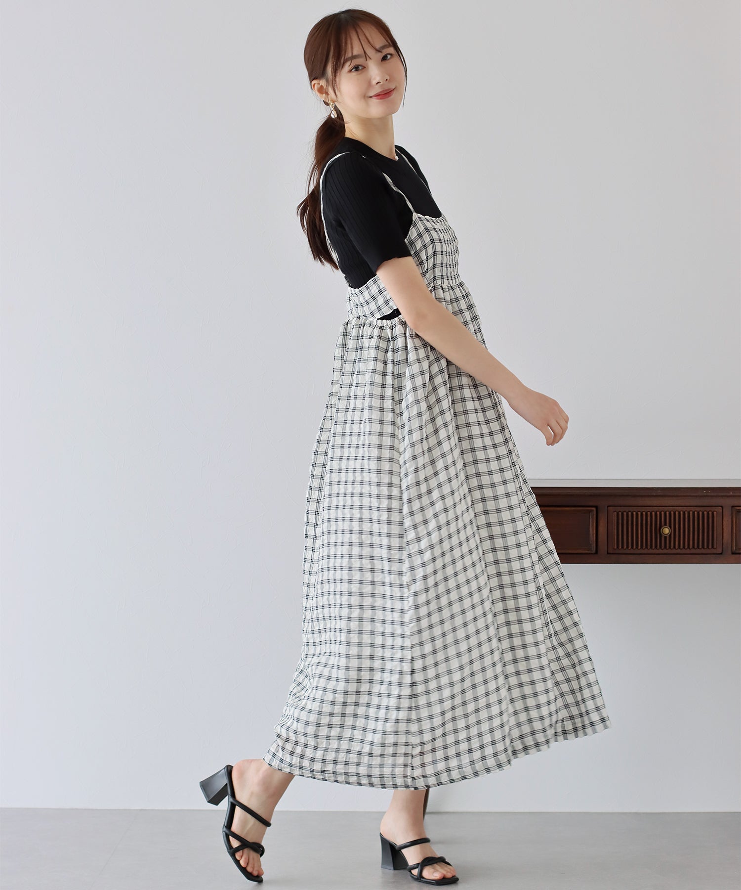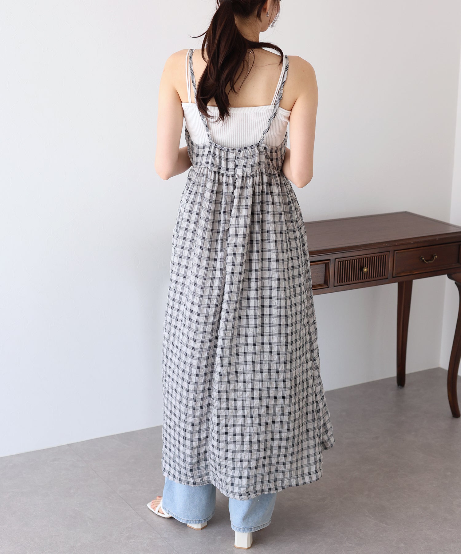 フロッキーチェックキャミワンピース