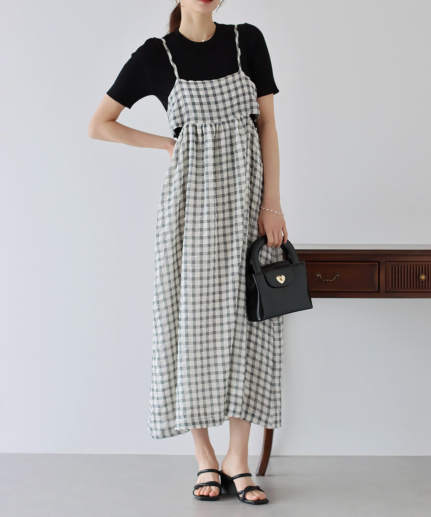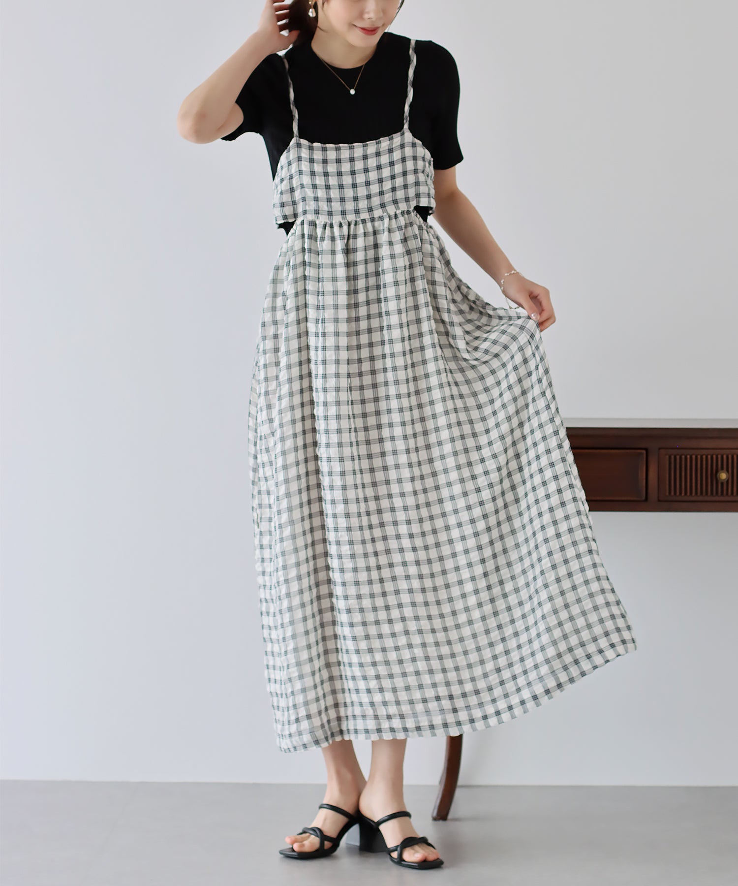 【SALE】シアーチェックキャミワンピース