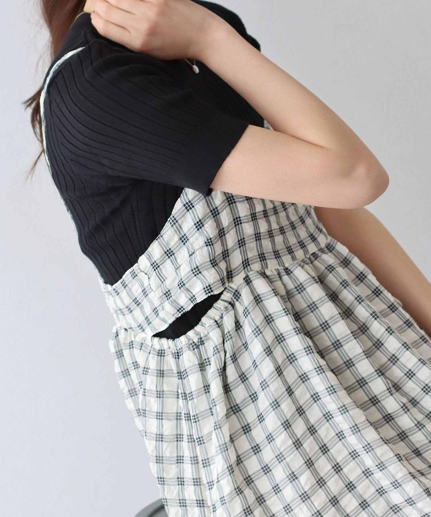 チェック柄サイドリボンキャミワンピース