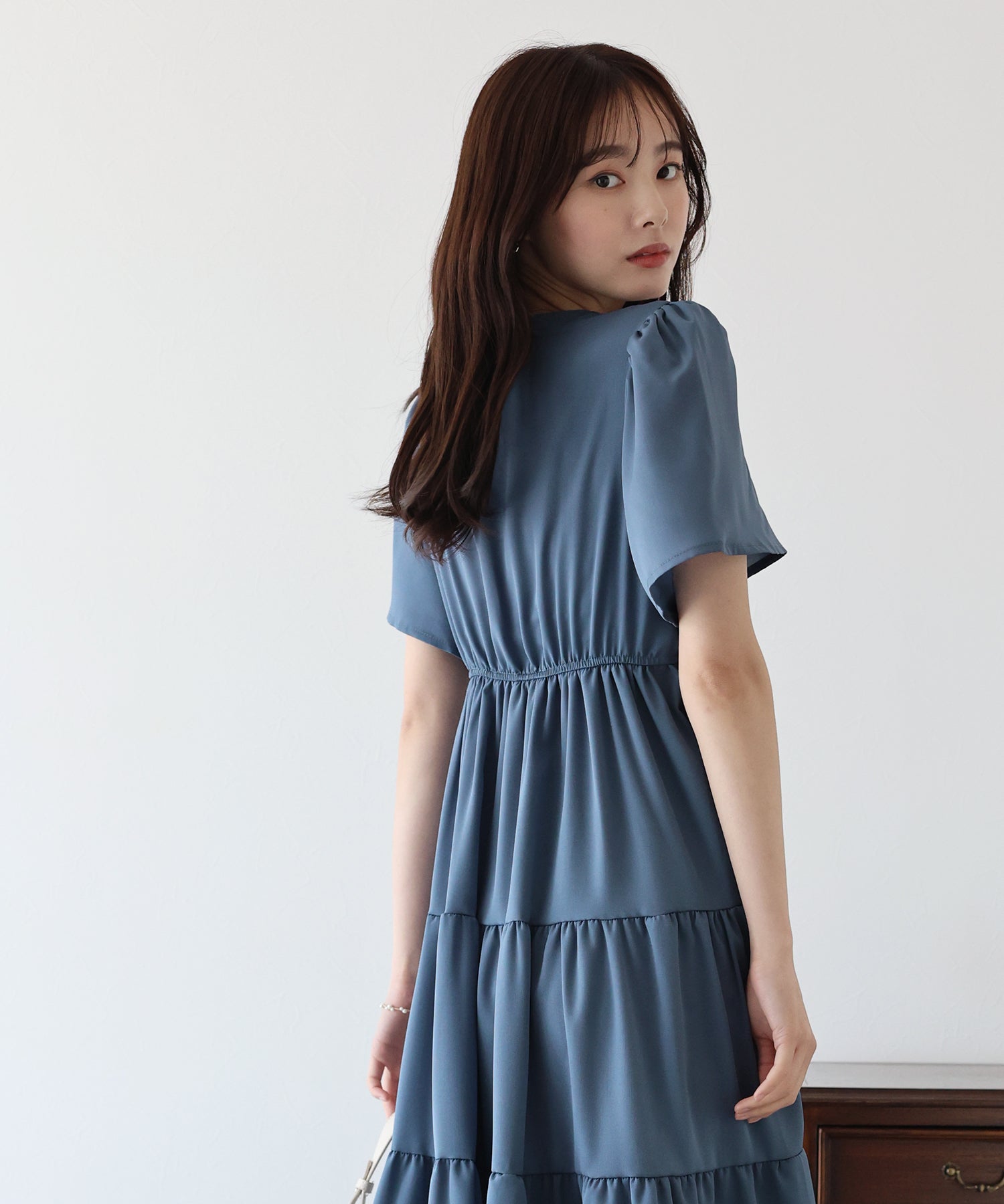 ふんわりと広がるティアードスカートの切り替えがボリュームたっぷりの
