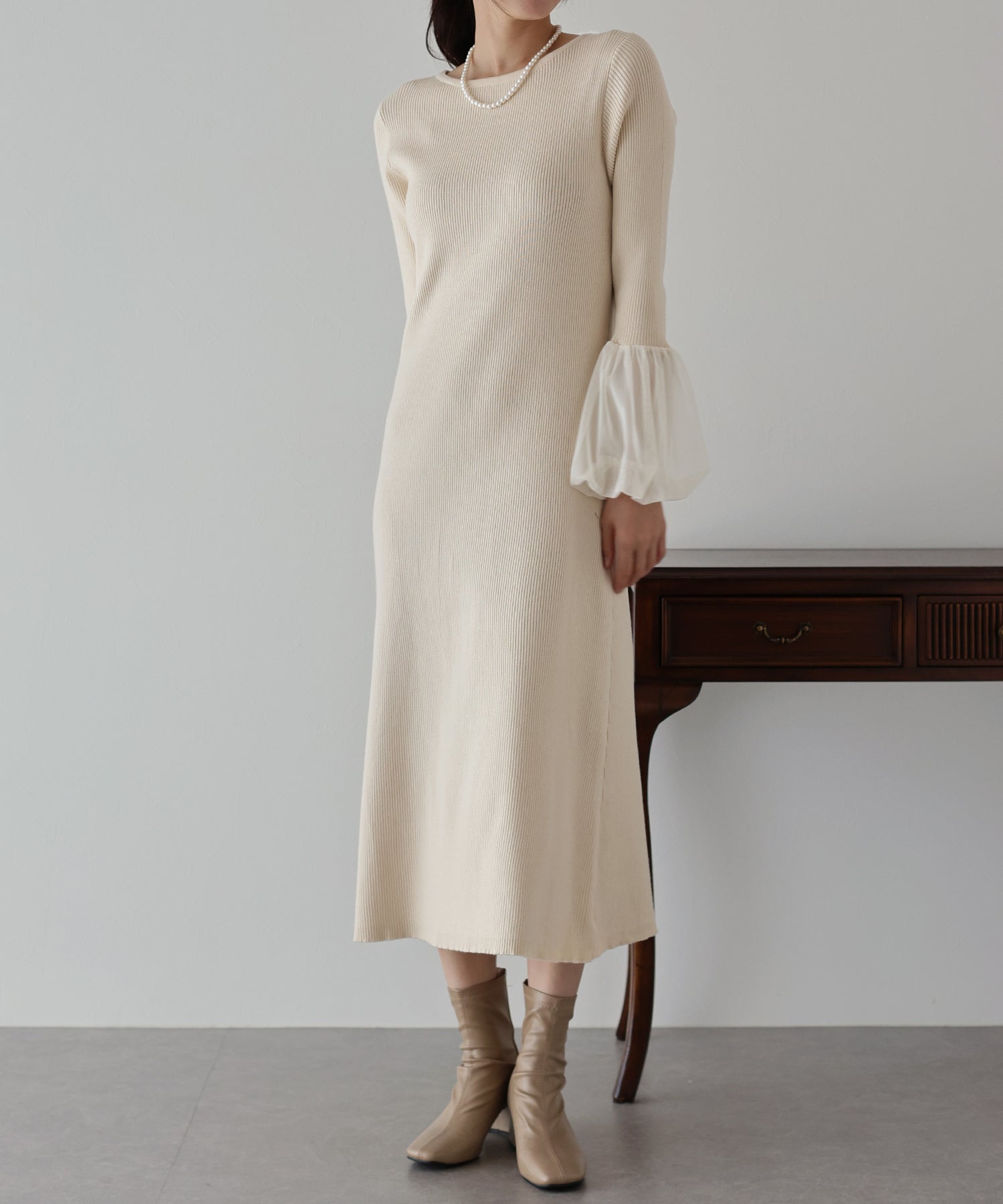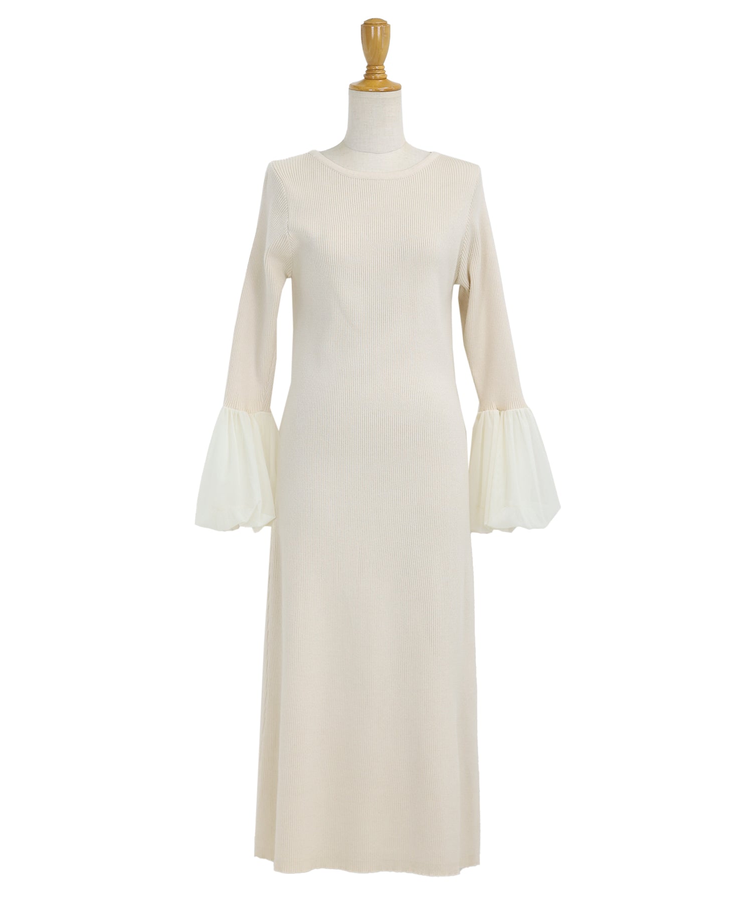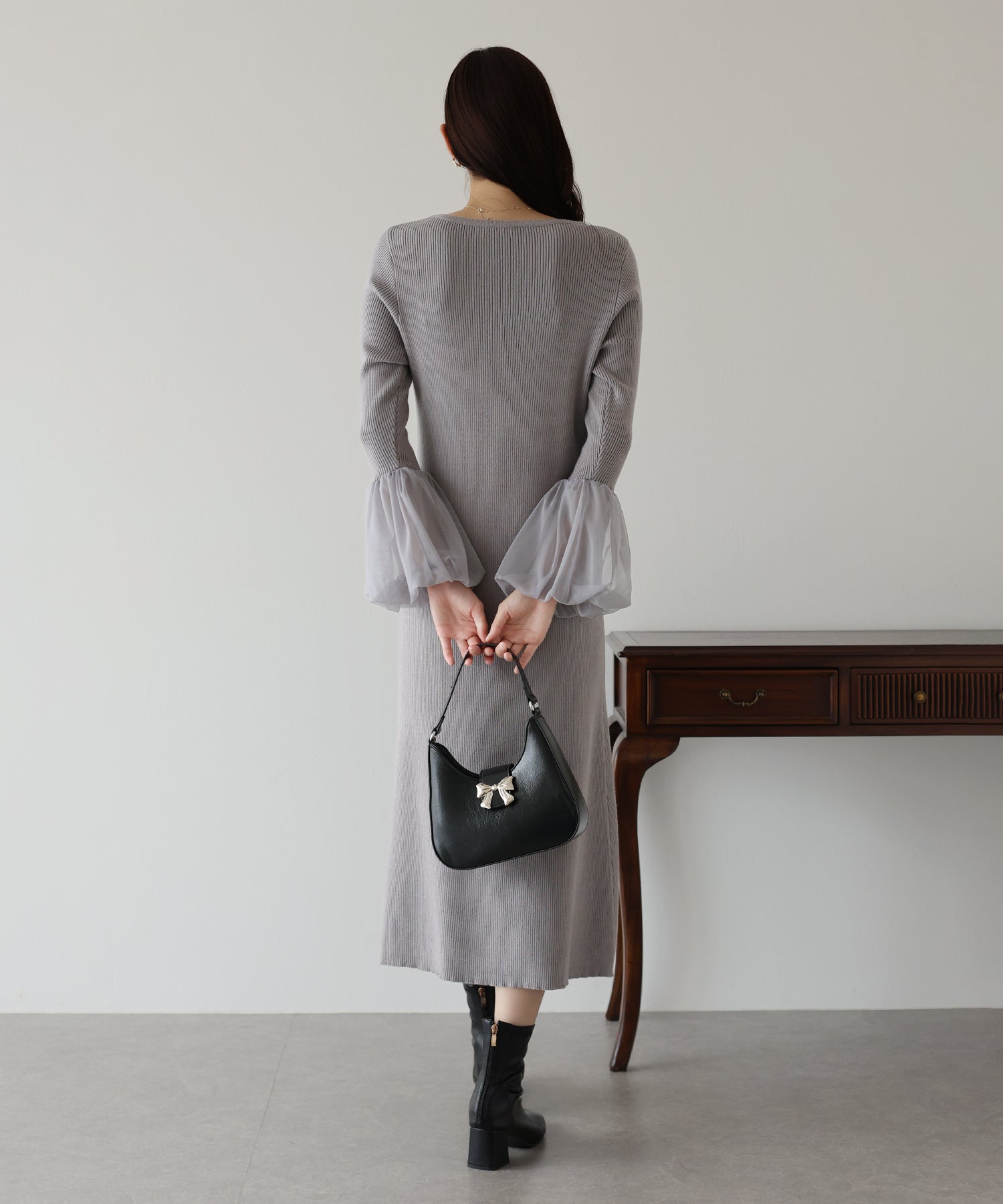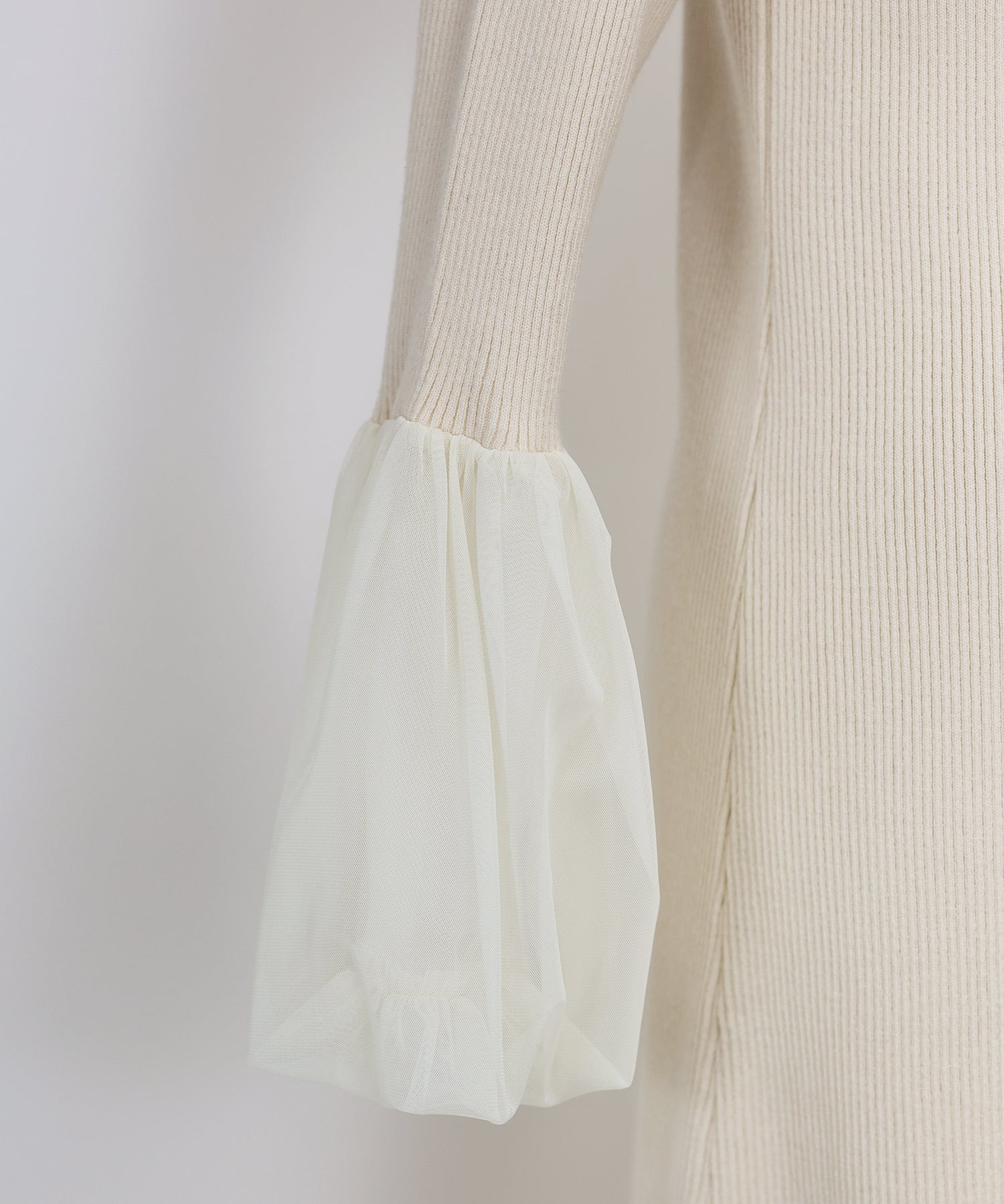 チュールのバルーンスリーブがポイントのニットワンピース。