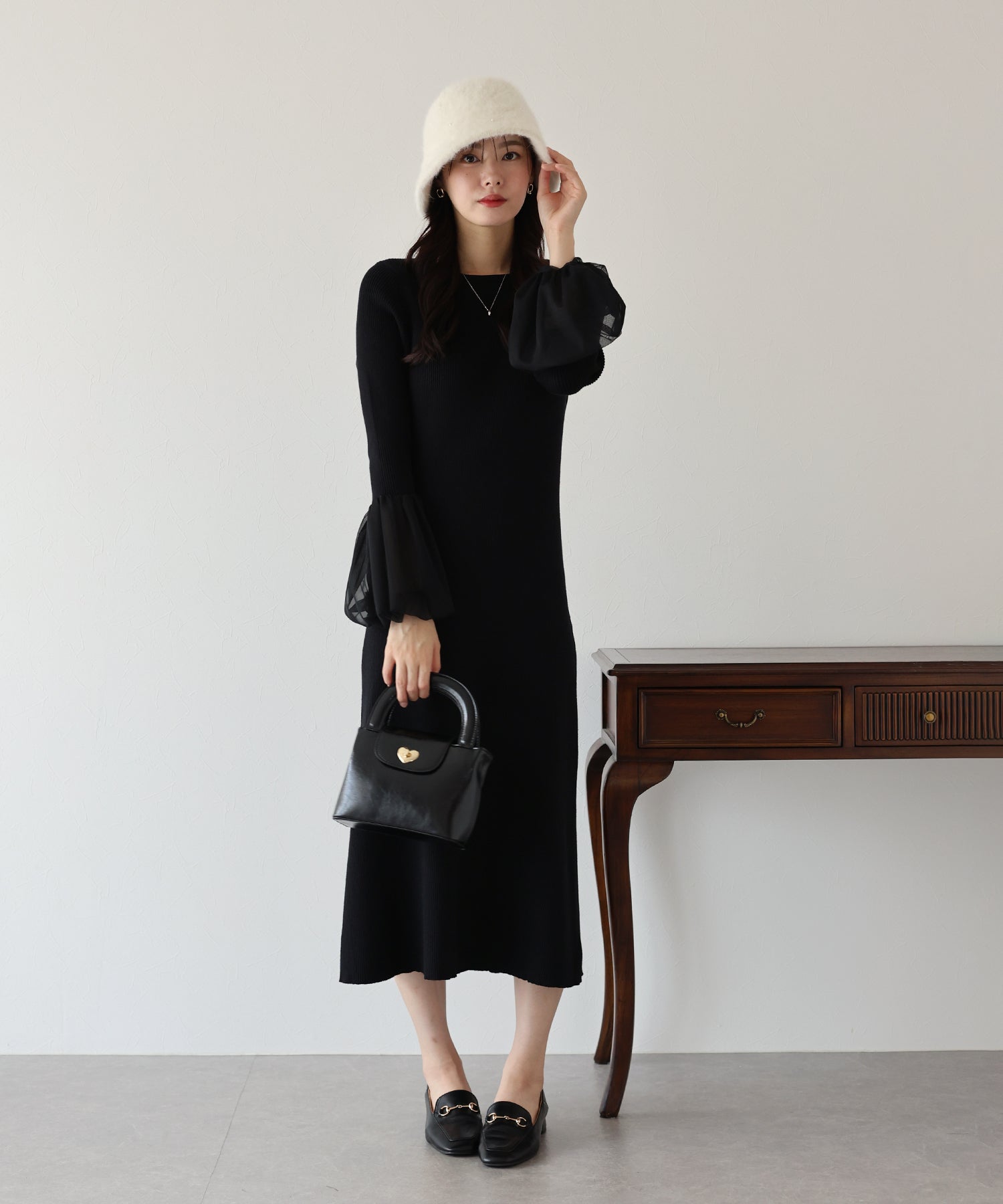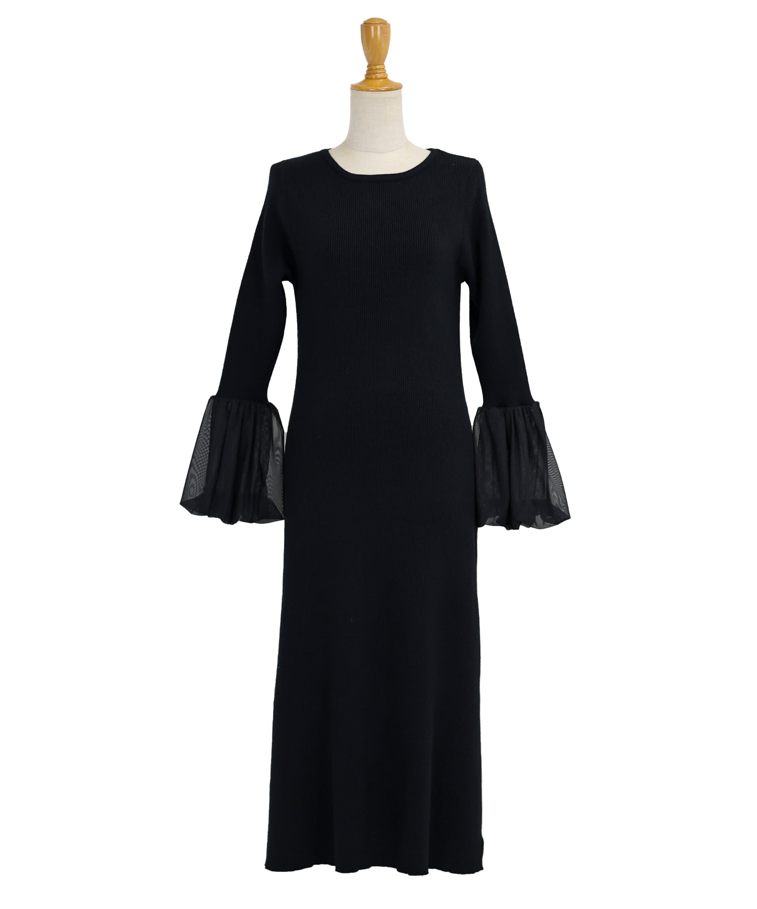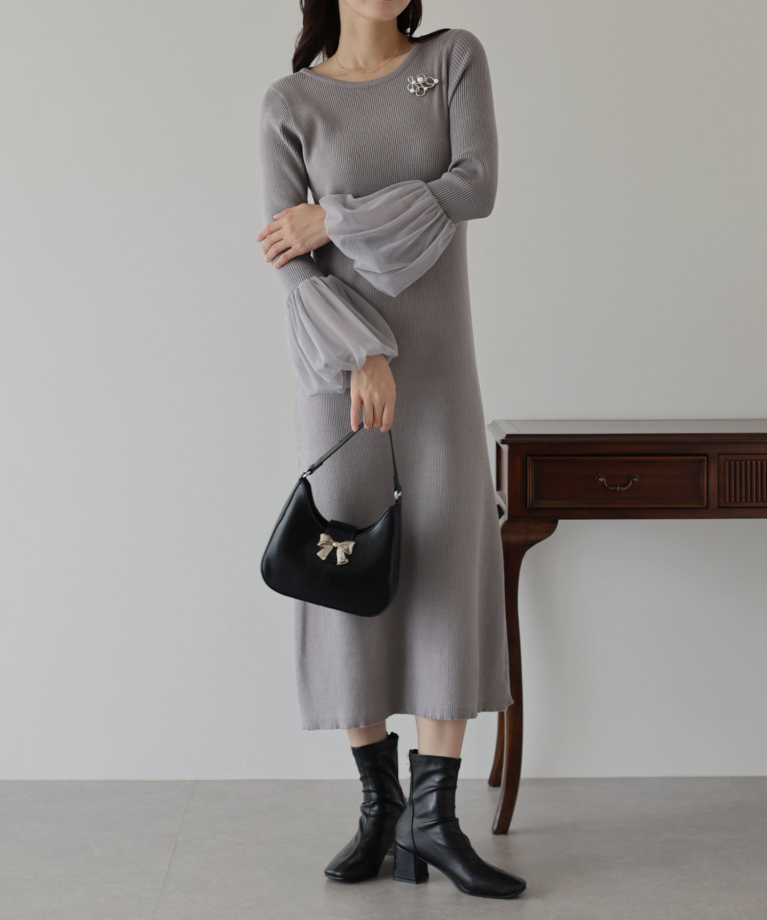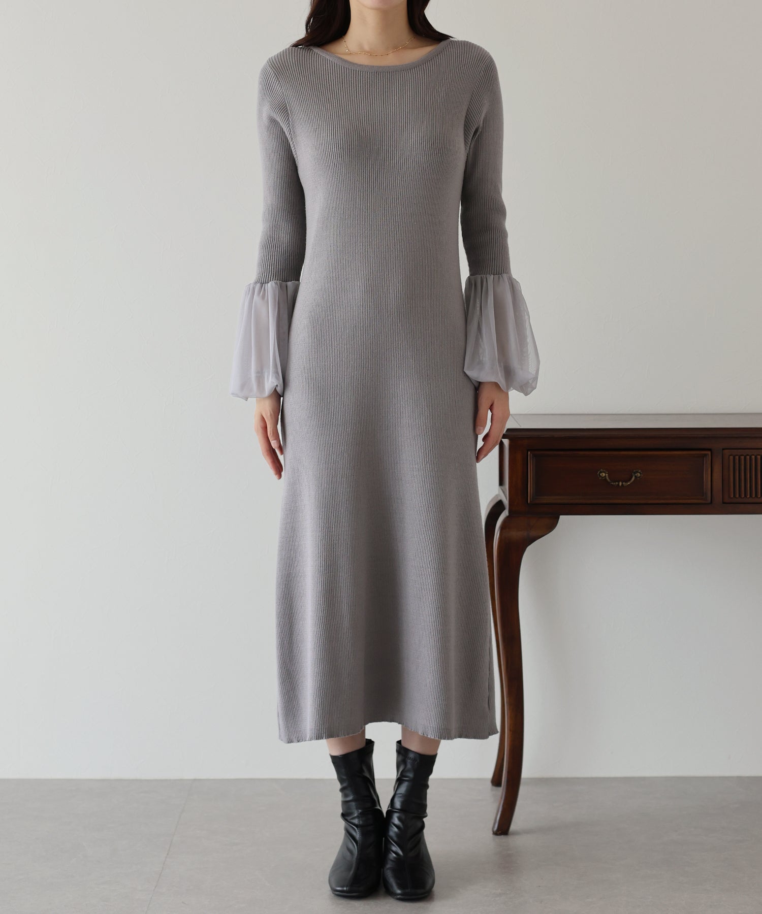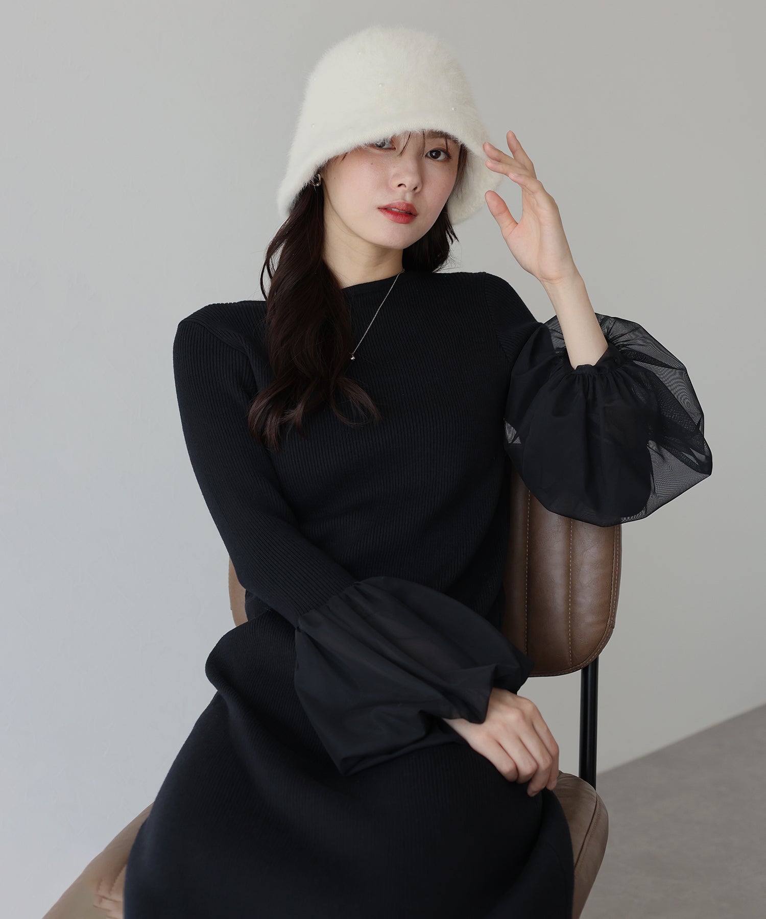 チュールのバルーンスリーブがポイントのニットワンピース。