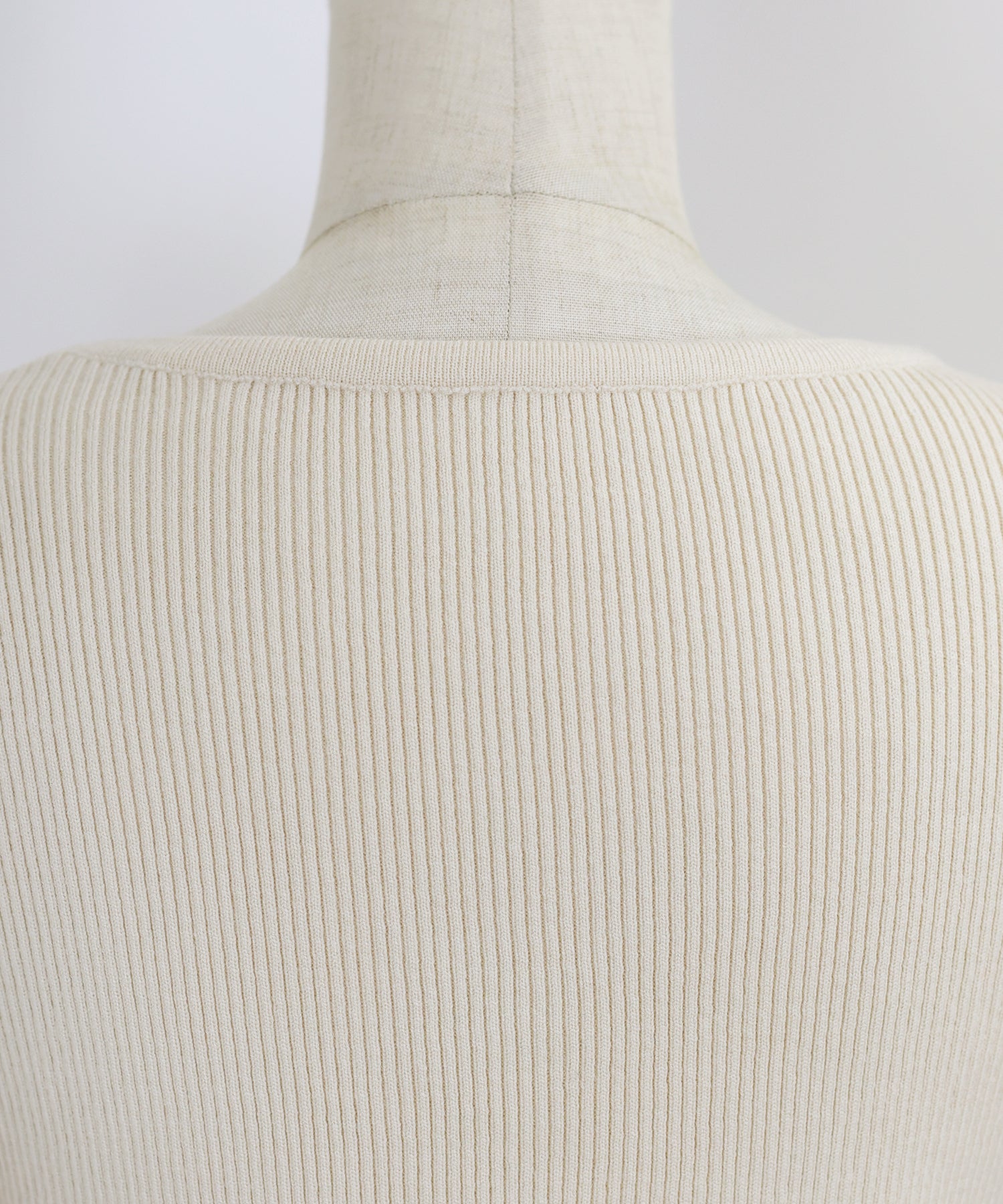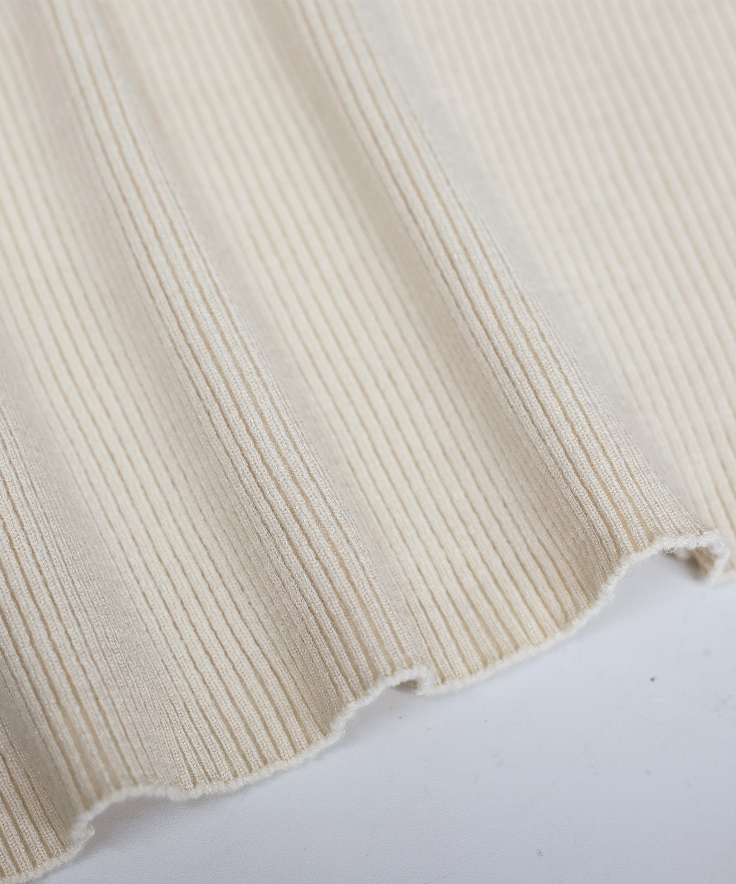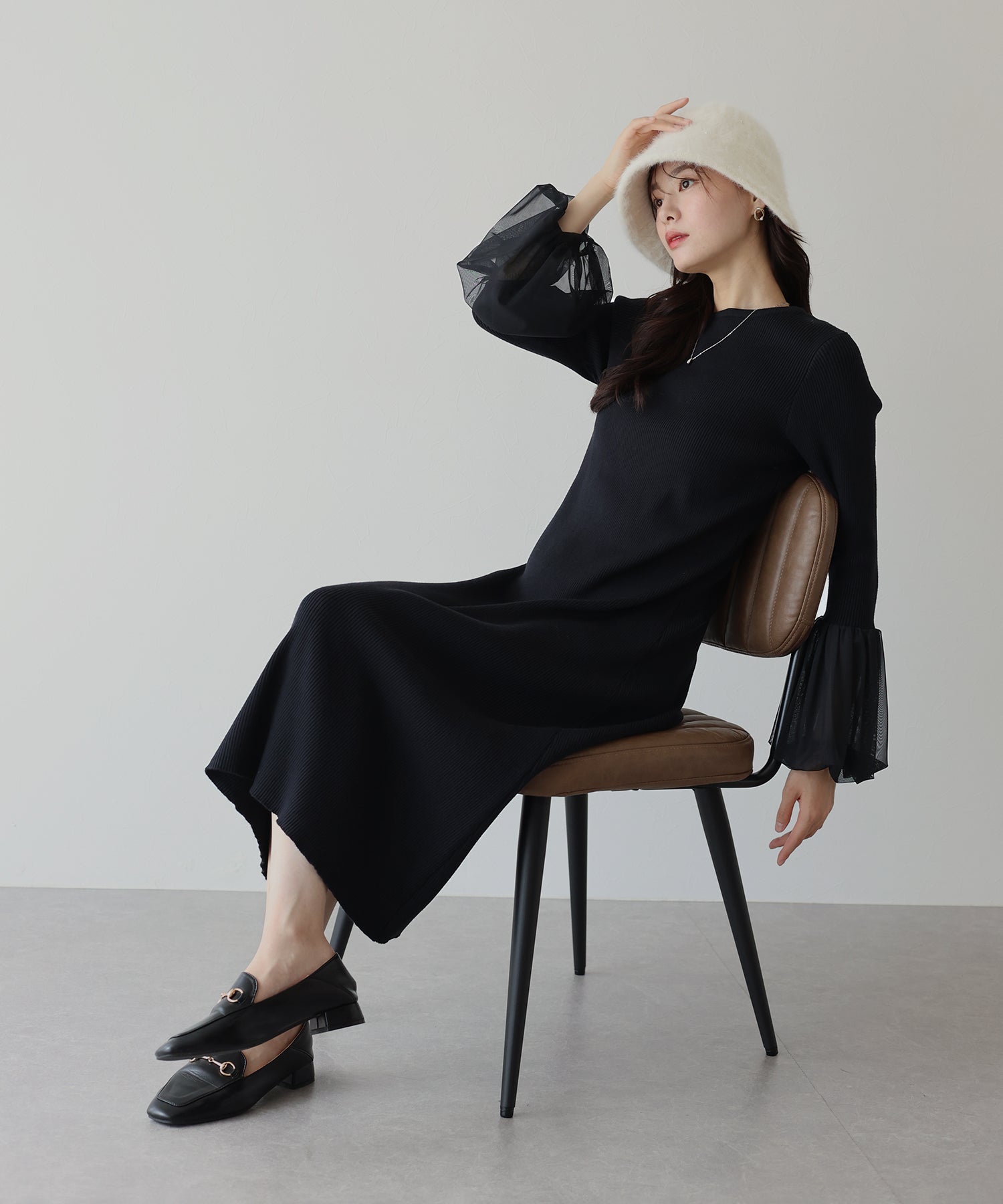 ぽわんとしたチュールスリーブが視線を引きつけるリブニットワンピ
