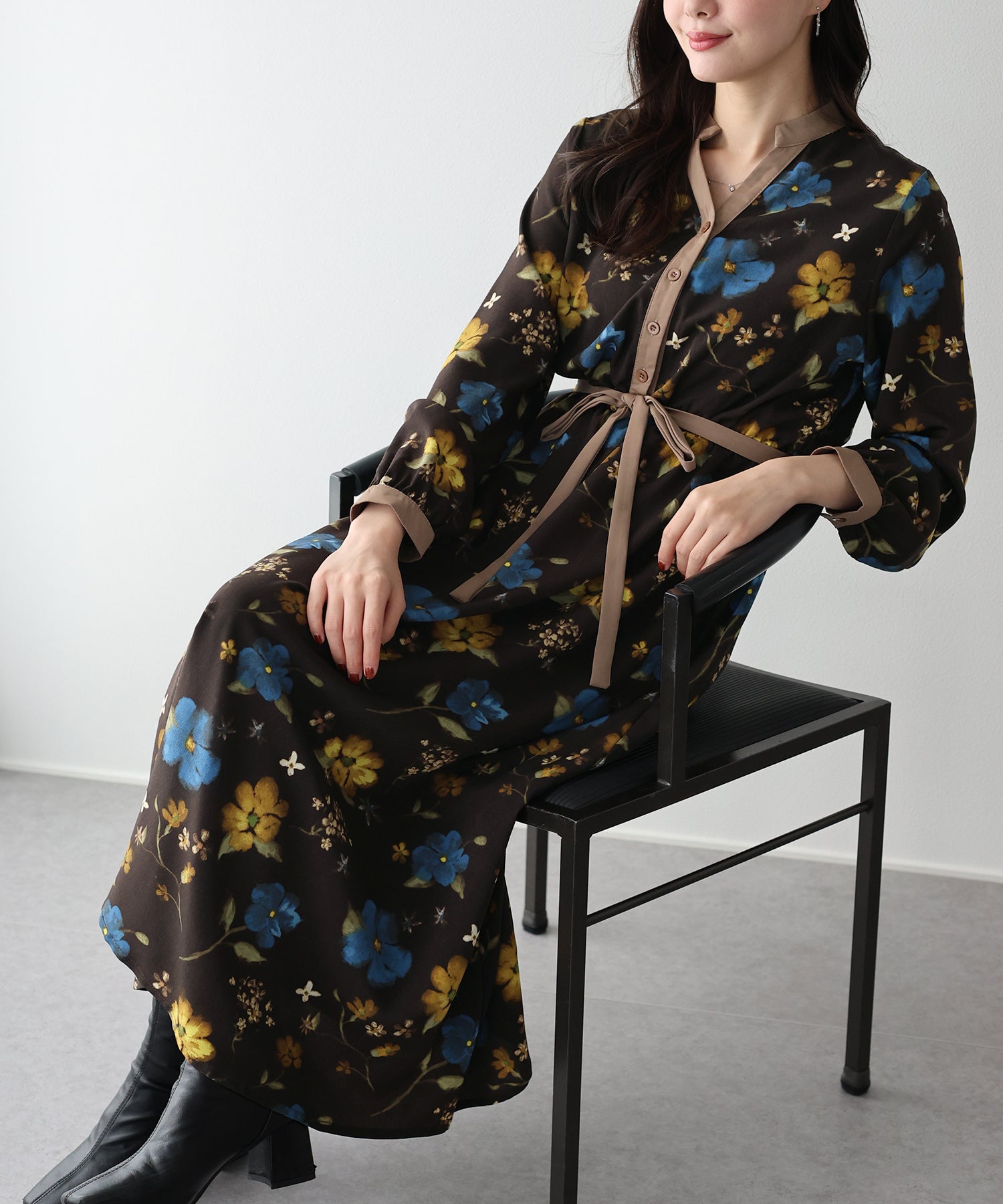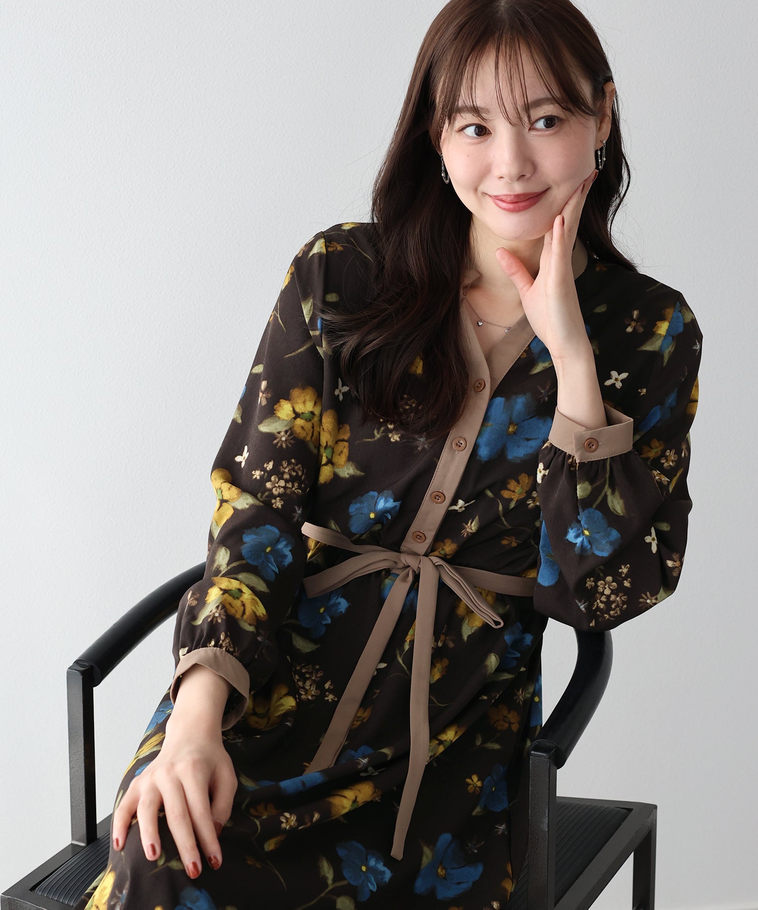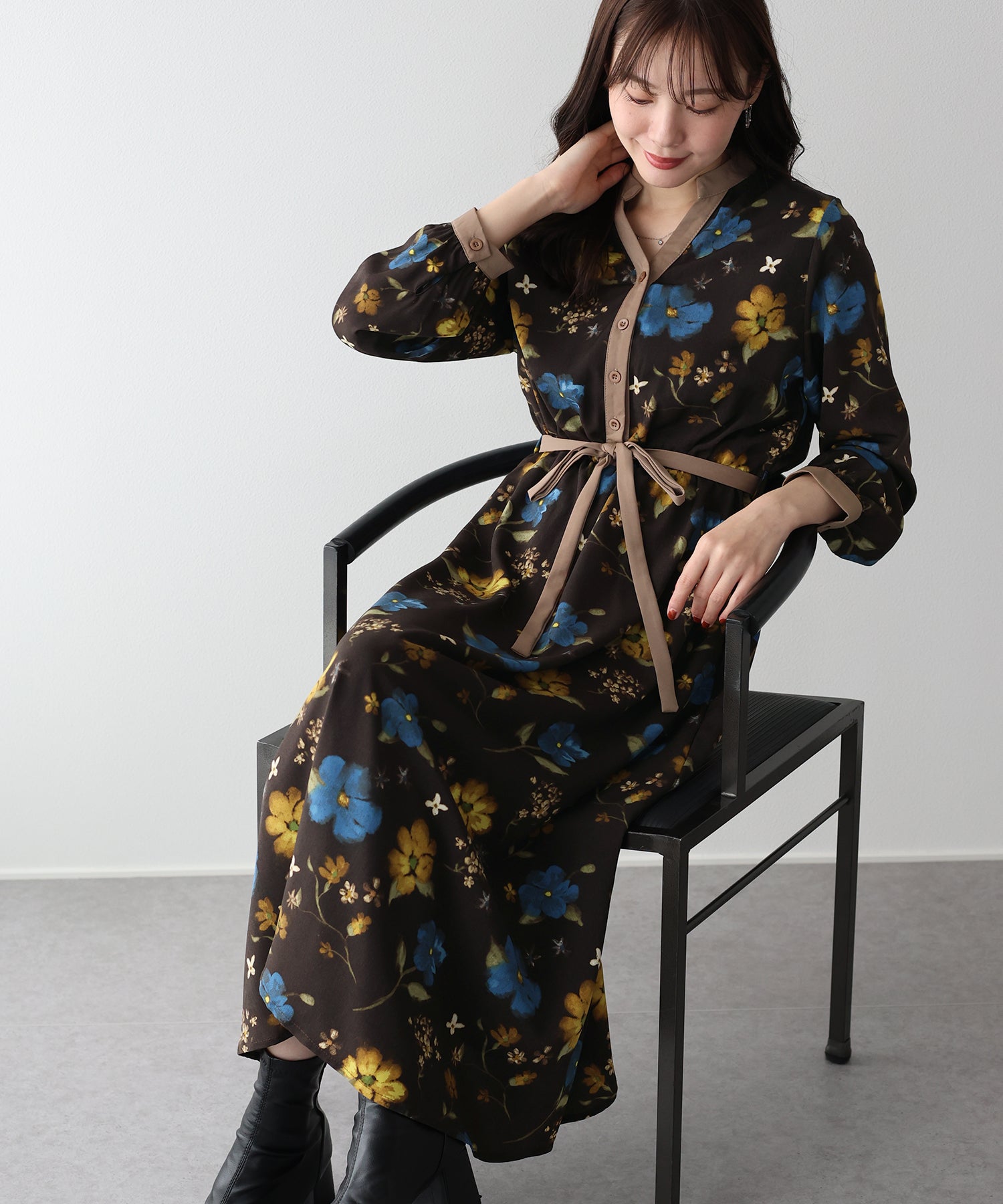 全体にあしらった大人ラブリーなリボン柄が目を惹くワンピース。