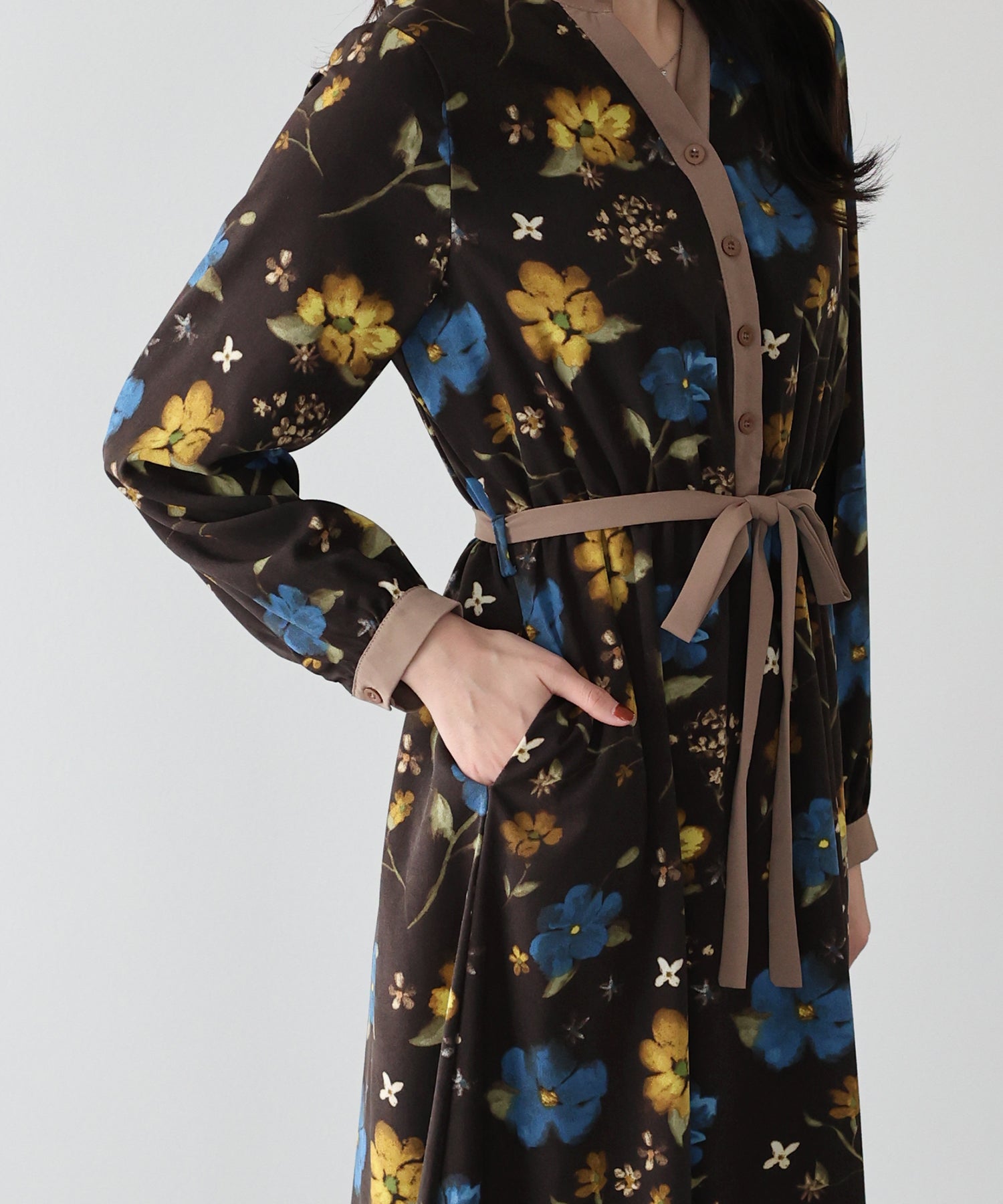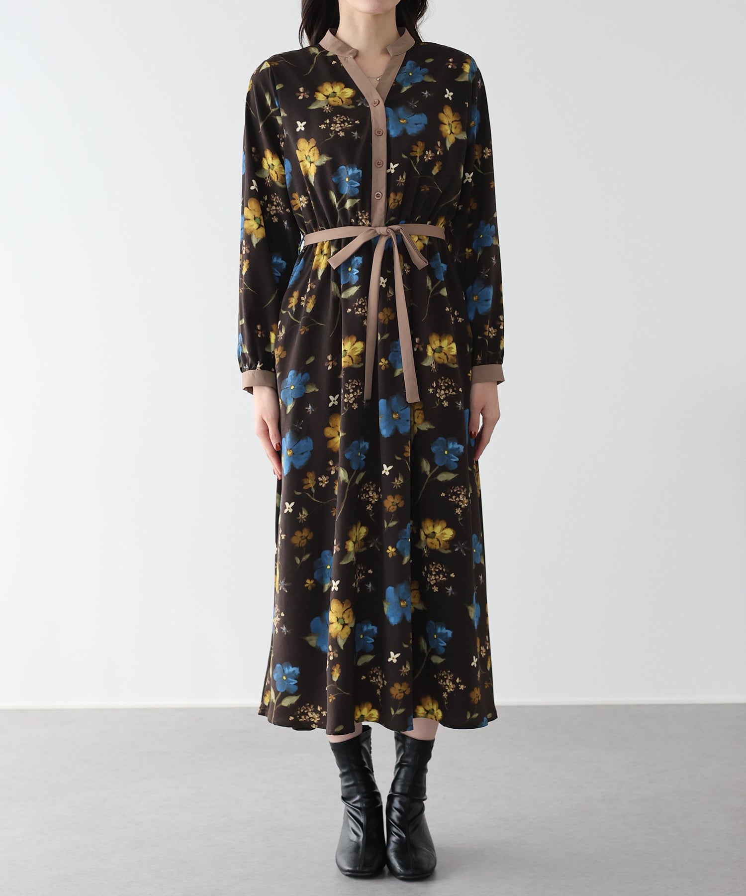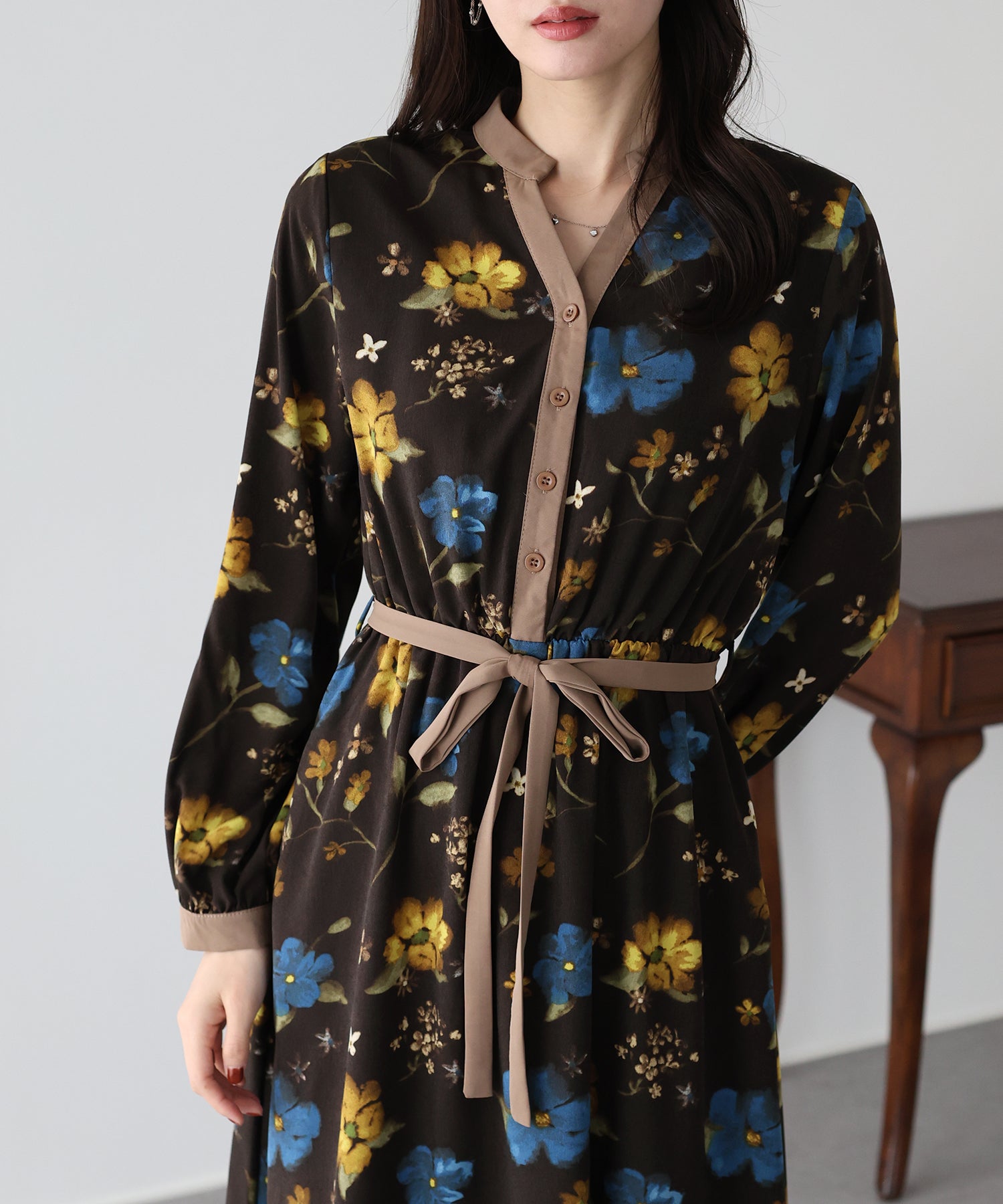全体にあしらった大人ラブリーなリボン柄が目を惹くワンピース。
