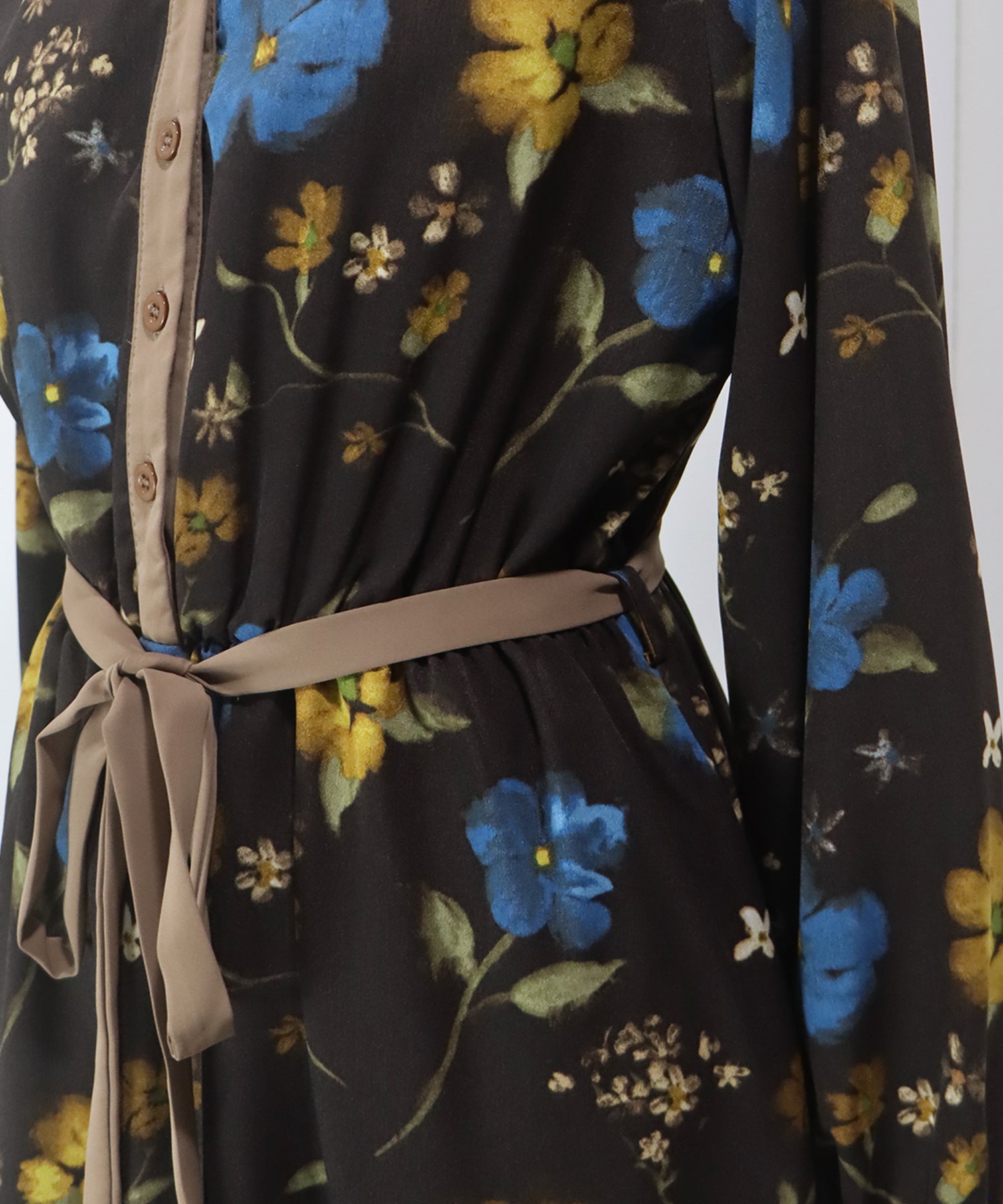 ウエストリボンをきゅっと結べば女性らしいシルエットになりスタイルアップしてくれます。