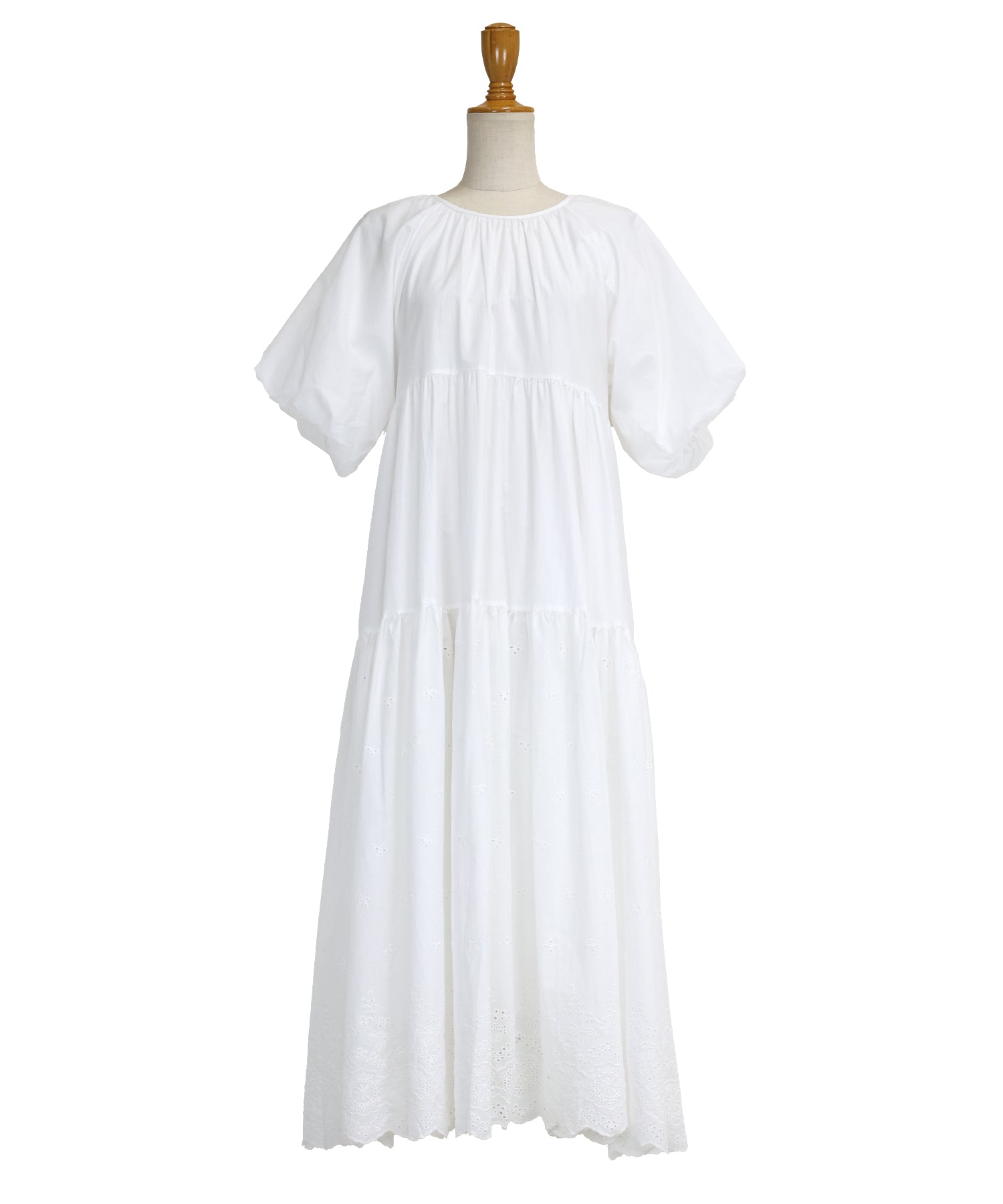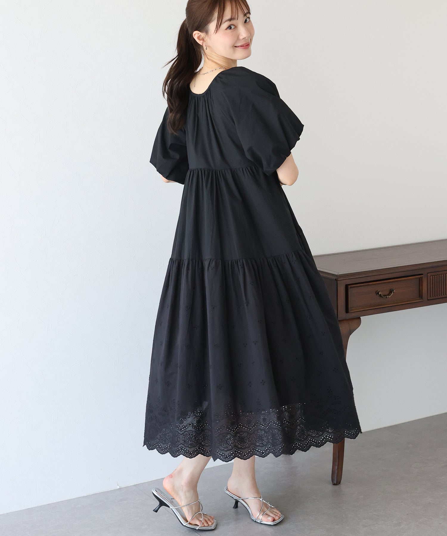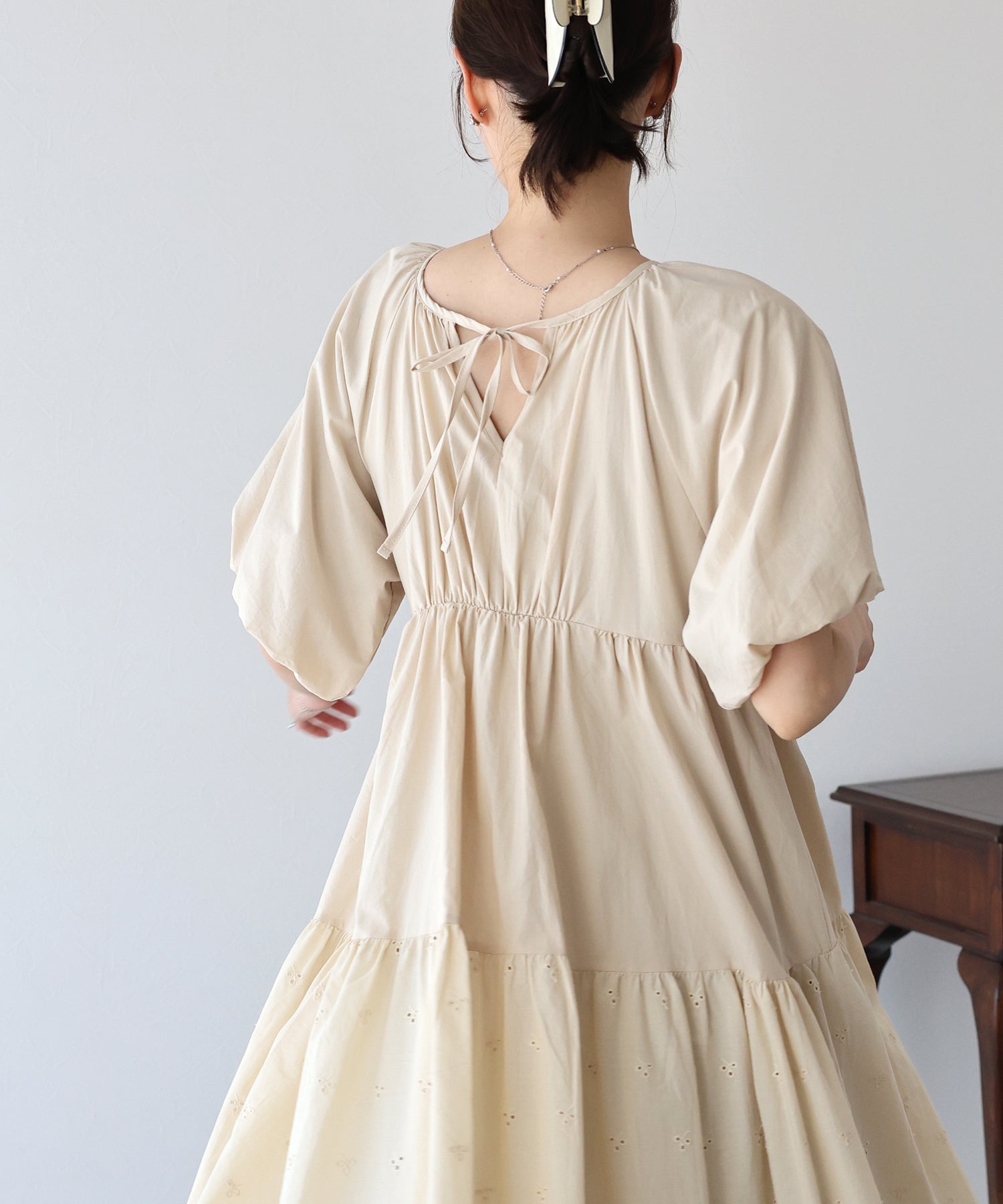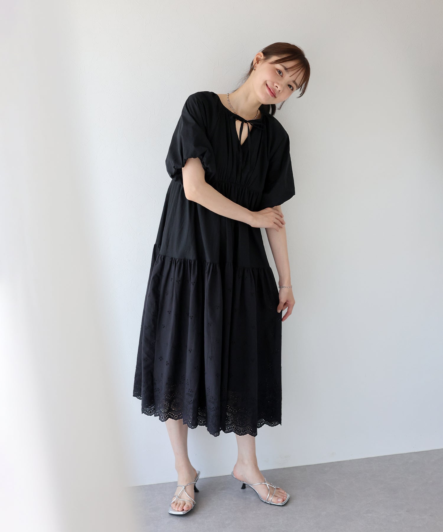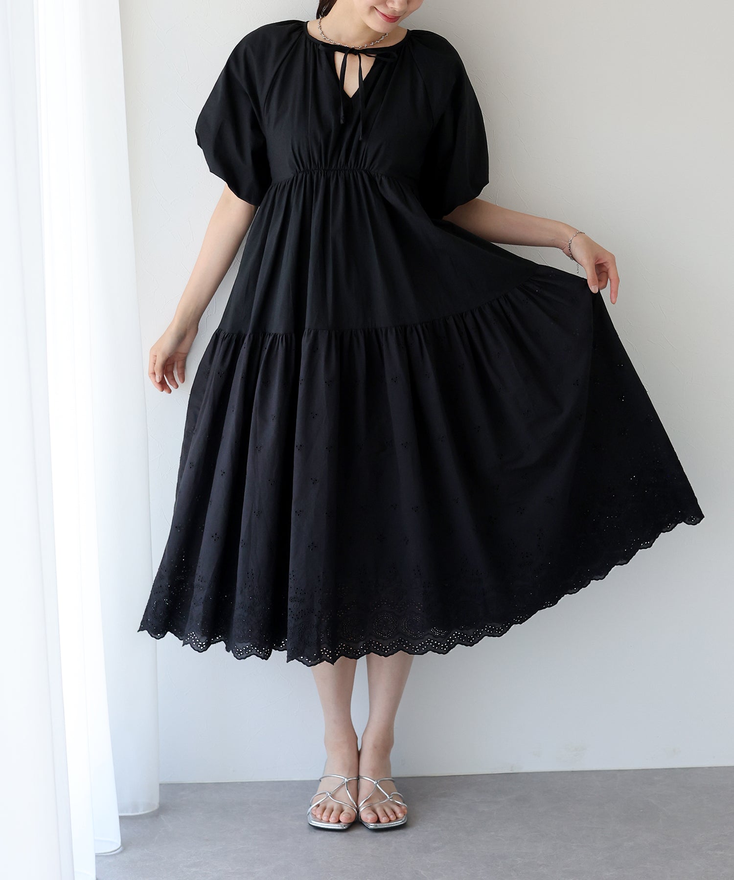 繊細な花柄刺繍が彩るナチュラルフェミニンなコットンワンピース