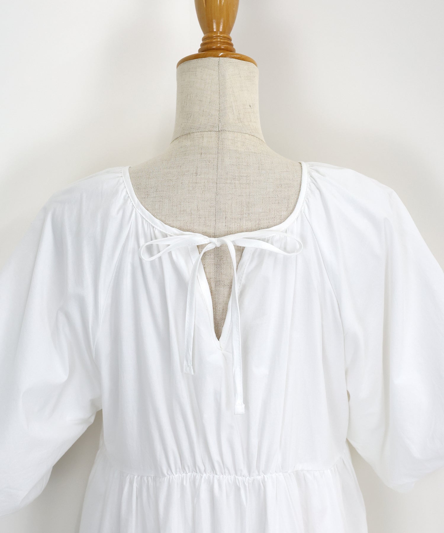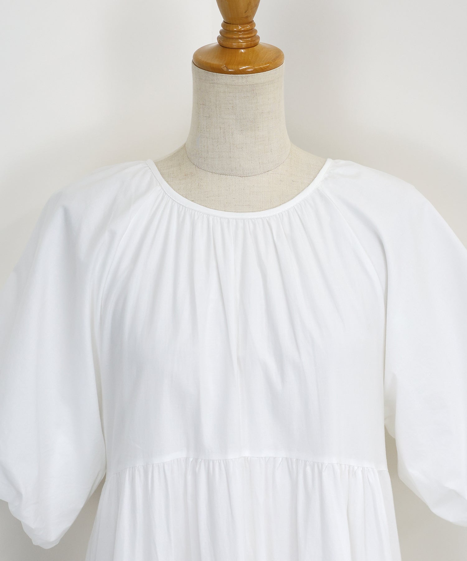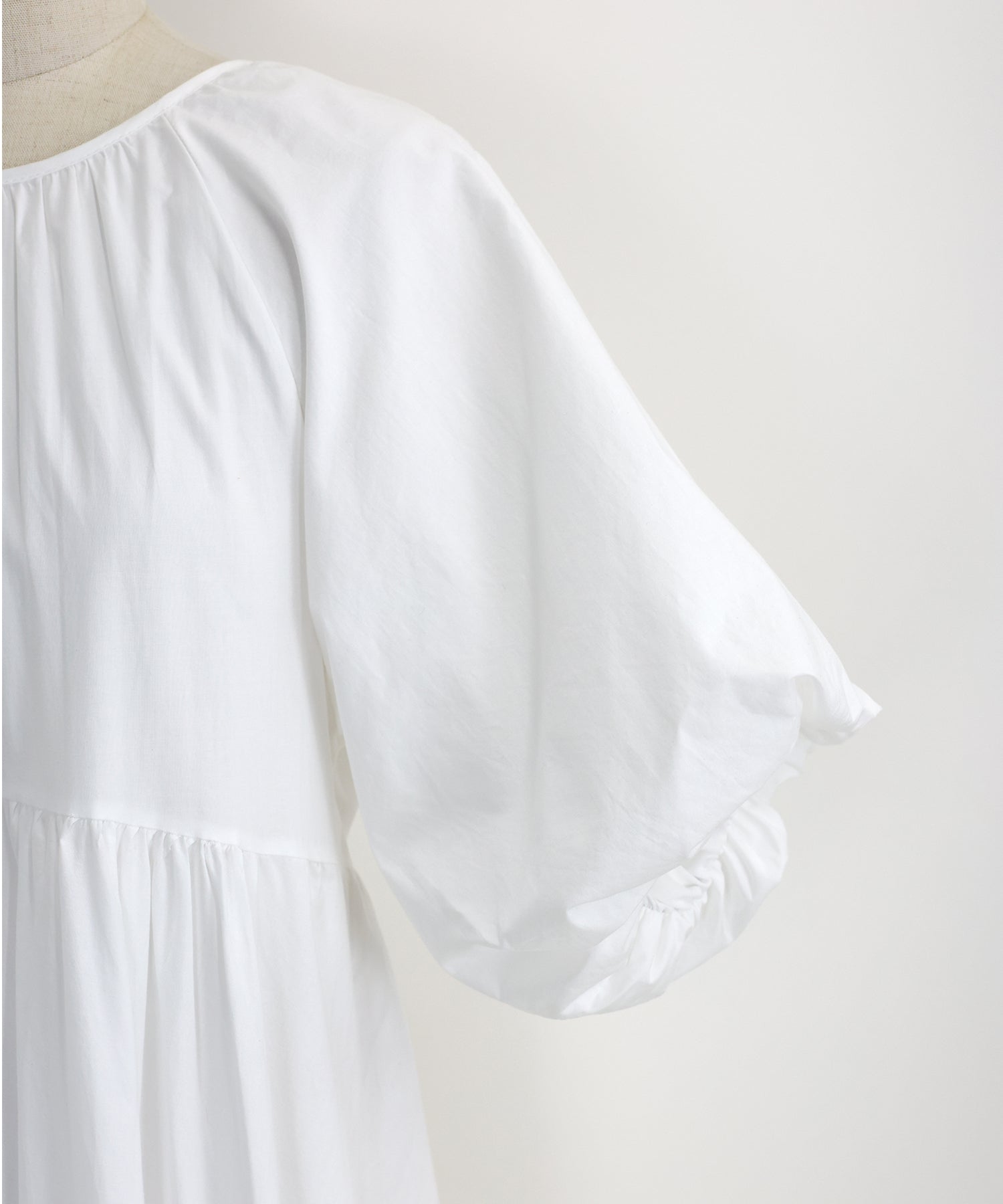 ふわっとしたバルーンスリーブと動くたびにふんわり広がるティアードデザインが