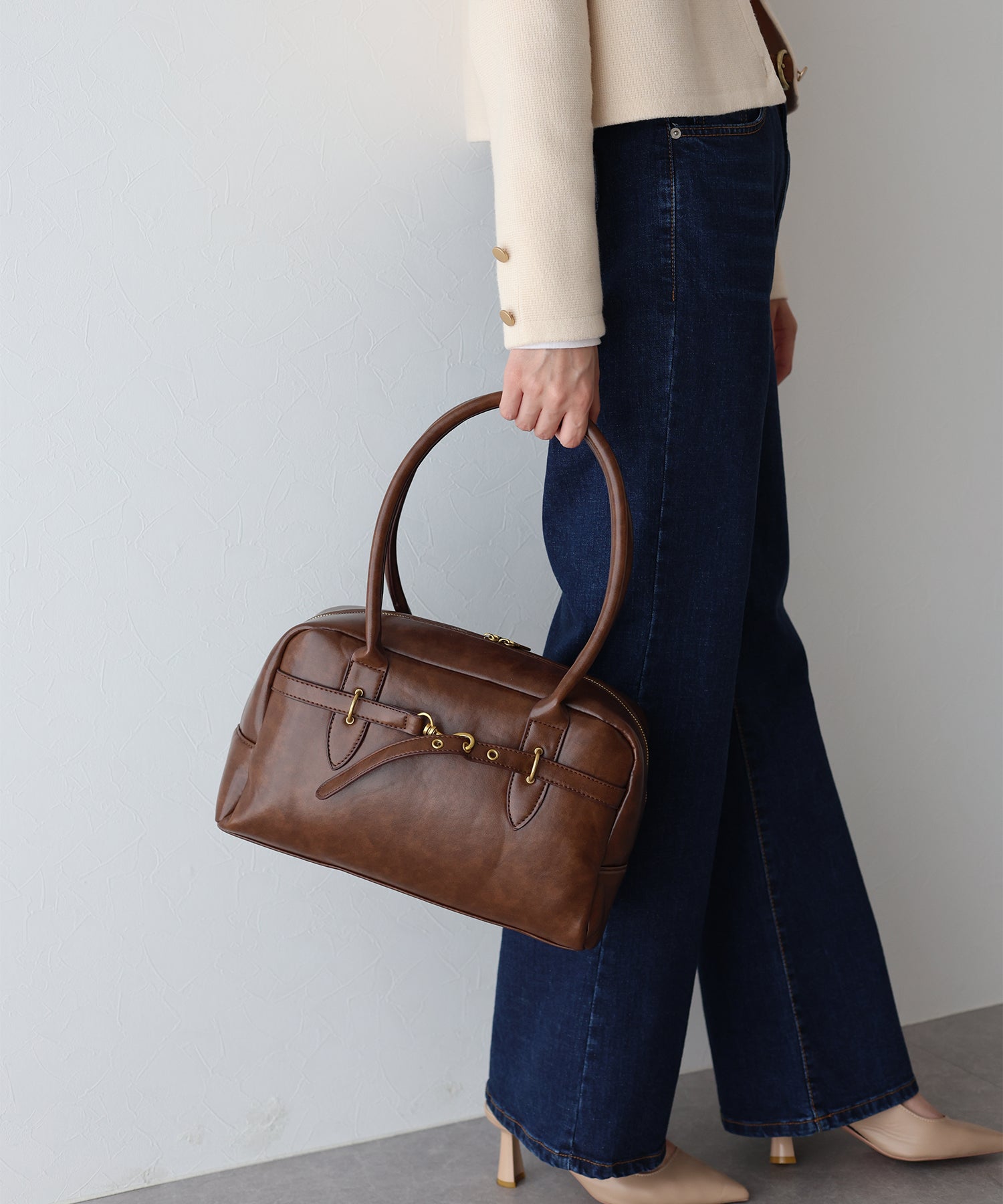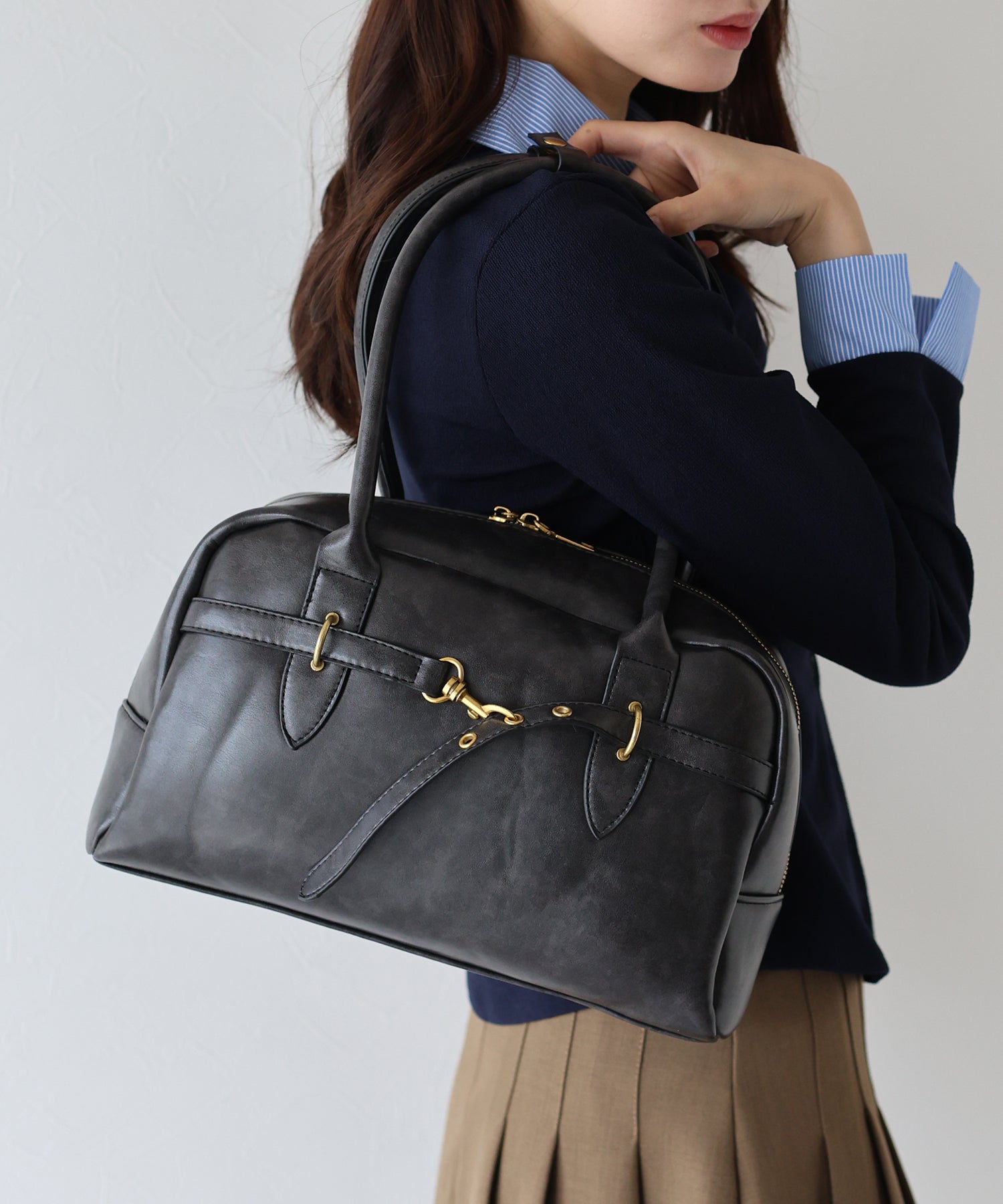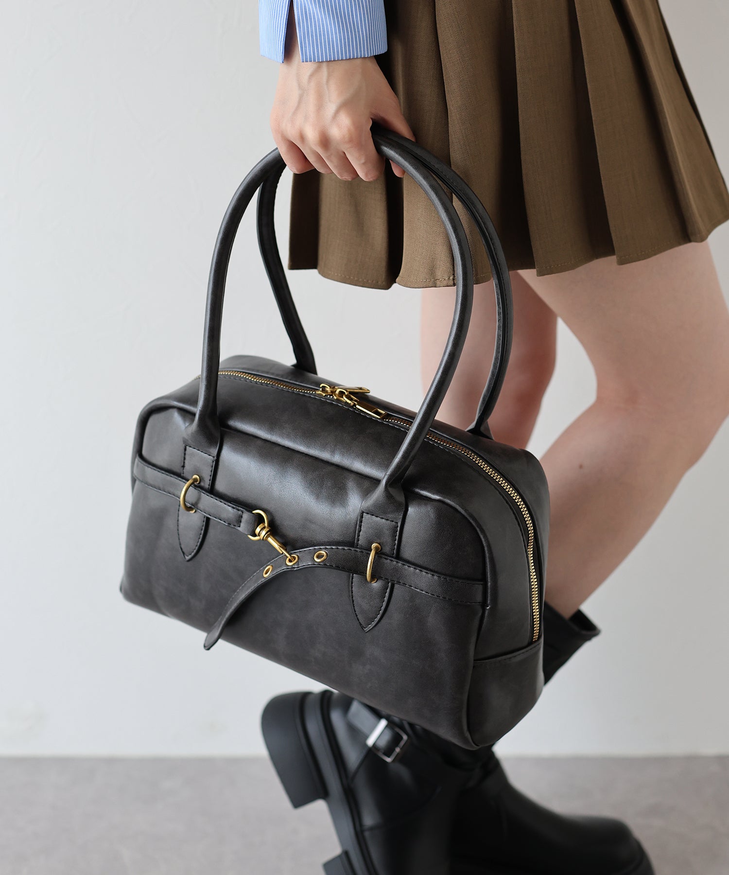 ベルトデザインでモードな雰囲気をプラスしたヴィンテージ風バッグ