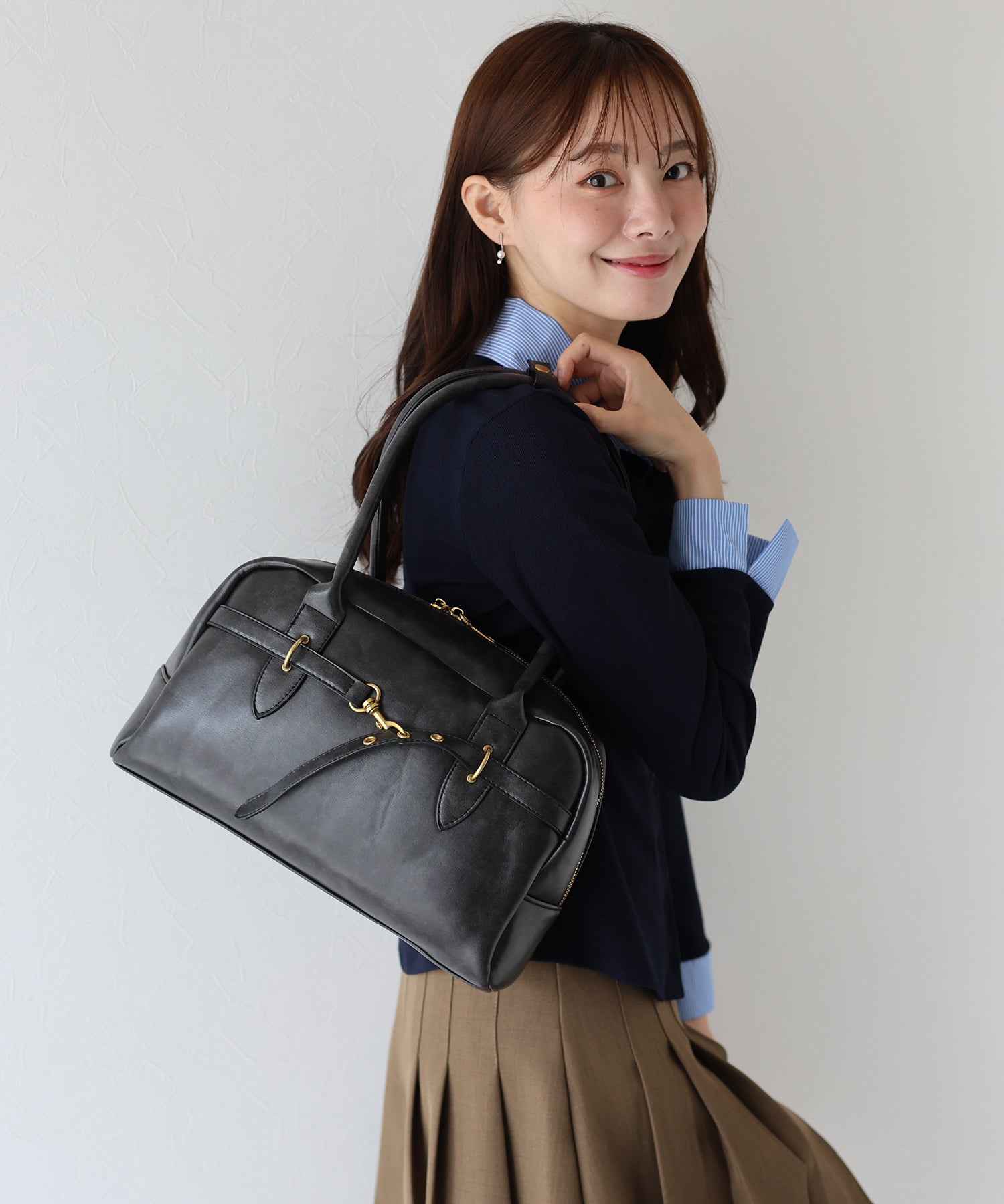 厚めのアウターの上からも肩掛け出来る長さの持ち手で、シーズンレスに活躍するアイテムです♪