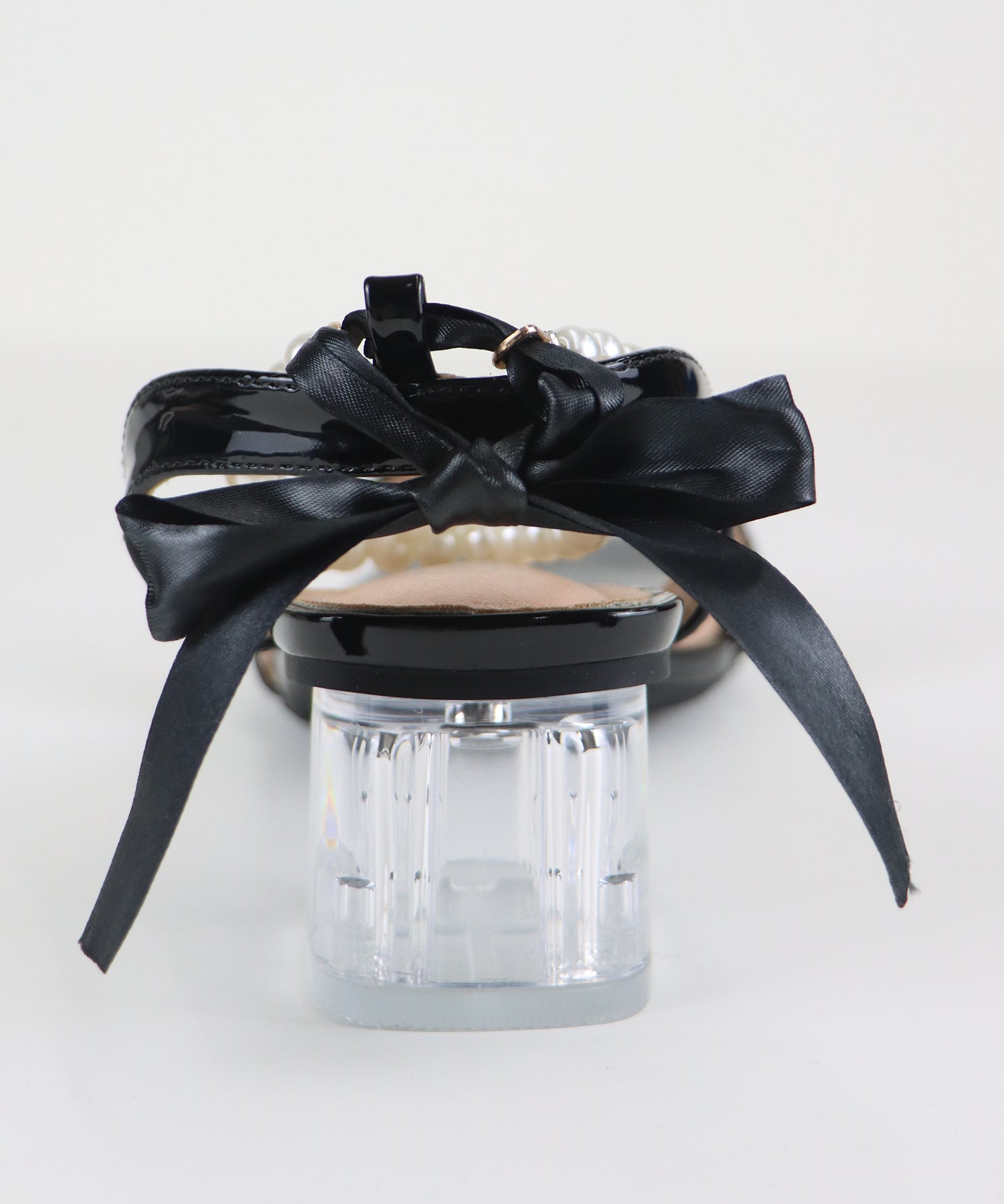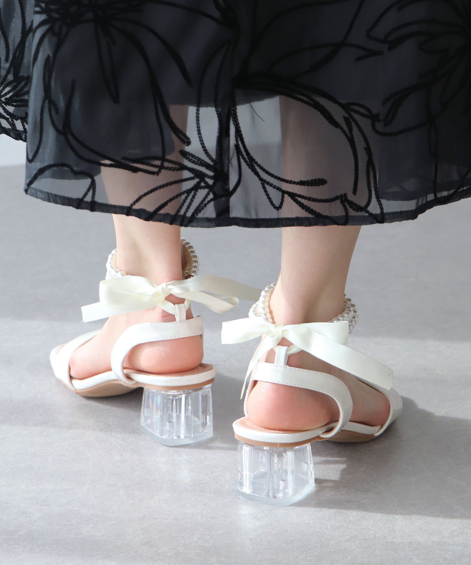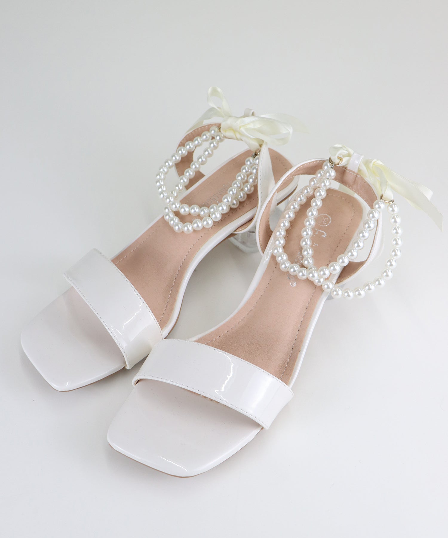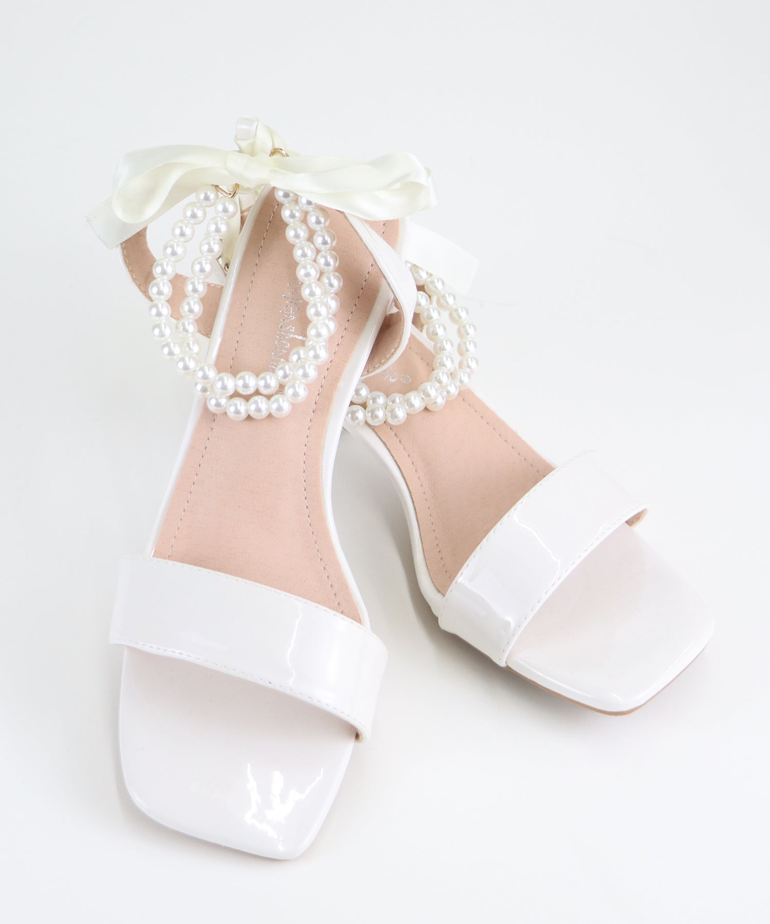 アンクルストラップの2連パールとリボンが後ろ姿も華やかに魅せてくれます。