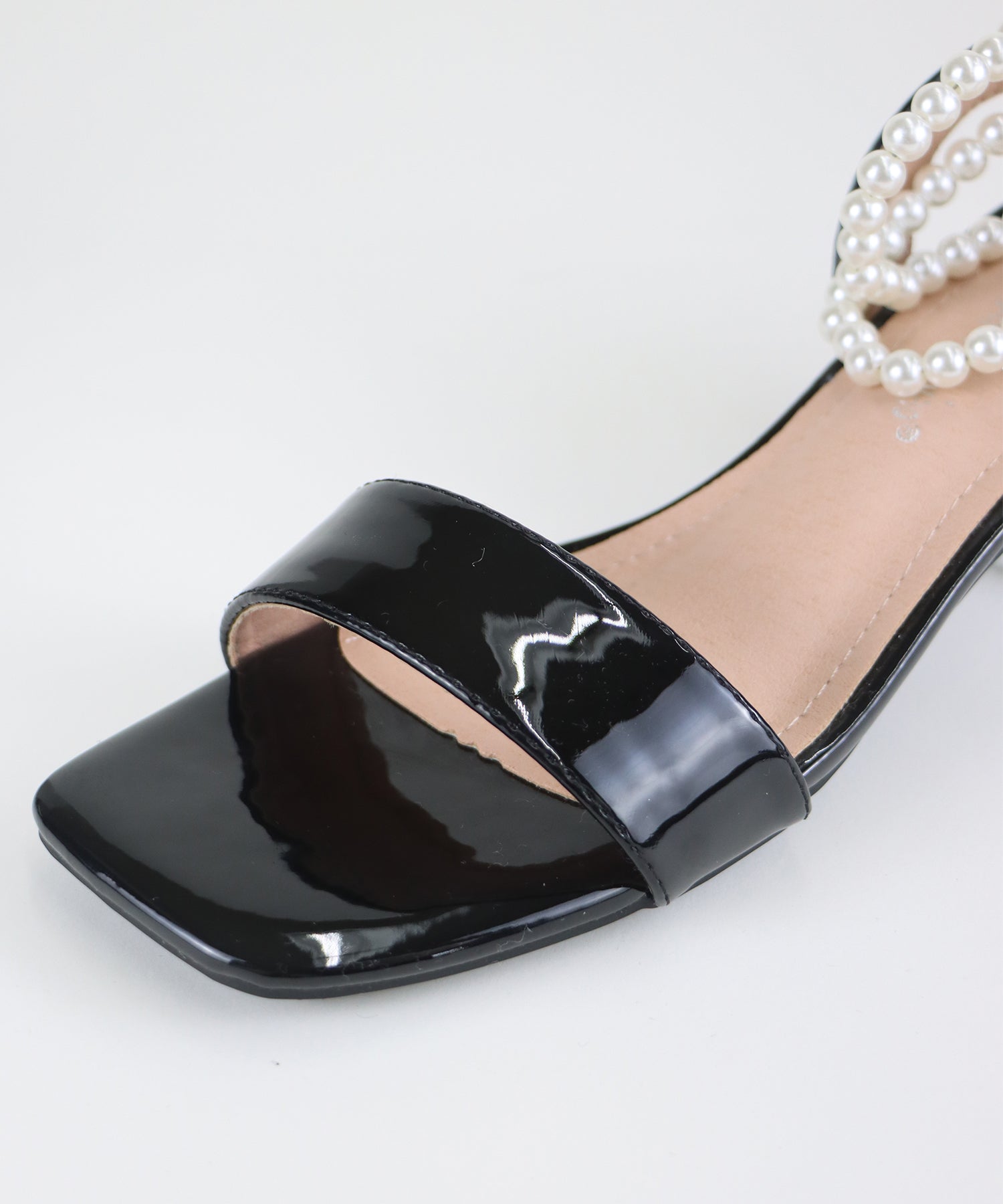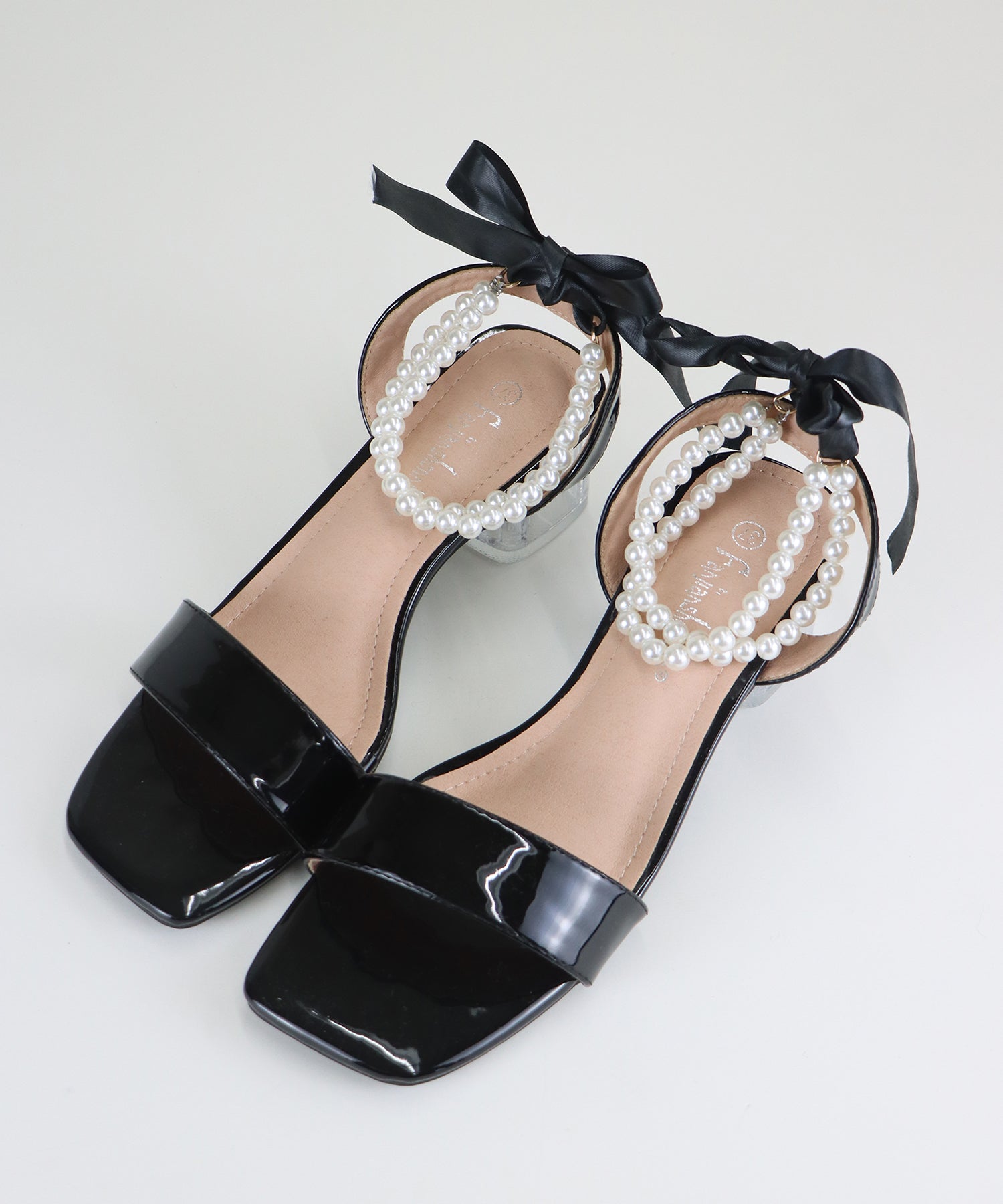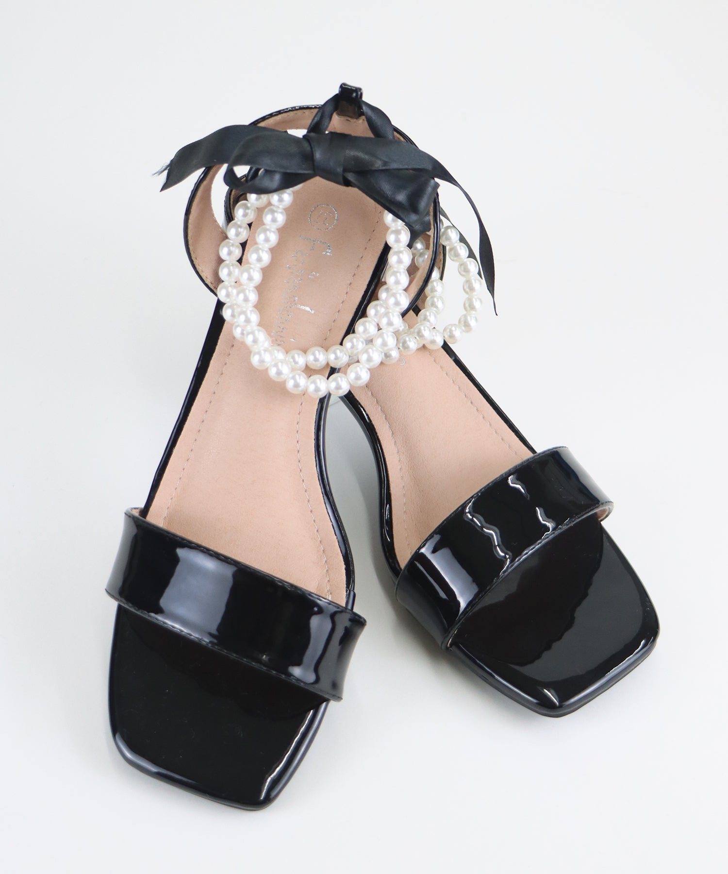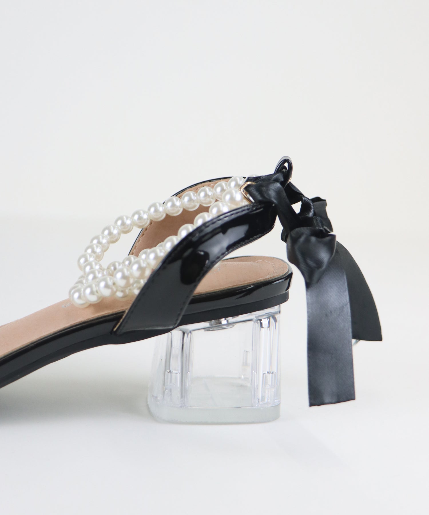 アンクルストラップの2連パールとリボンが後ろ姿も華やかに魅せてくれます。